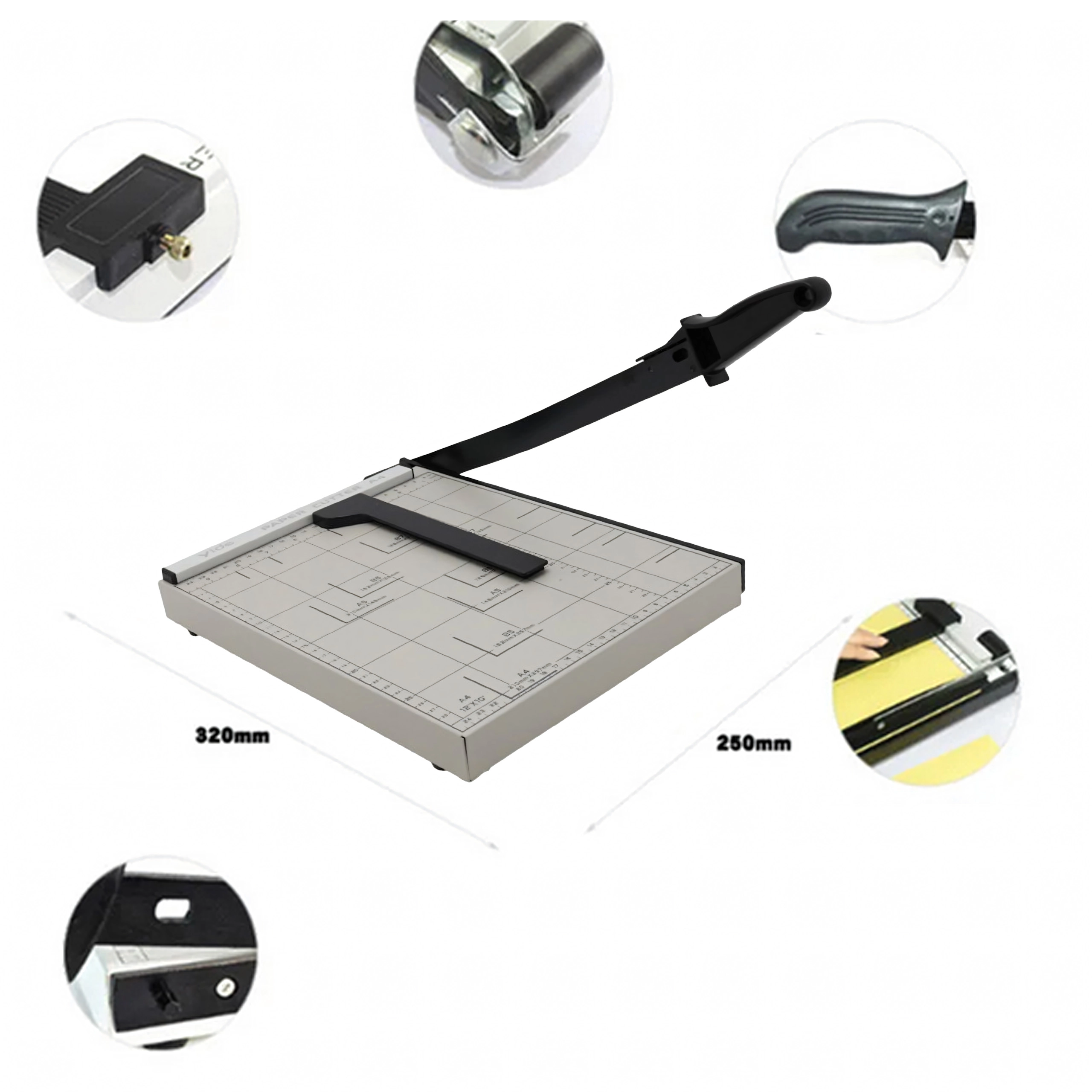 Antislipvoeten en een dwarssteun houden het papier stevig op zijn plaats, terwijl het roestvrijstalen mes een lange levensduur en een schone snede zonder rafels biedt. Een uitstekende oplossing wanneer u efficiënt meerdere vellen tegelijk wilt snijden met nadruk op precisie.