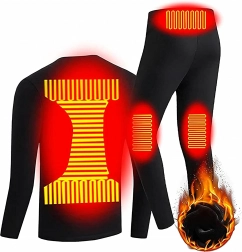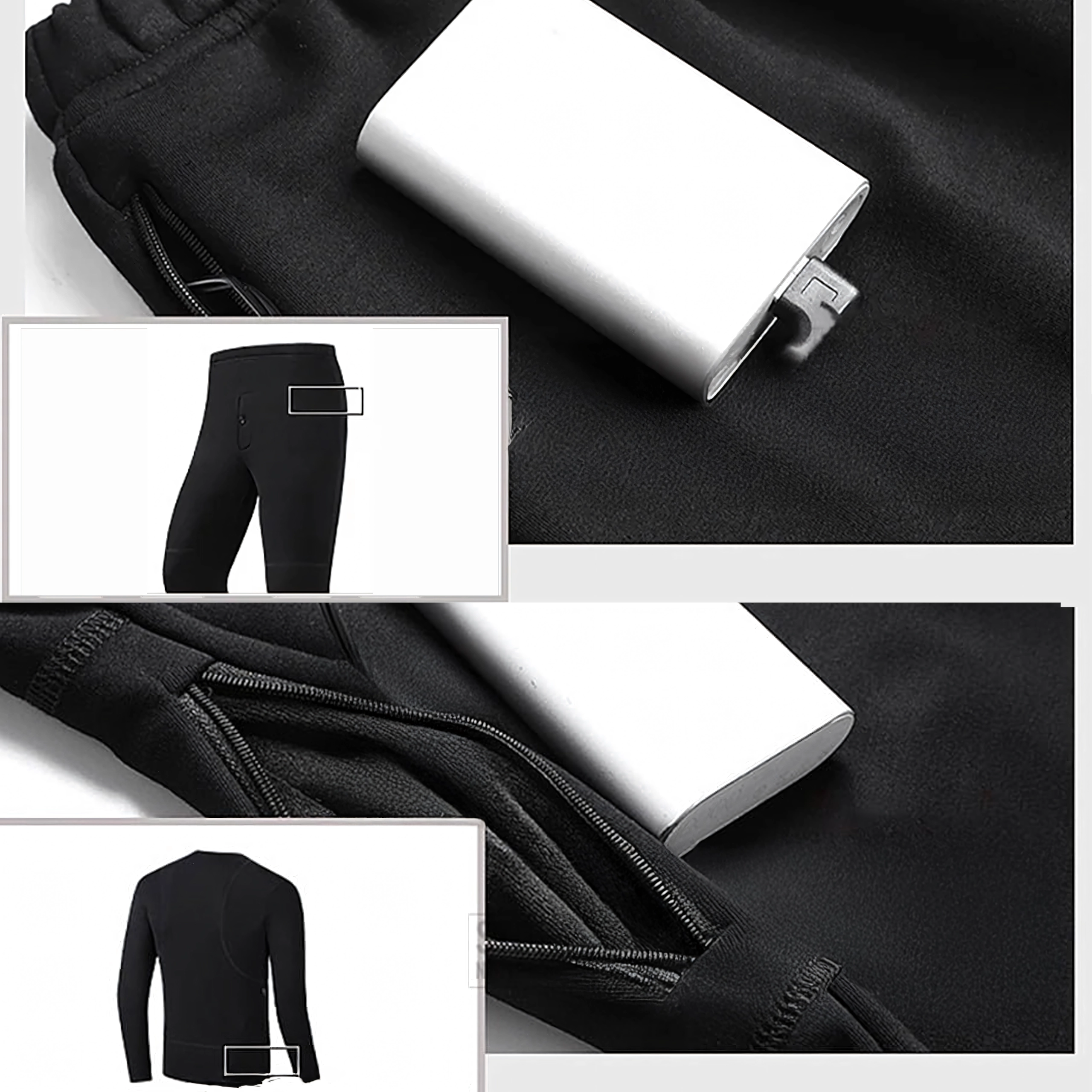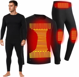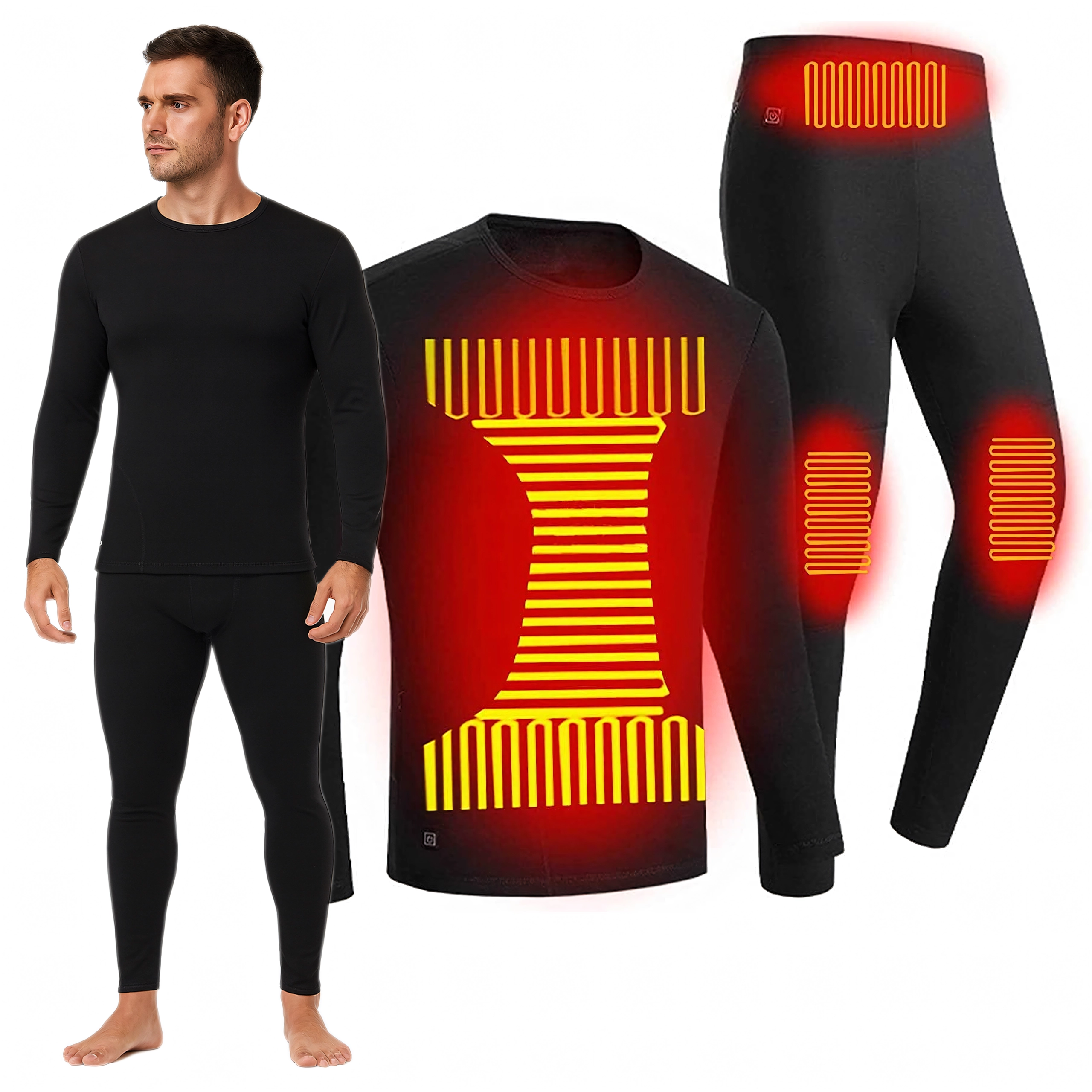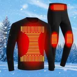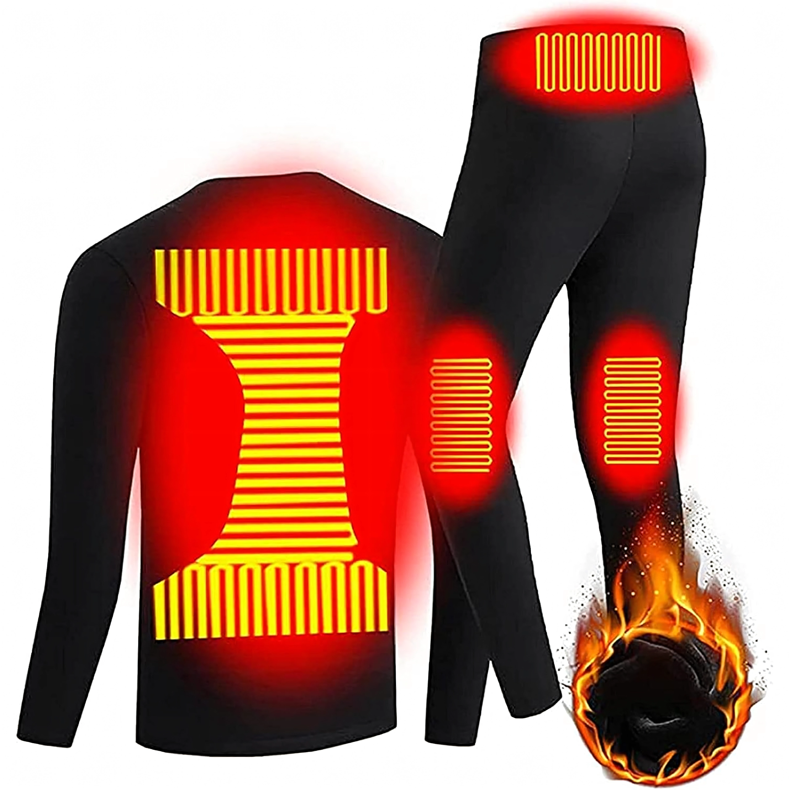 Geniet van een warme winter met dit verwarmde thermisch ondergoed in maat 2XL. De set bevat een aansluitend shirt met lange mouwen en leggings met 4 verwarmingszones (rug, onderrug, knieën), 3 warmtestanden (45 °C, 55 °C, 65 °C) en voeding via USB. Biedt tot 7 uur actieve warmte (met een powerbank van 10.000 mAh), is elastisch, comfortabel en wasbaar – ideaal voor skiën, wandelen en werken in de kou.