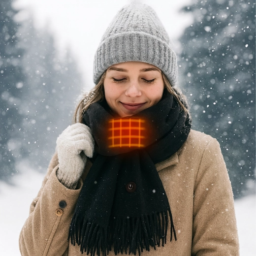 De verwarmde sjaal combineert moderne technologie met comfort. Het geïntegreerde verwarmingselement bij de nek levert gerichte warmte die helpt tegen kou en stijfheid. Dankzij USB-voeding en de meegeleverde powerbank van 5000 mAh geniet je overal van warmte – zonder stopcontact en zonder beperkingen.