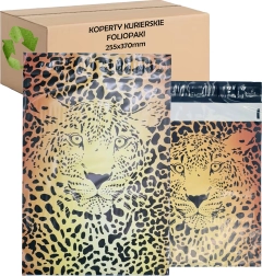 Praktische en duurzame courier-foliezakken met afmeting 255 × 370 mm, voorzien van een opvallend cheetahdesign en een zelfklevende sluitstrip voor snel afsluiten. Ideaal voor webshops en veilig verpakken van zendingen – licht, waterbestendig en scheurvast materiaal dat de inhoud tijdens transport beschermt. Verpakking bevat 50 stuks.