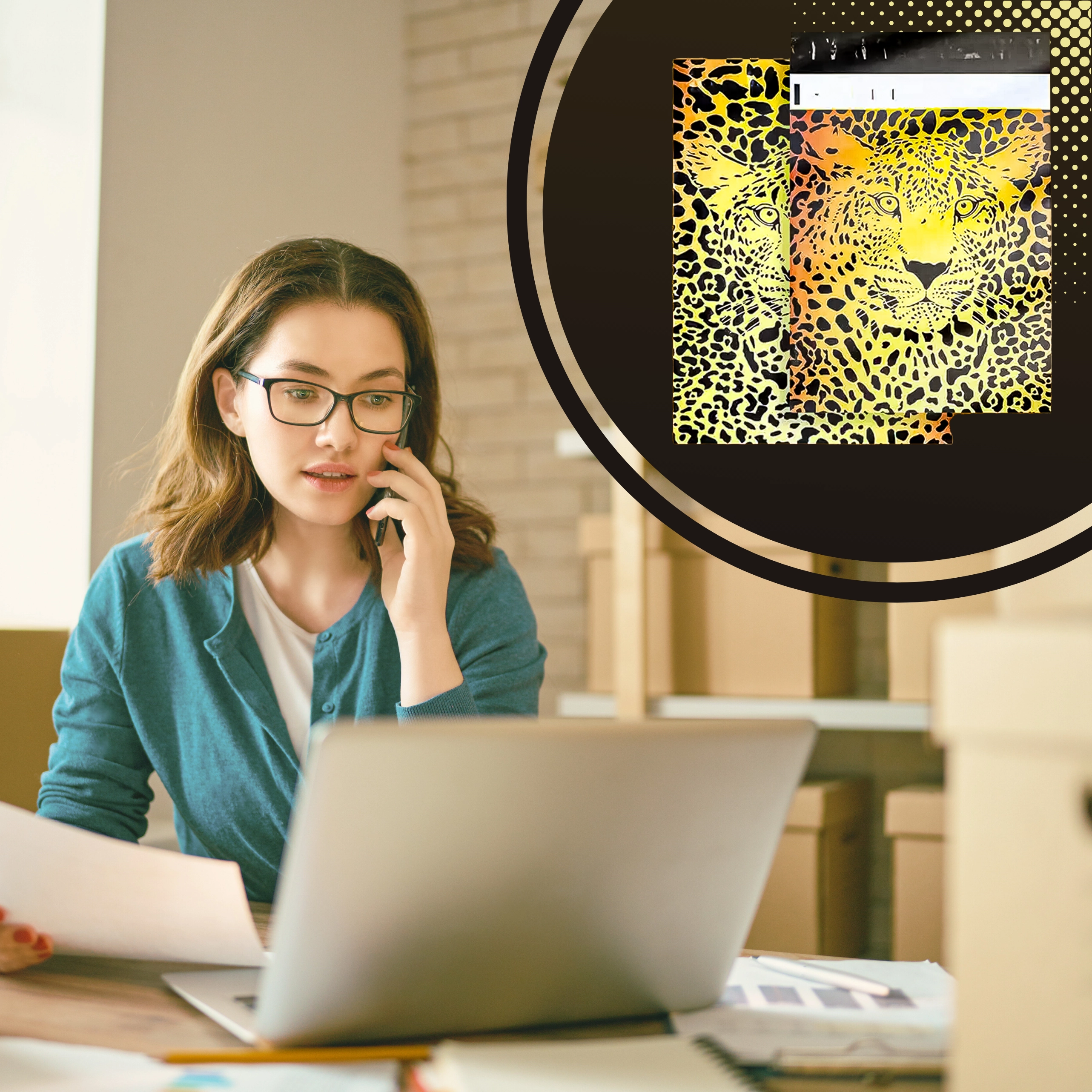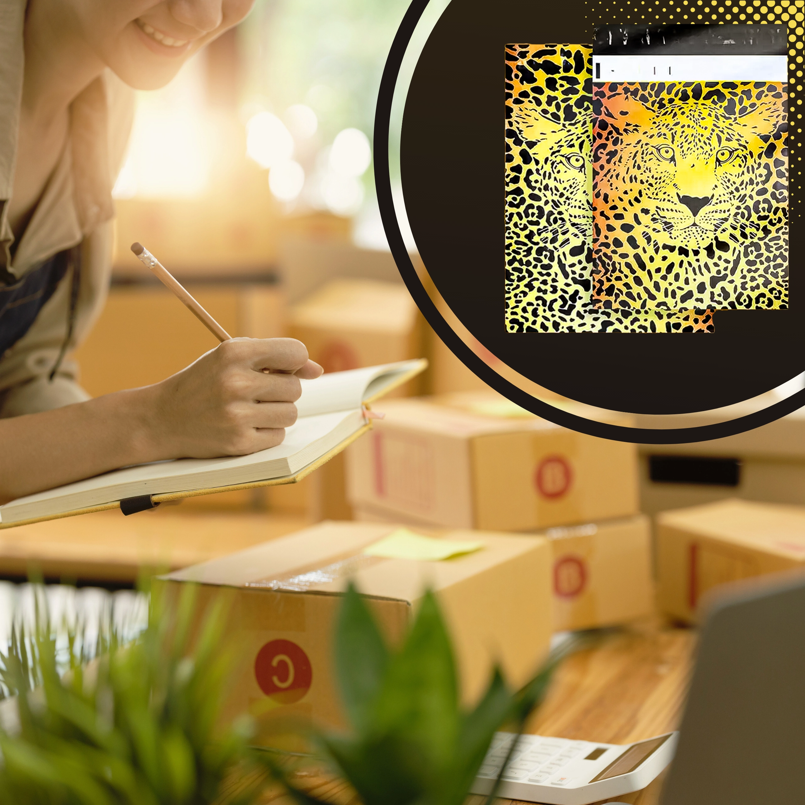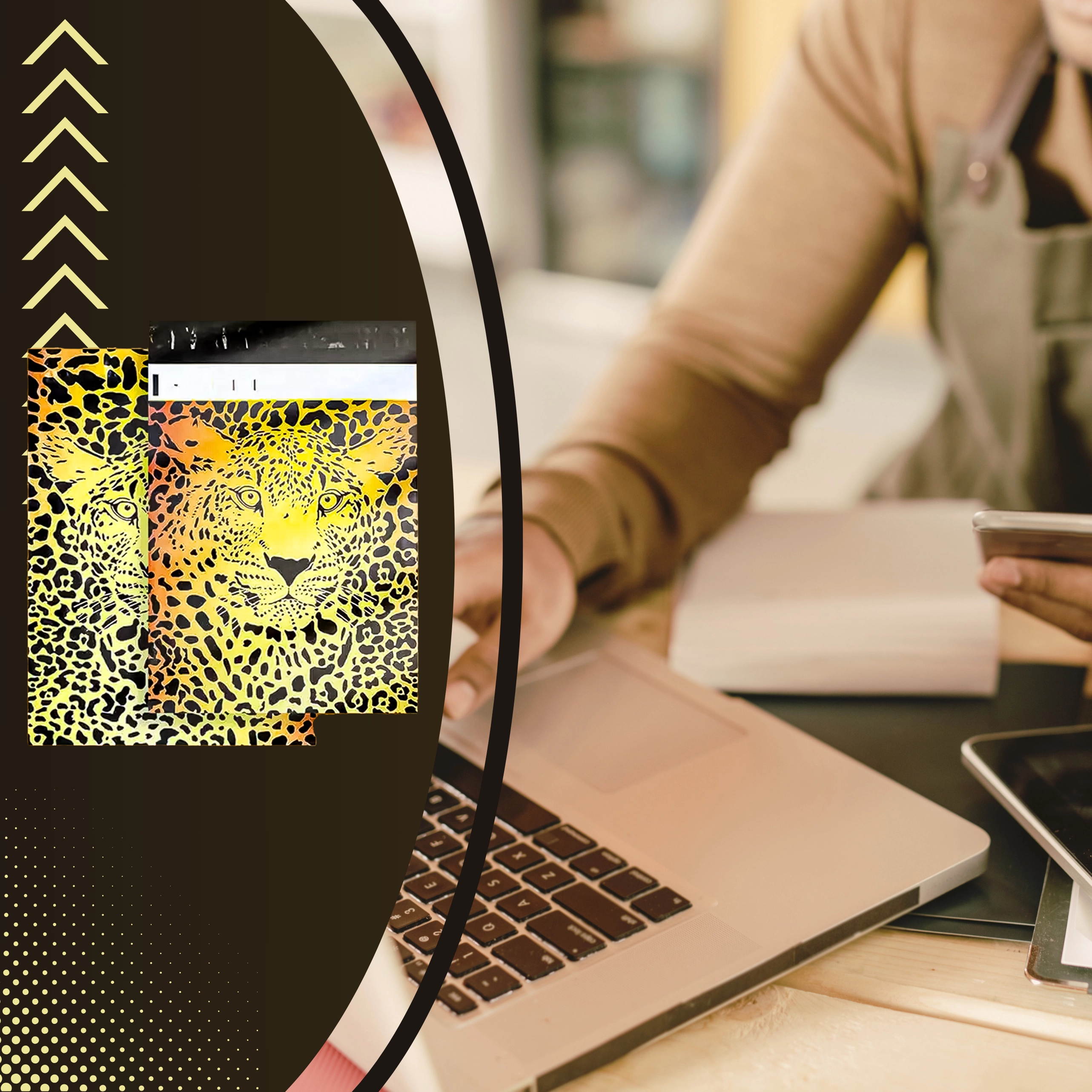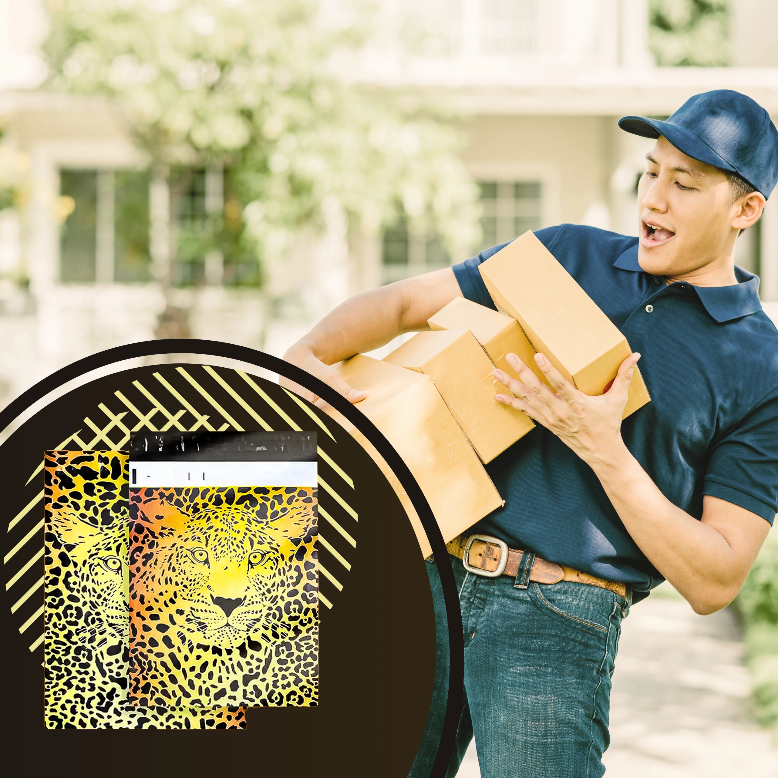 De opvallende cheetahprint springt in het oog en onderscheidt je zendingen direct.