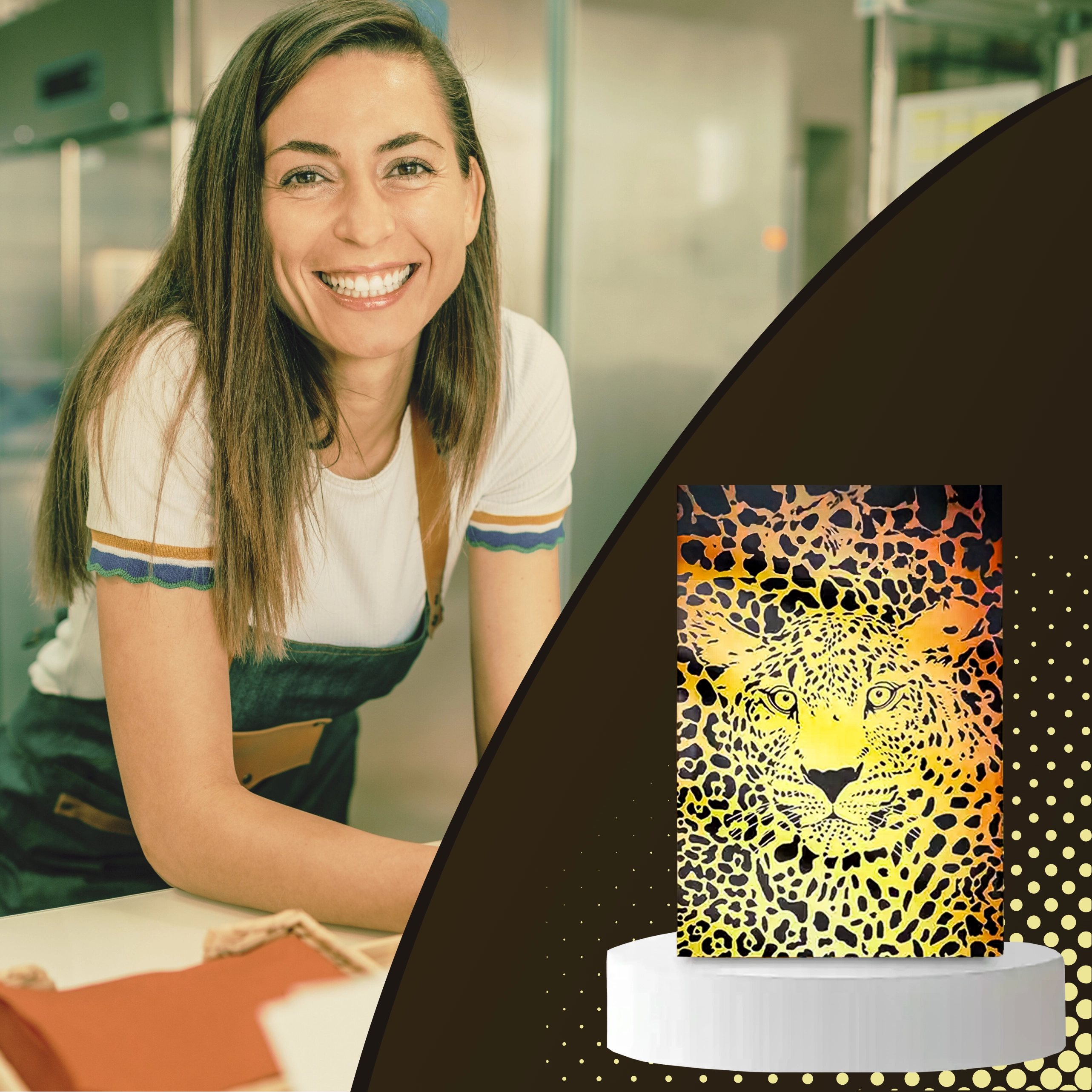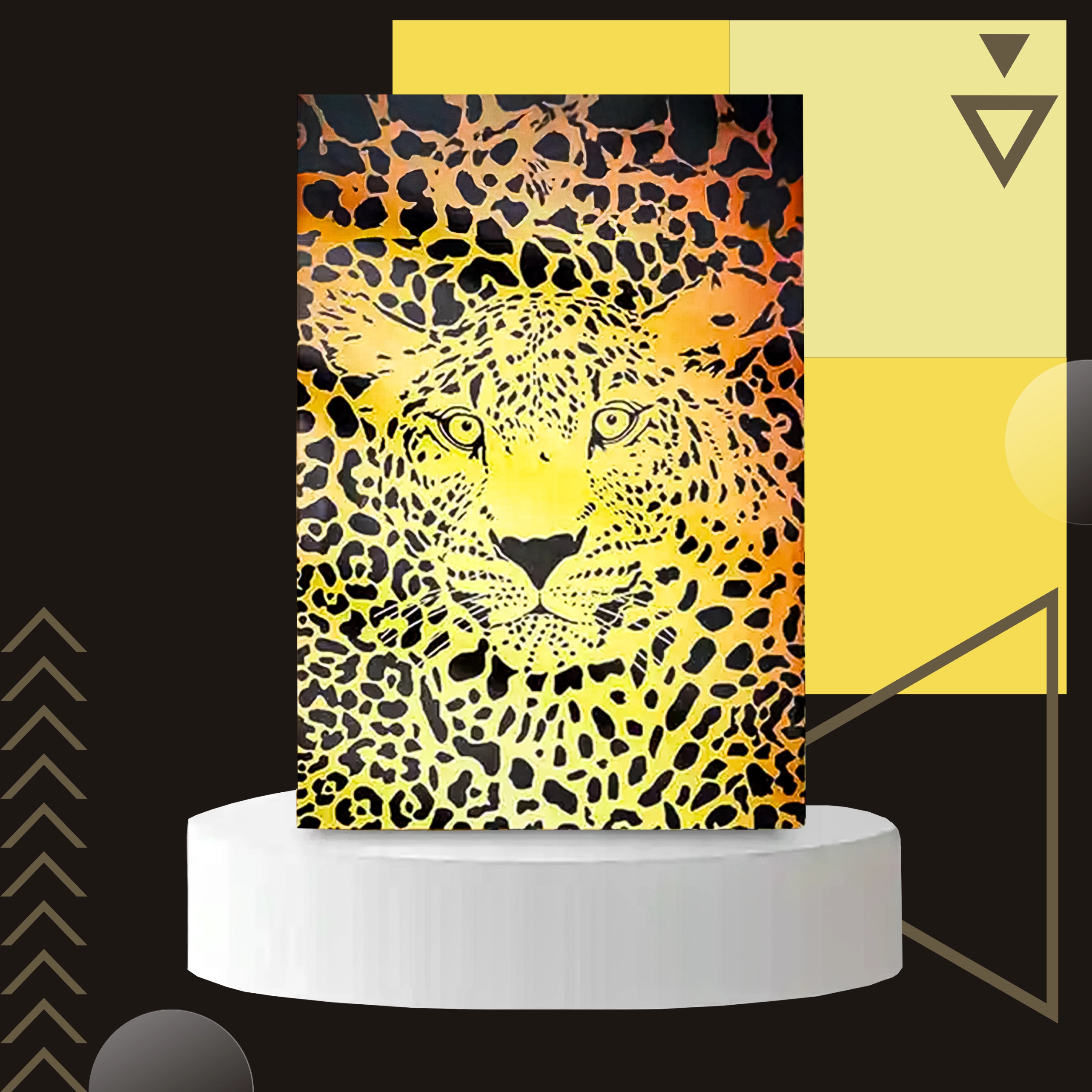 - Leopard- (cheetah-) print, zwart–geel–oranje tinten
