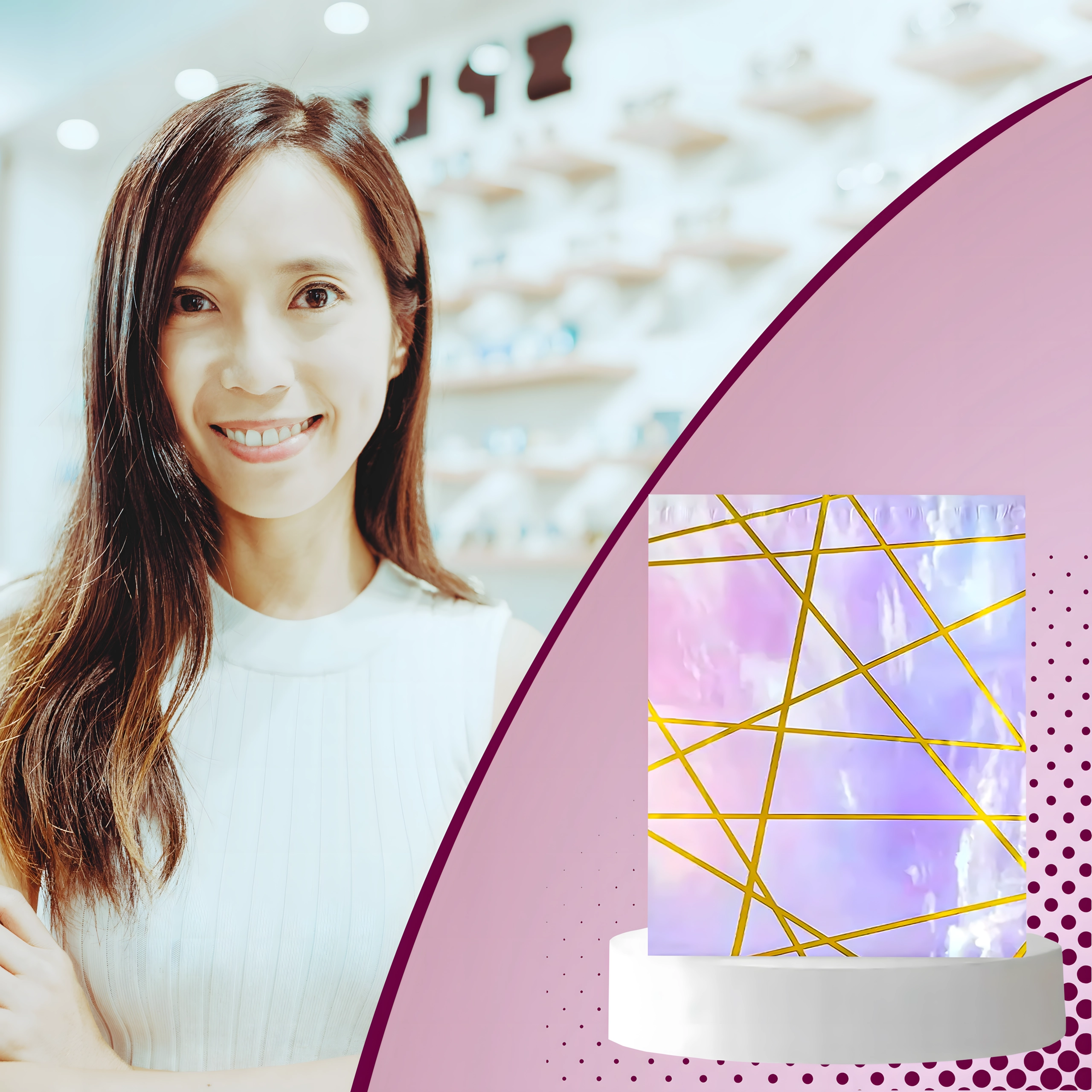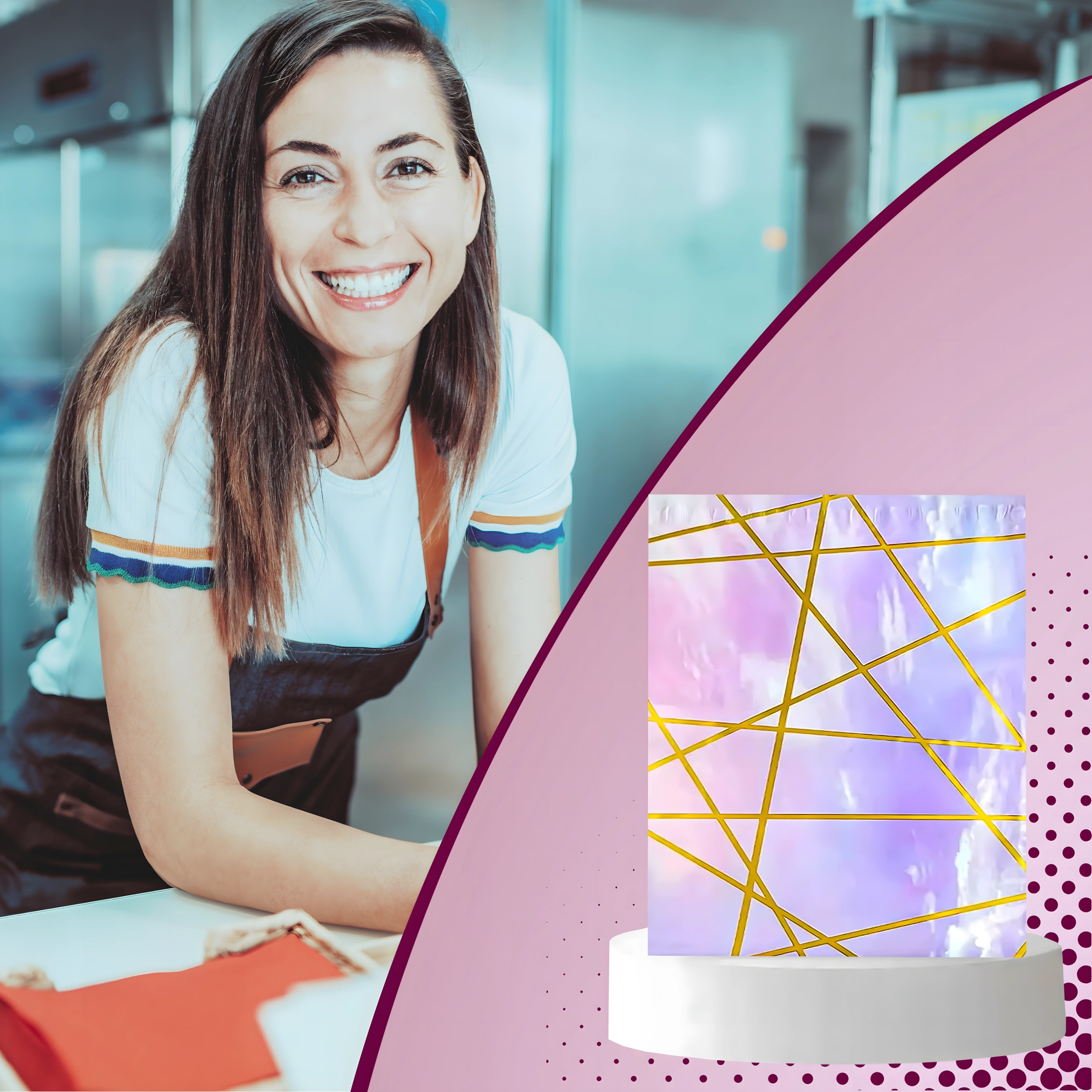 - Representatieve uitstraling – paars‑gouden motief voor een professionele image.