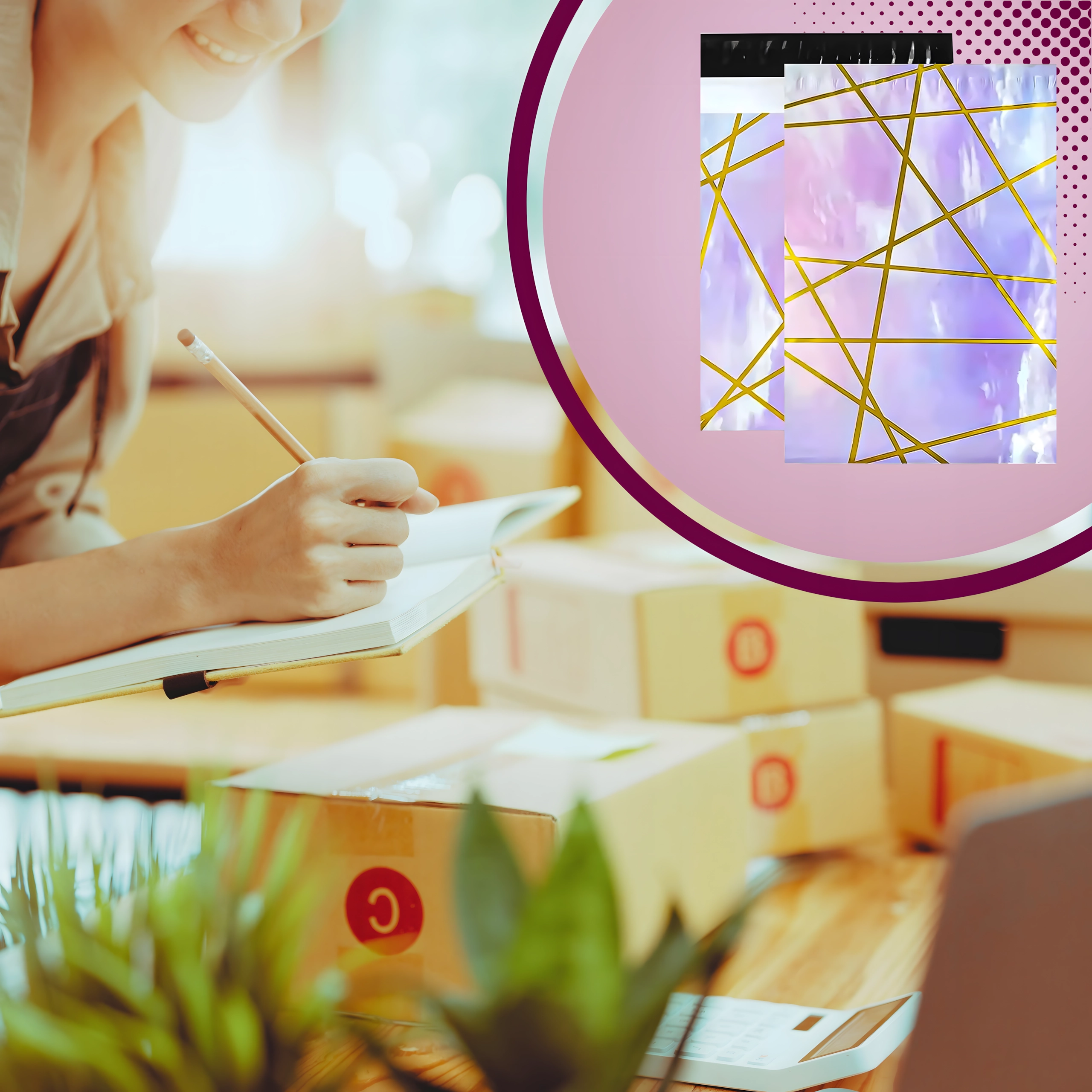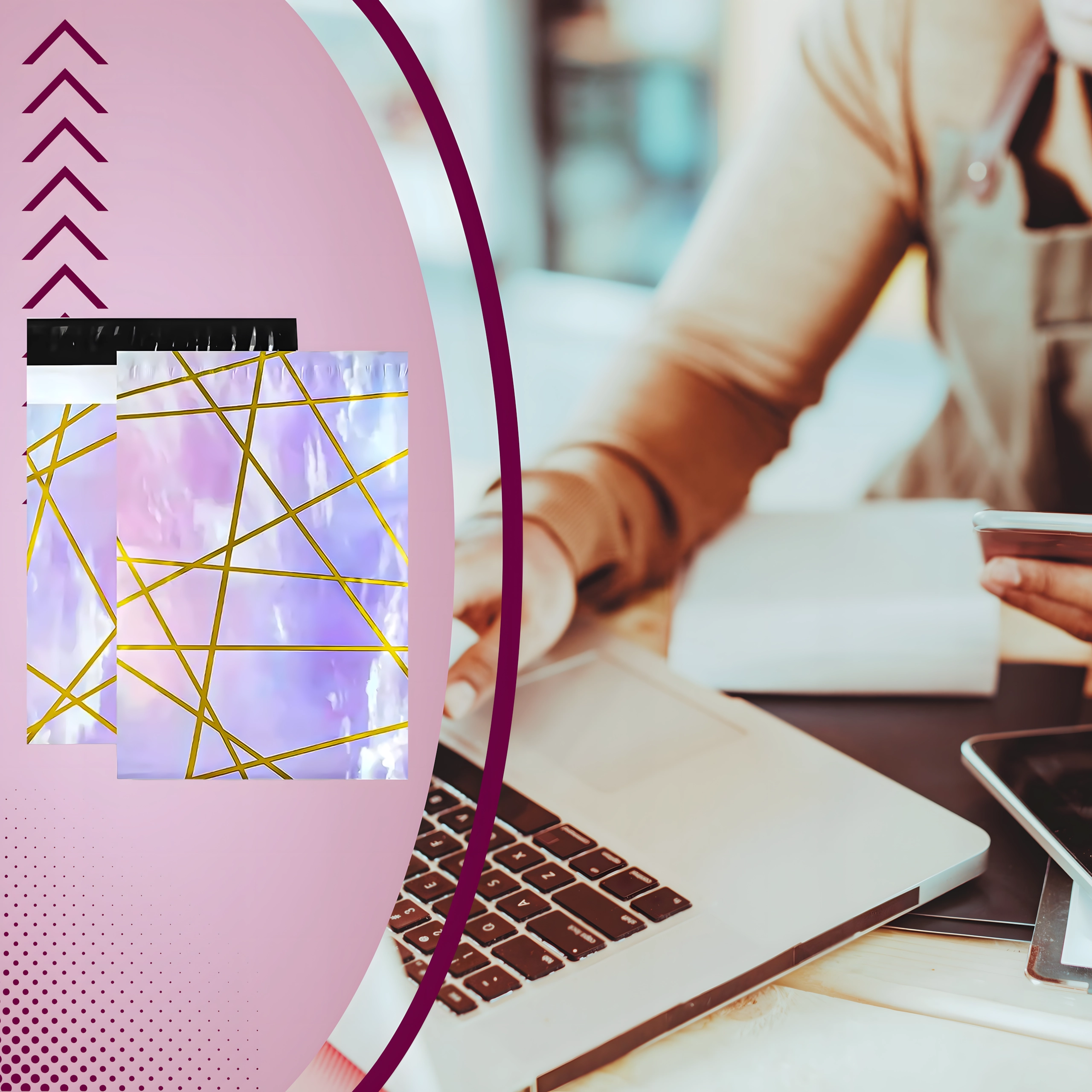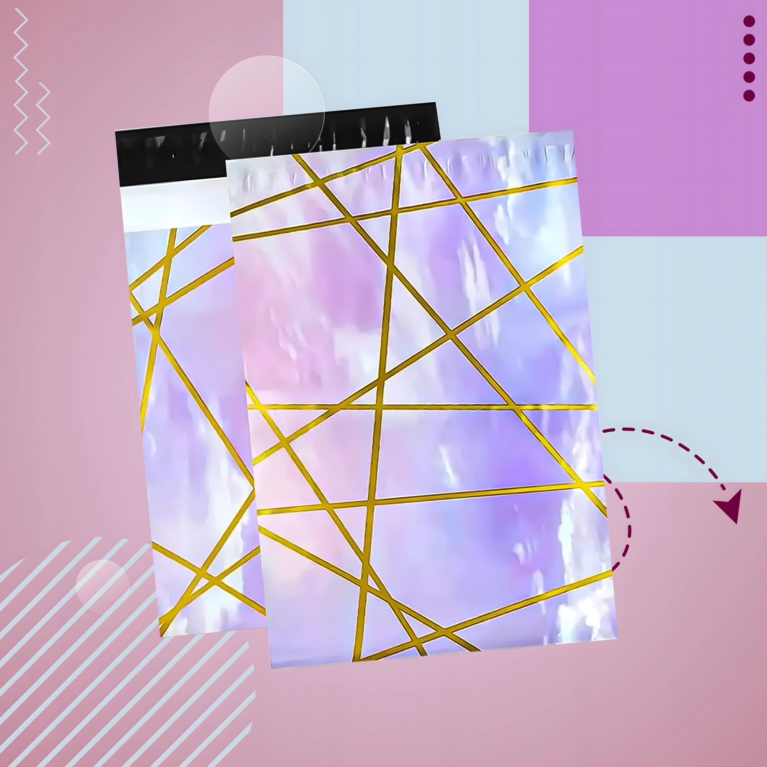 Zoekt u betrouwbare enveloppen voor dagelijkse verzending? Deze stevige plastic verzendenveloppen 255 × 370 mm in een elegant paars‑gouden design zorgen voor een veilige bezorging van uw producten en een professionele presentatie van de zending. De zelfklevende strip versnelt het inpakken en minimaliseert de behoefte aan extra hulpmiddelen.