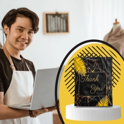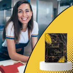 - Elegant uiterlijk – zwarte uitvoering met het opschrift Thank You