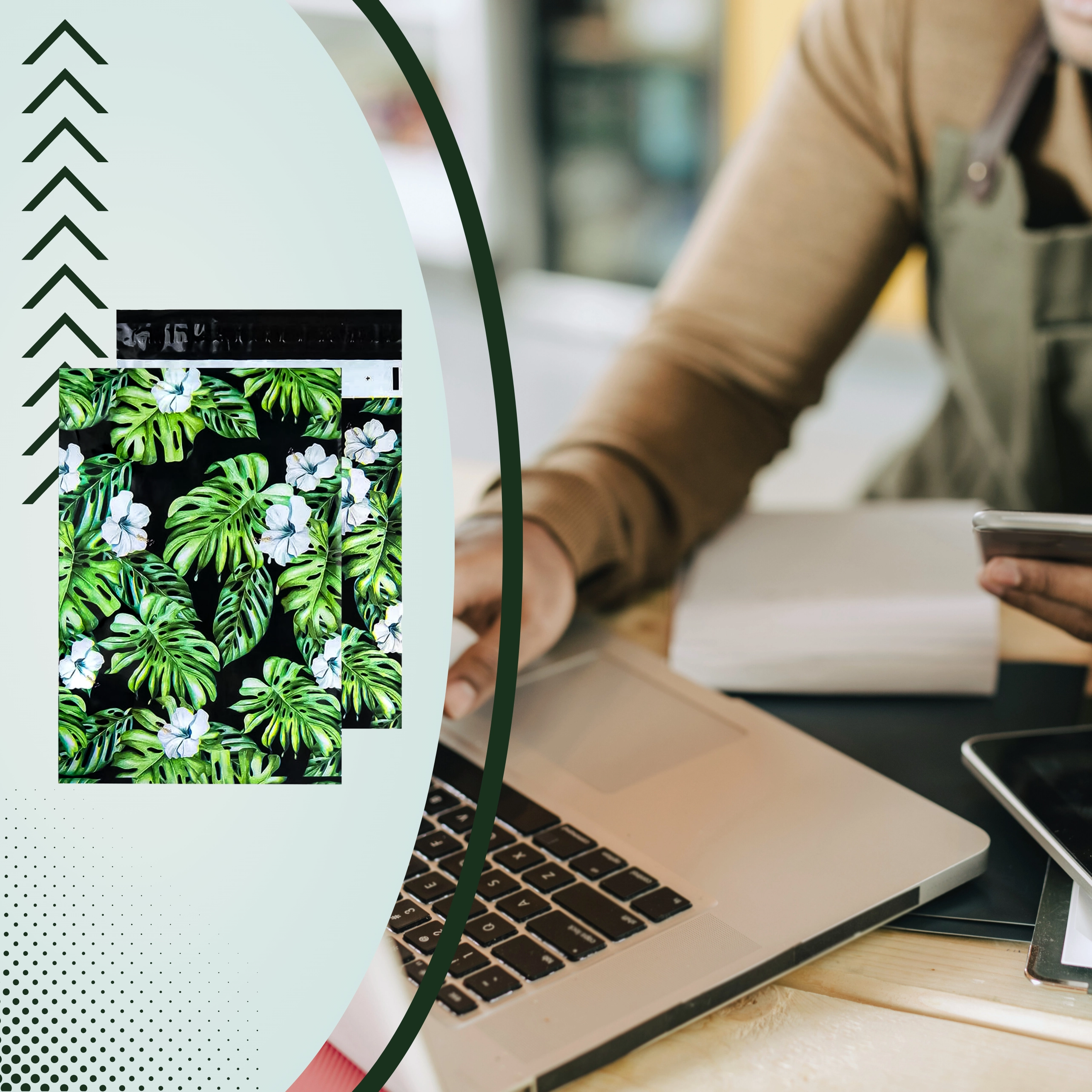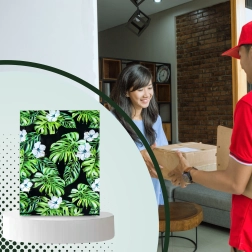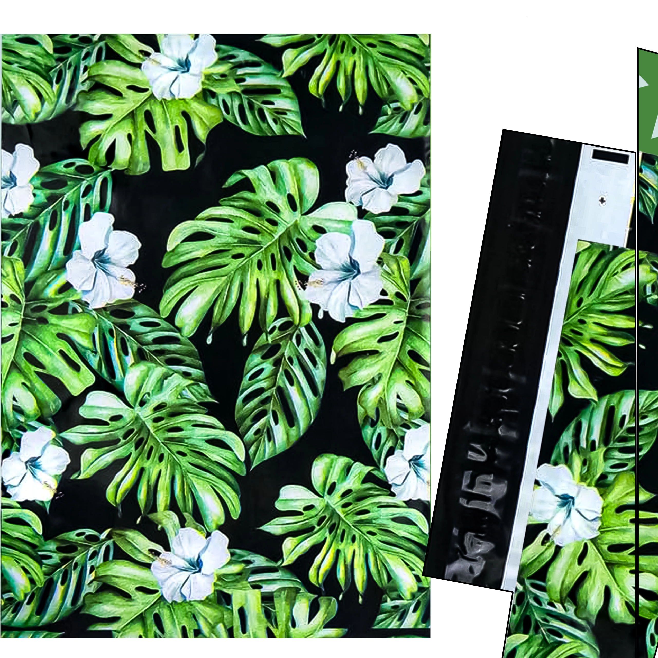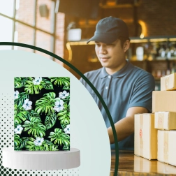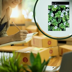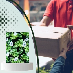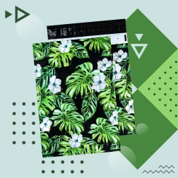 Print met blad- en bloemmotief op een donkere achtergrond geeft je zendingen een opvallende uitstraling en versterkt je merk bij bezorging.