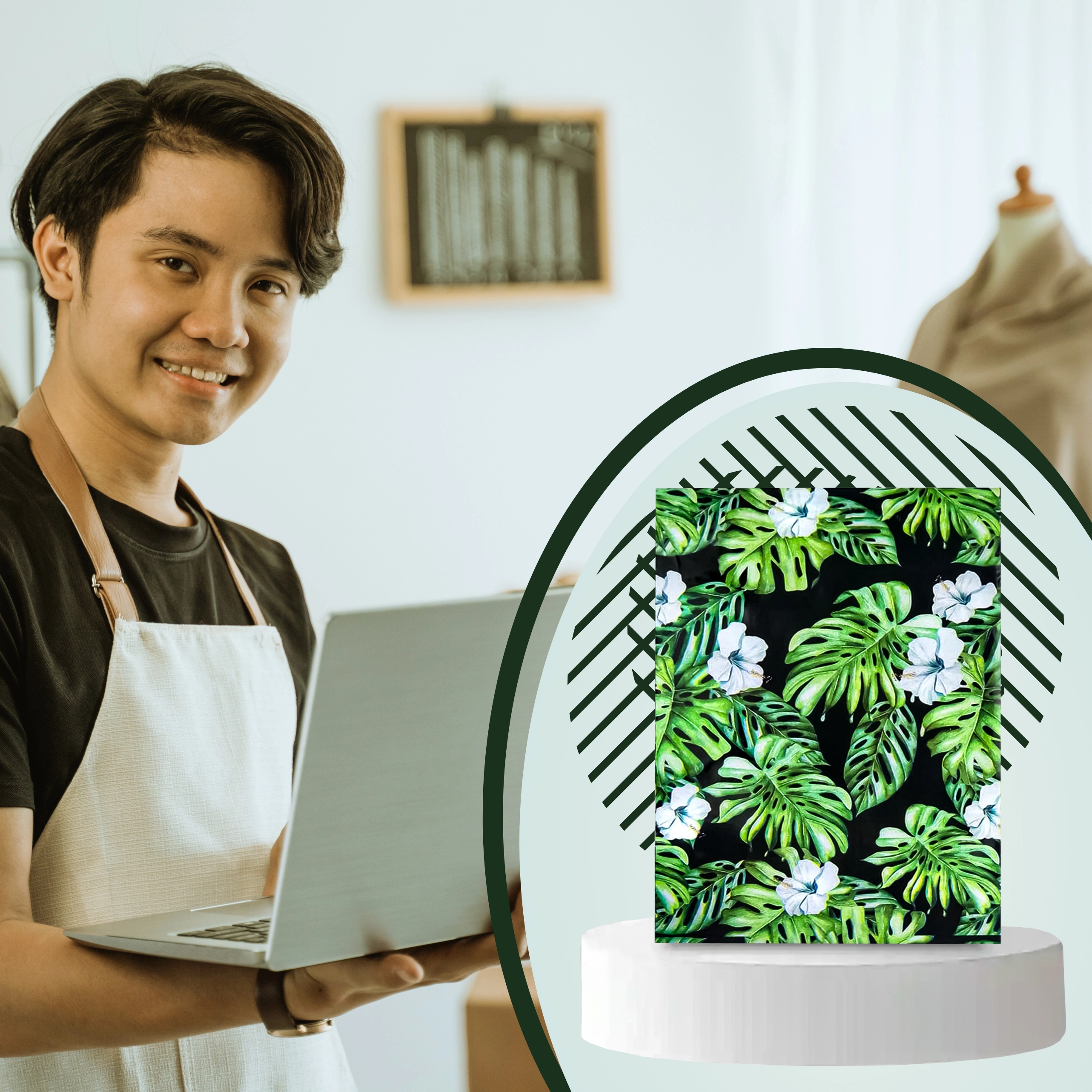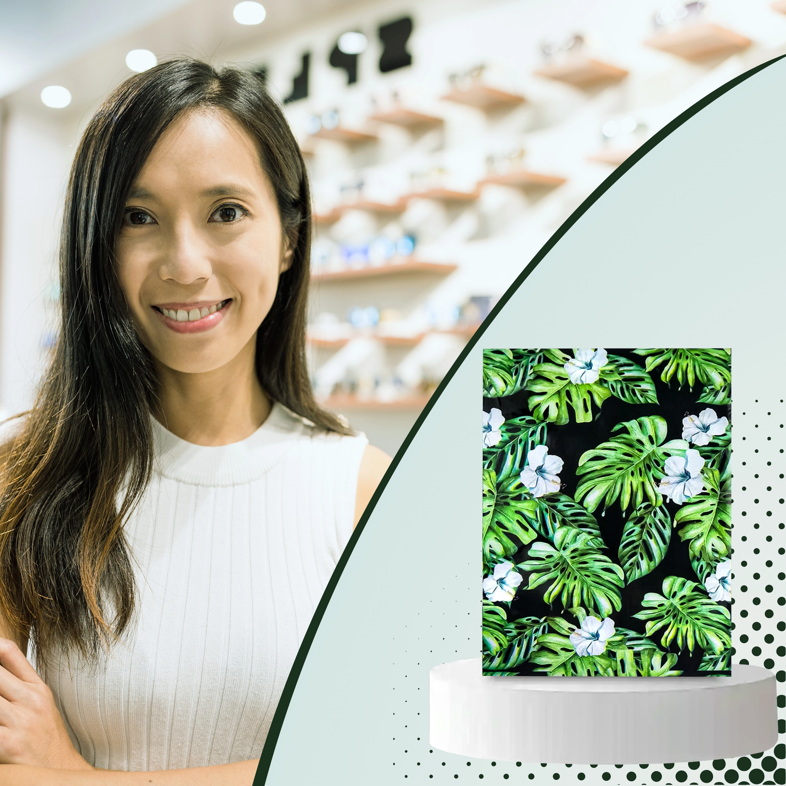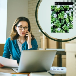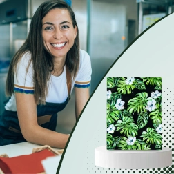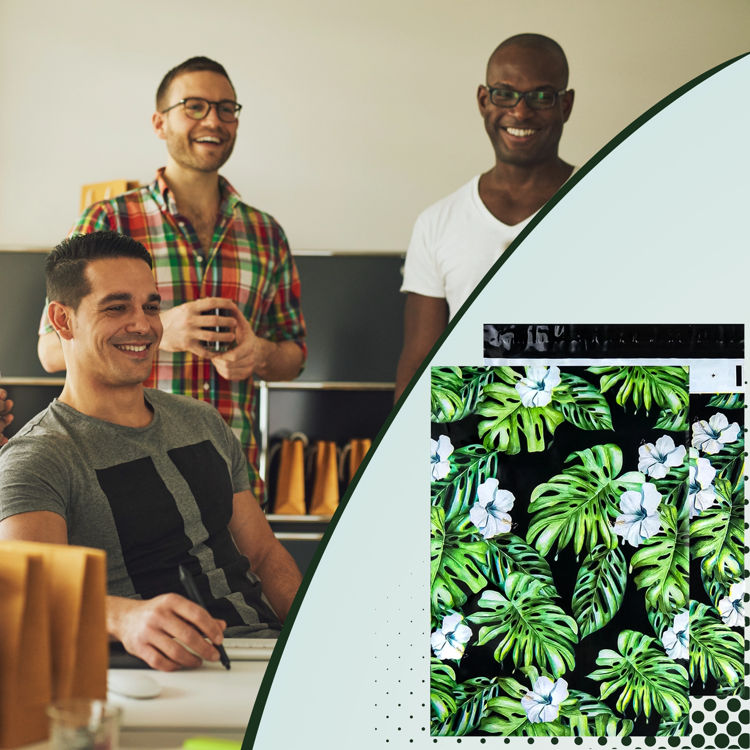 Print met blad- en bloemmotief op een donkere achtergrond geeft je zendingen een opvallende uitstraling en versterkt je merk bij bezorging.