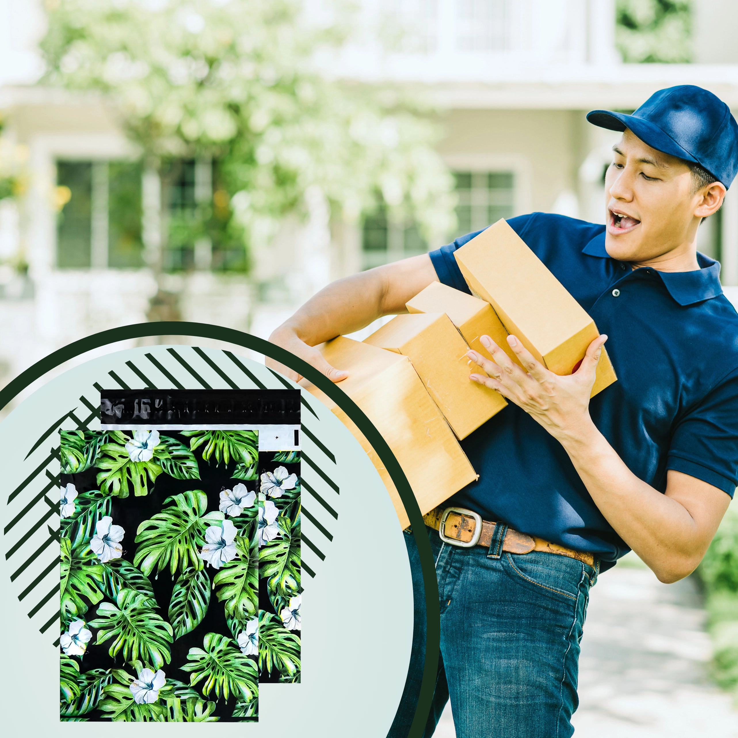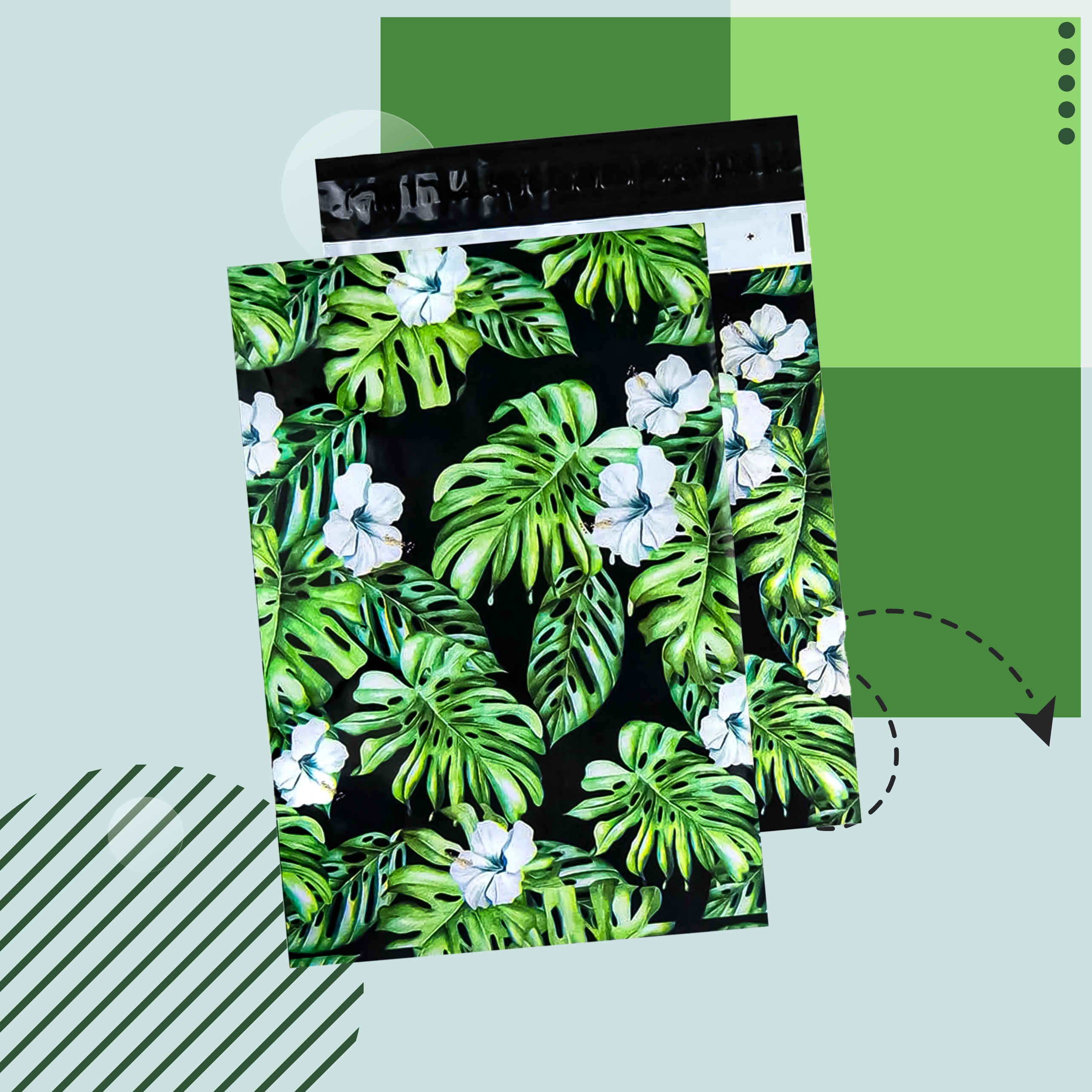 Ideaal voor webshops en particuliere verzenders: kleding, textiel, doosjes, cadeaus en andere lichtere producten. De aantrekkelijke tropische print versterkt de branding en zorgt voor een professionele indruk bij bezorging.