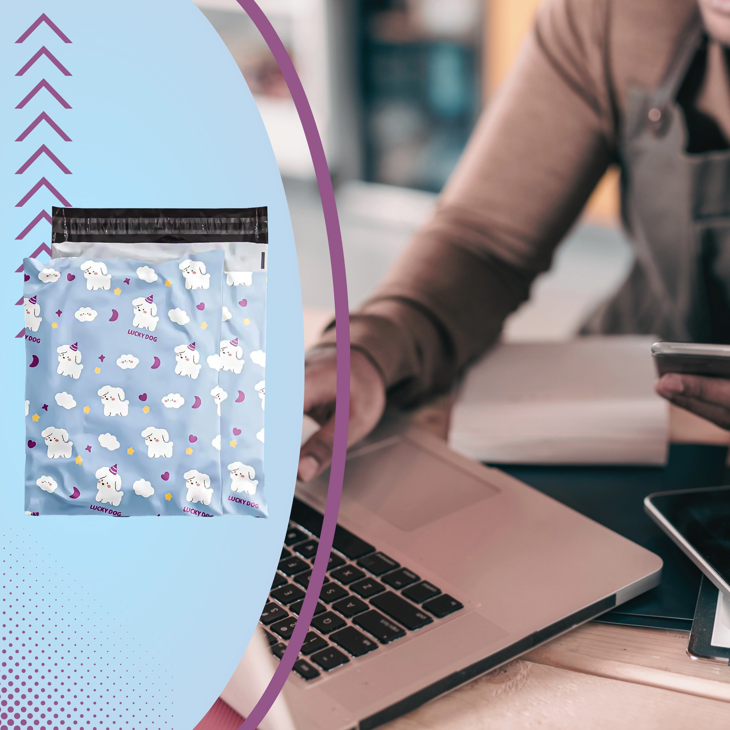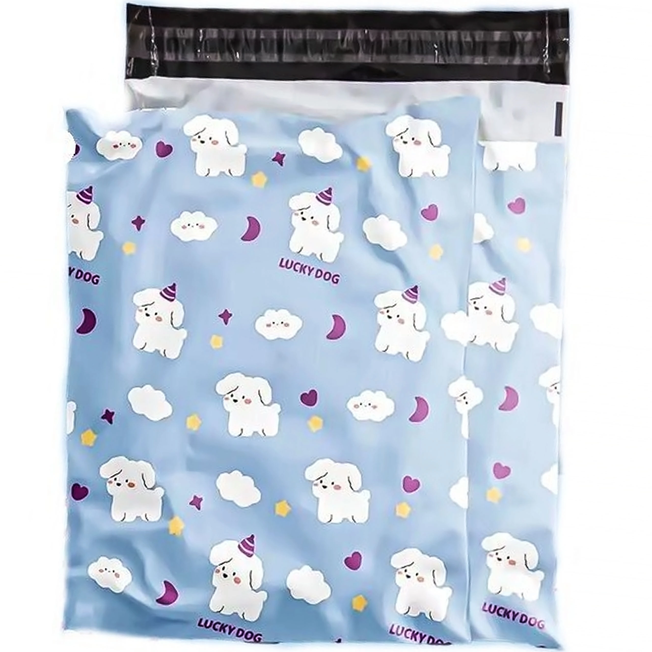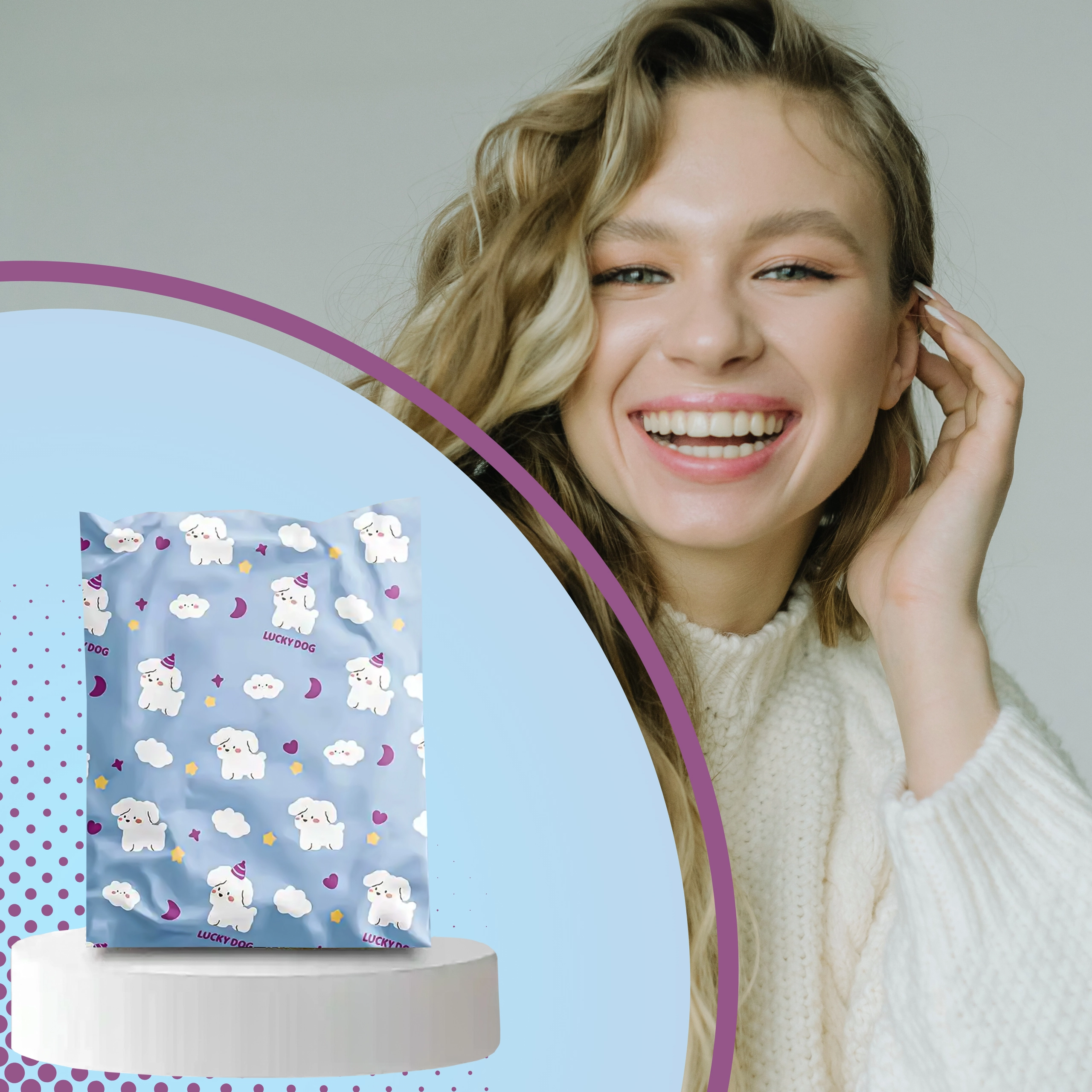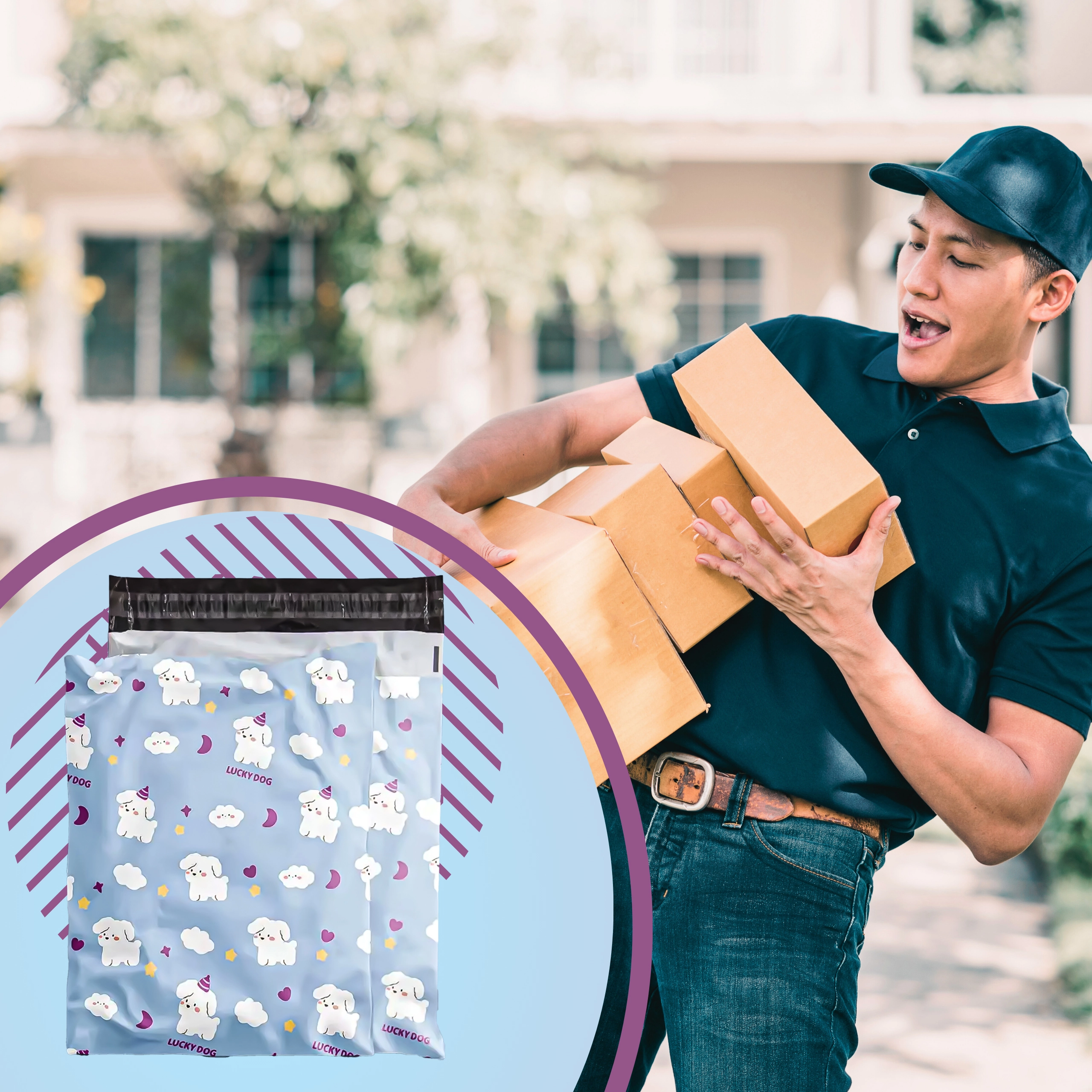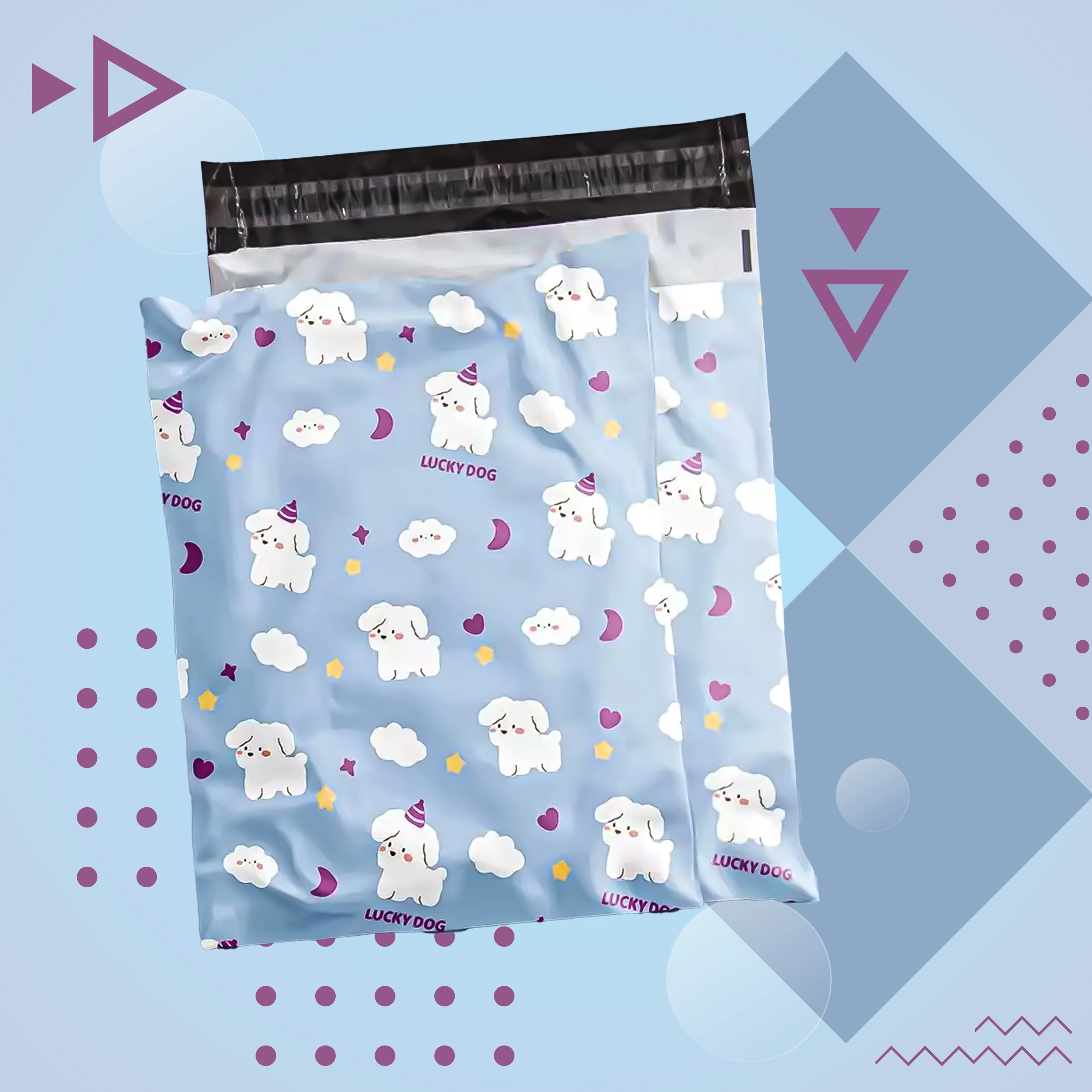 Het lichtblauwe design met schattige hondjes verbetert de bezorgbeleving en ondersteunt het unboxingmoment. Ideaal voor modieuze webshops en cadeauverpakkingen.