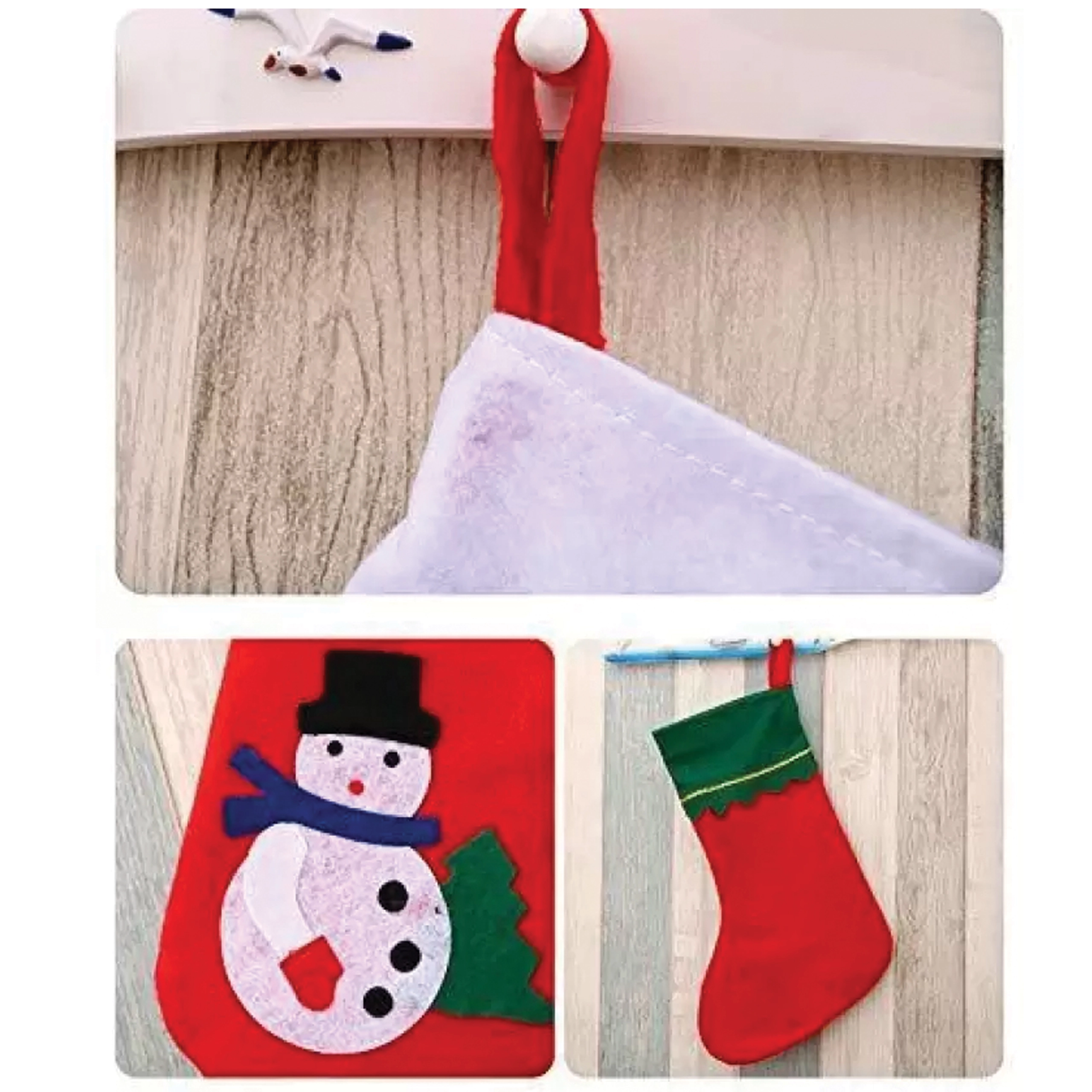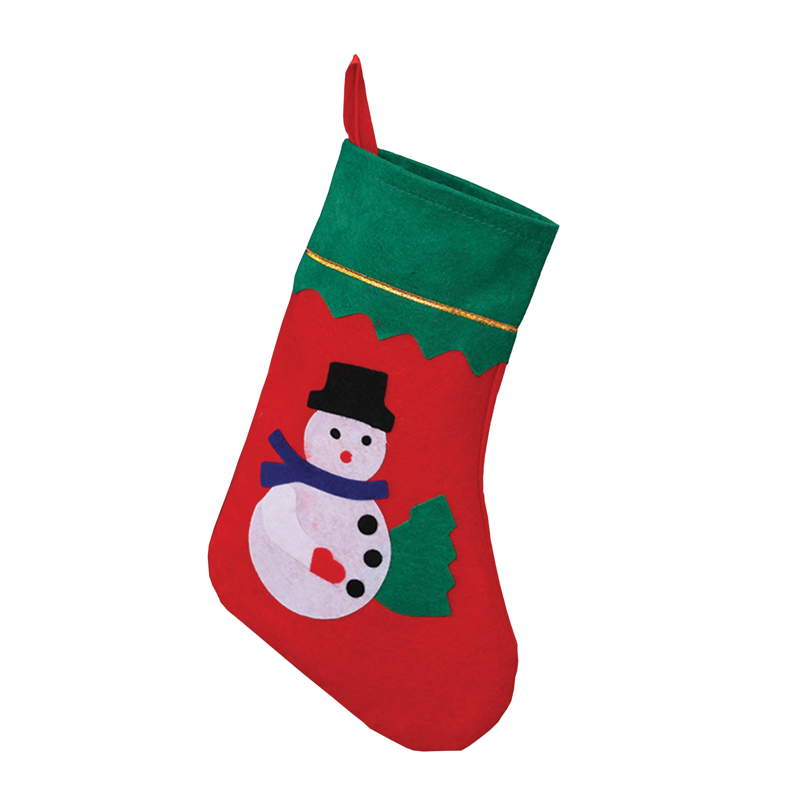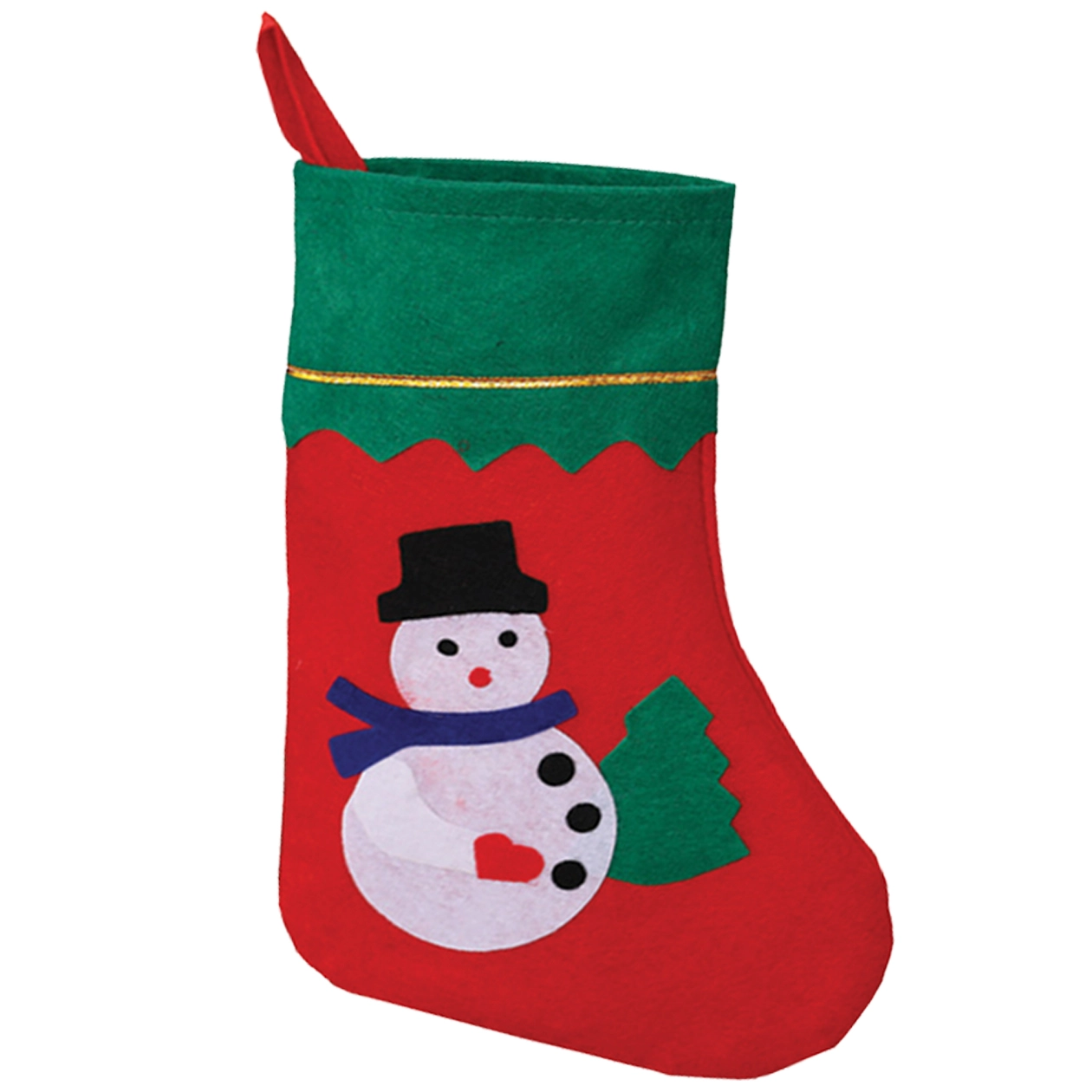 De vrolijke applicatie van een sneeuwpop met details geeft de sok karakter en benadrukt de kerstsfeer bij de open haard of de boom.