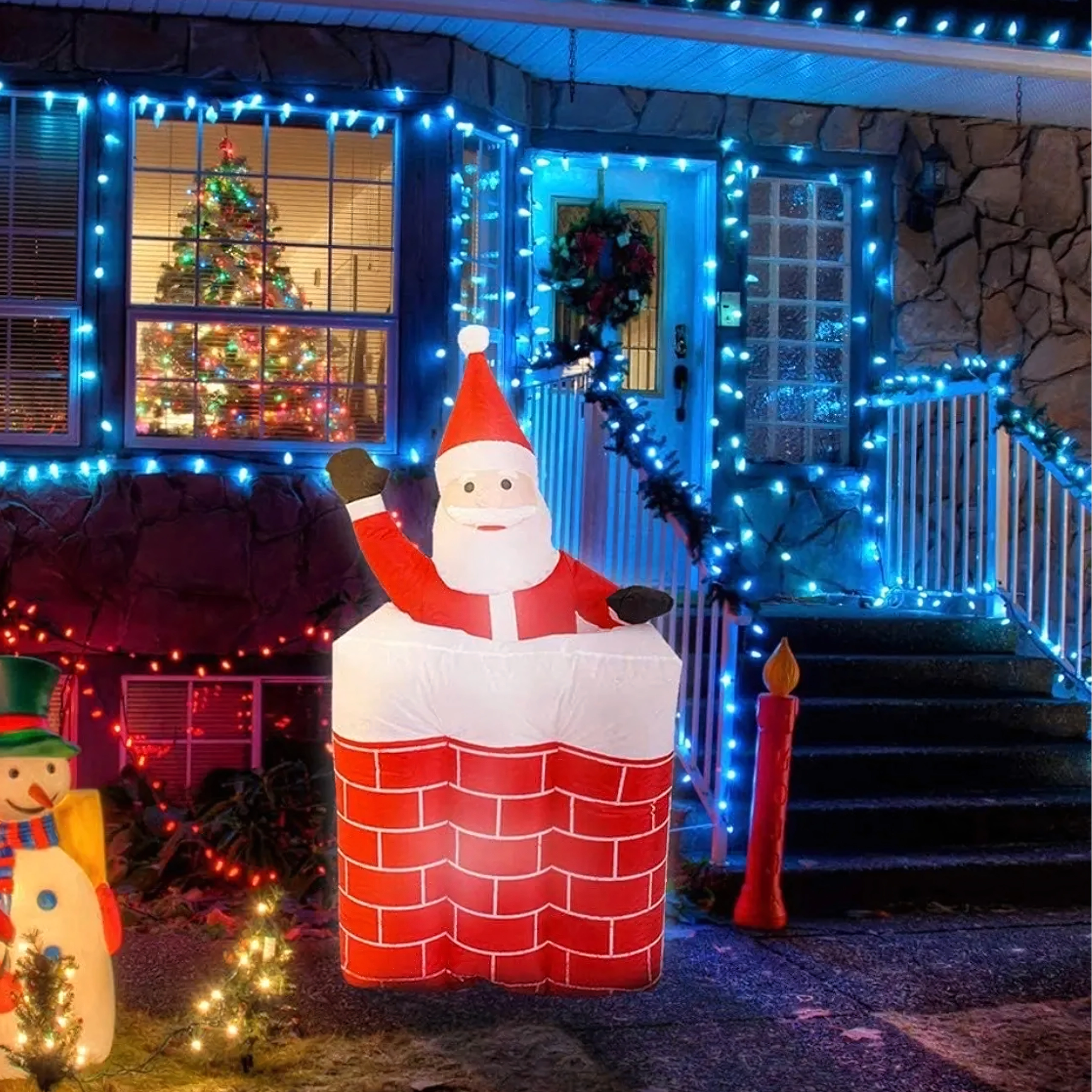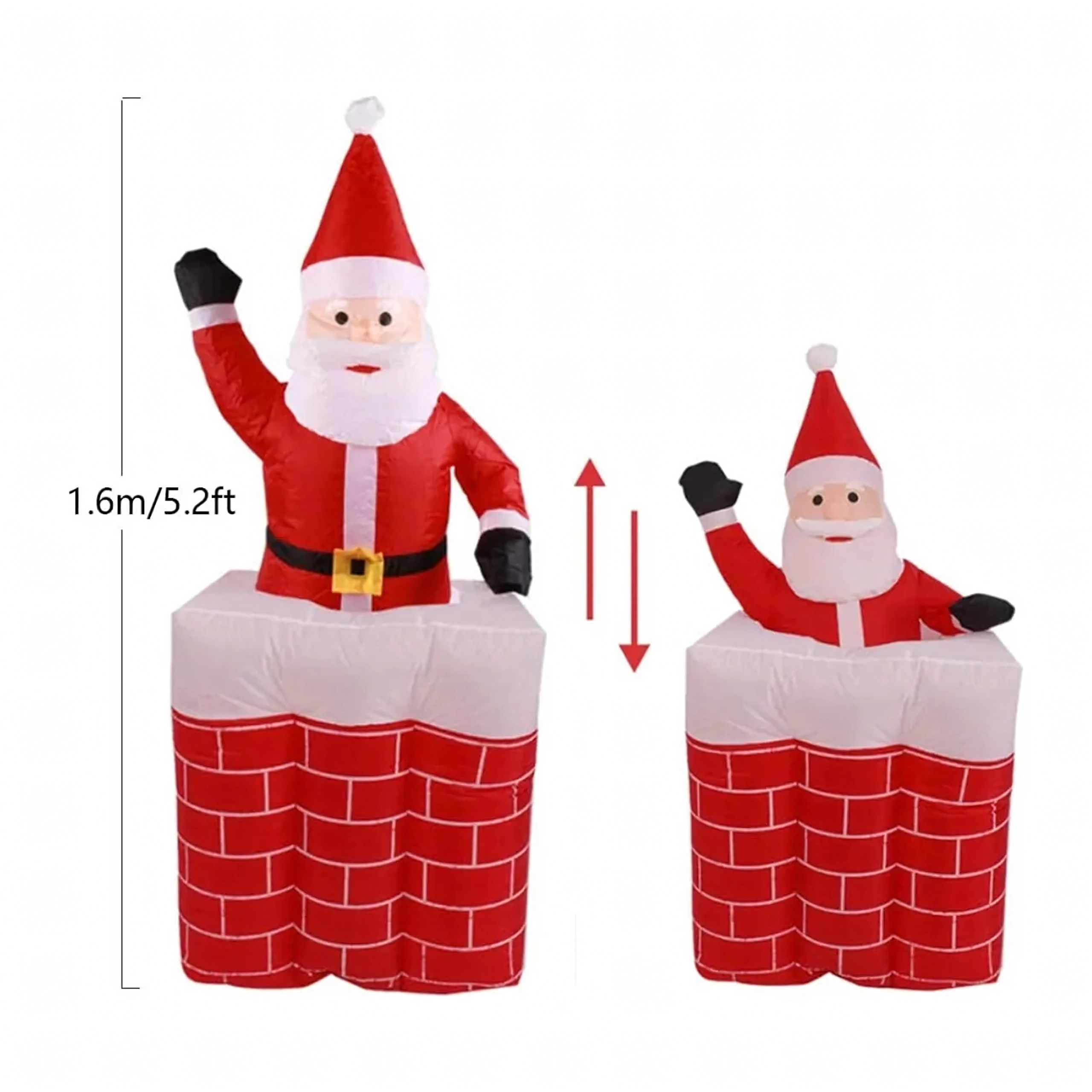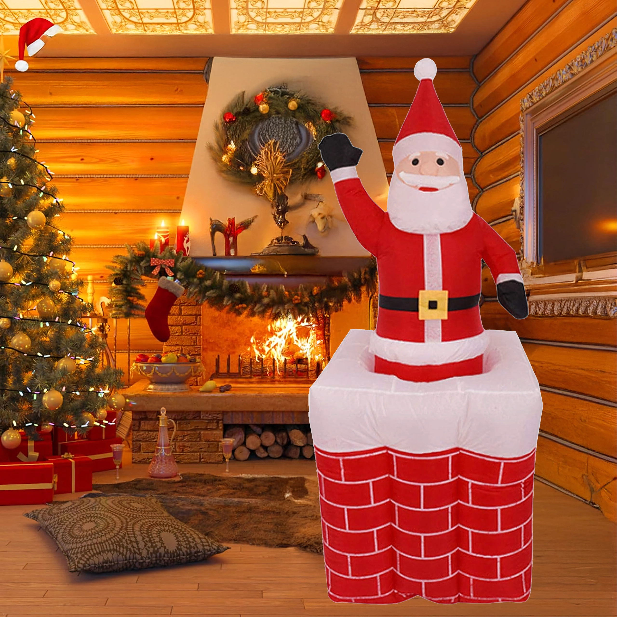 Breng de magie van Kerst in huis met een decoratie die zowel kinderen als volwassenen aanspreekt. Opblaasbare Kerstman in de schoorsteen met vloeiende uitschuifbeweging, LED-achtergrondverlichting en eenvoudig gebruik en onderhoud. De ideale keuze voor winterdecoratie en een echte seizoenshit.