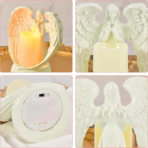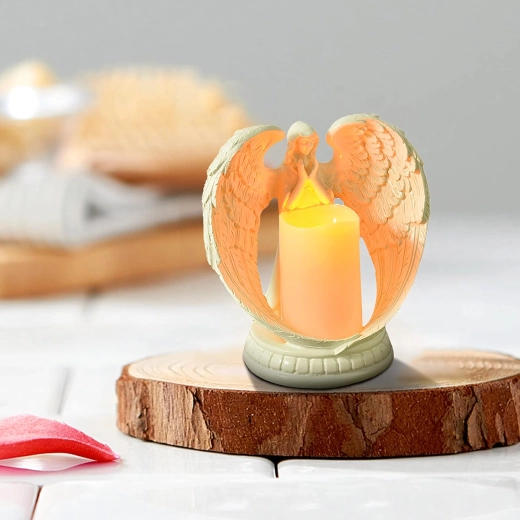 Dit verfijnde decoratieve engelfiguurtje met LED-kaars valt op door zijn tijdloze uitstraling en aangenaam warm licht, dat een rustige sfeer creëert. Dankzij het realistische vlam-effect oogt het licht natuurlijk en is het veilig voor dagelijks gebruik.