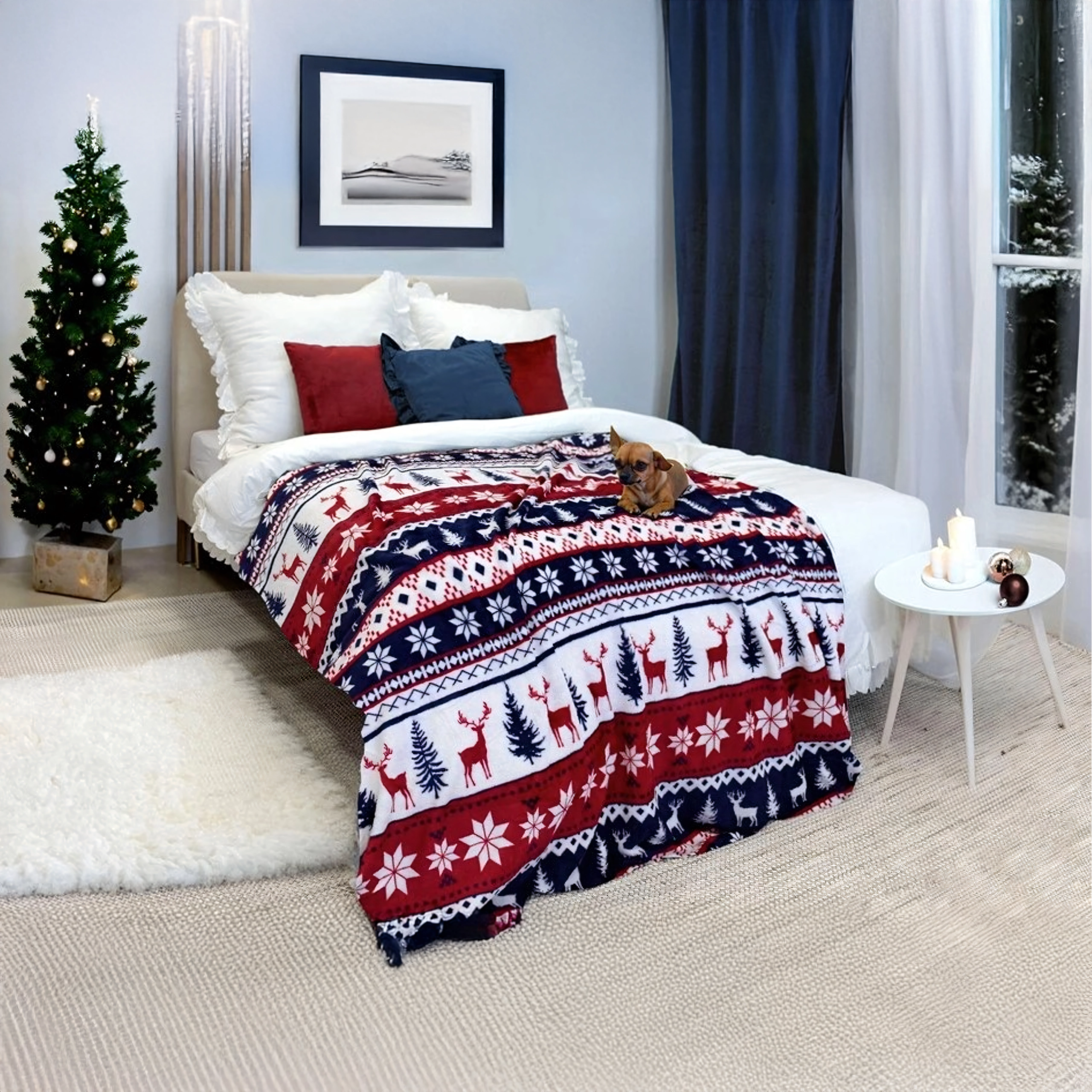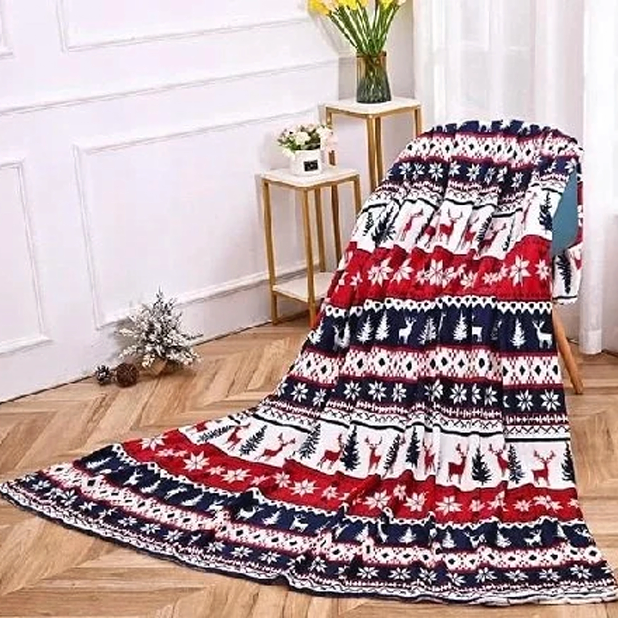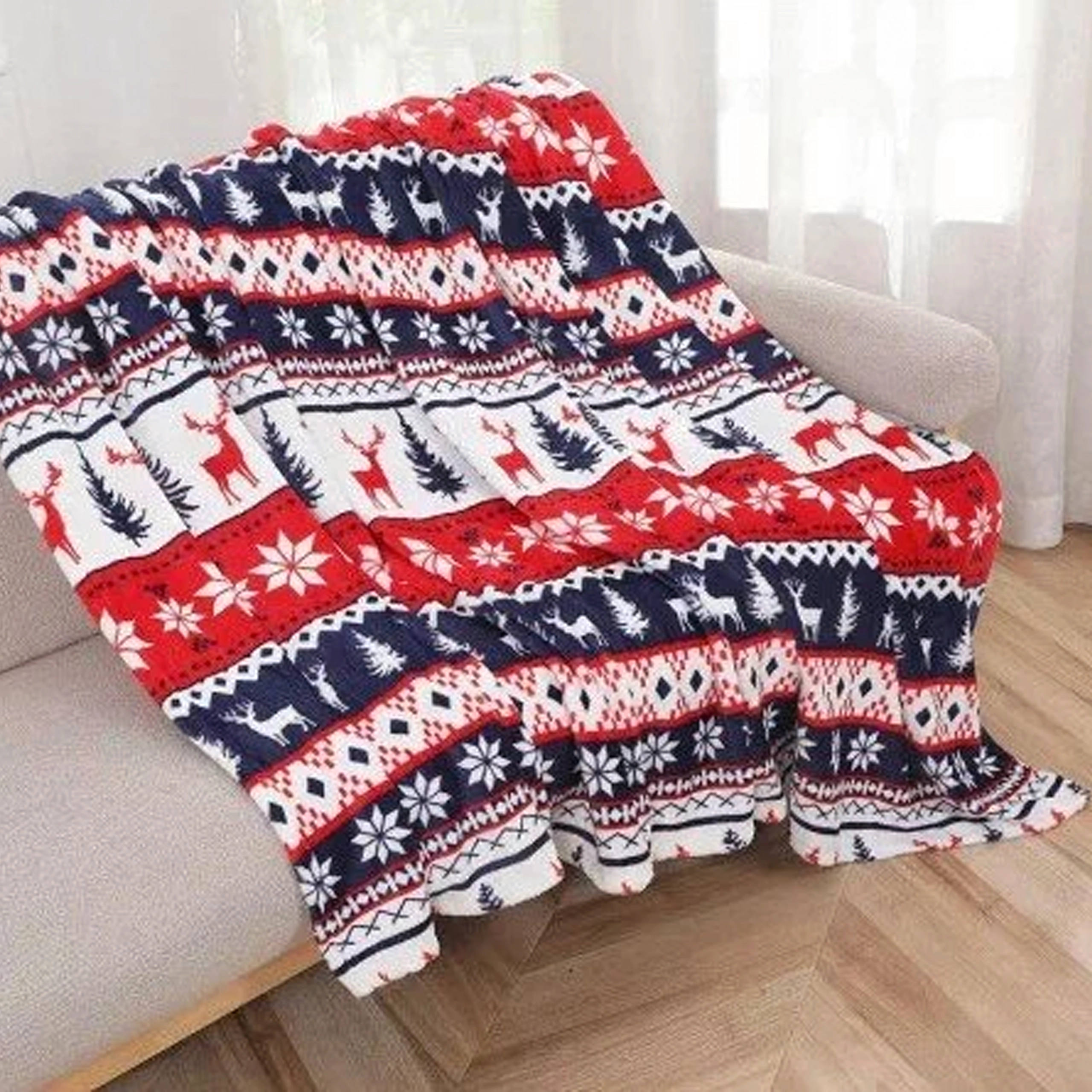 Wikkel jezelf in comfort met deze zachte en warme winterdeken met kerstmotief. Ideaal voor koude avonden en als stijlvol cadeau voor Kerst. Het formaat van 120 × 150 cm is perfect voor op de bank, bij de tv of voor onderweg.