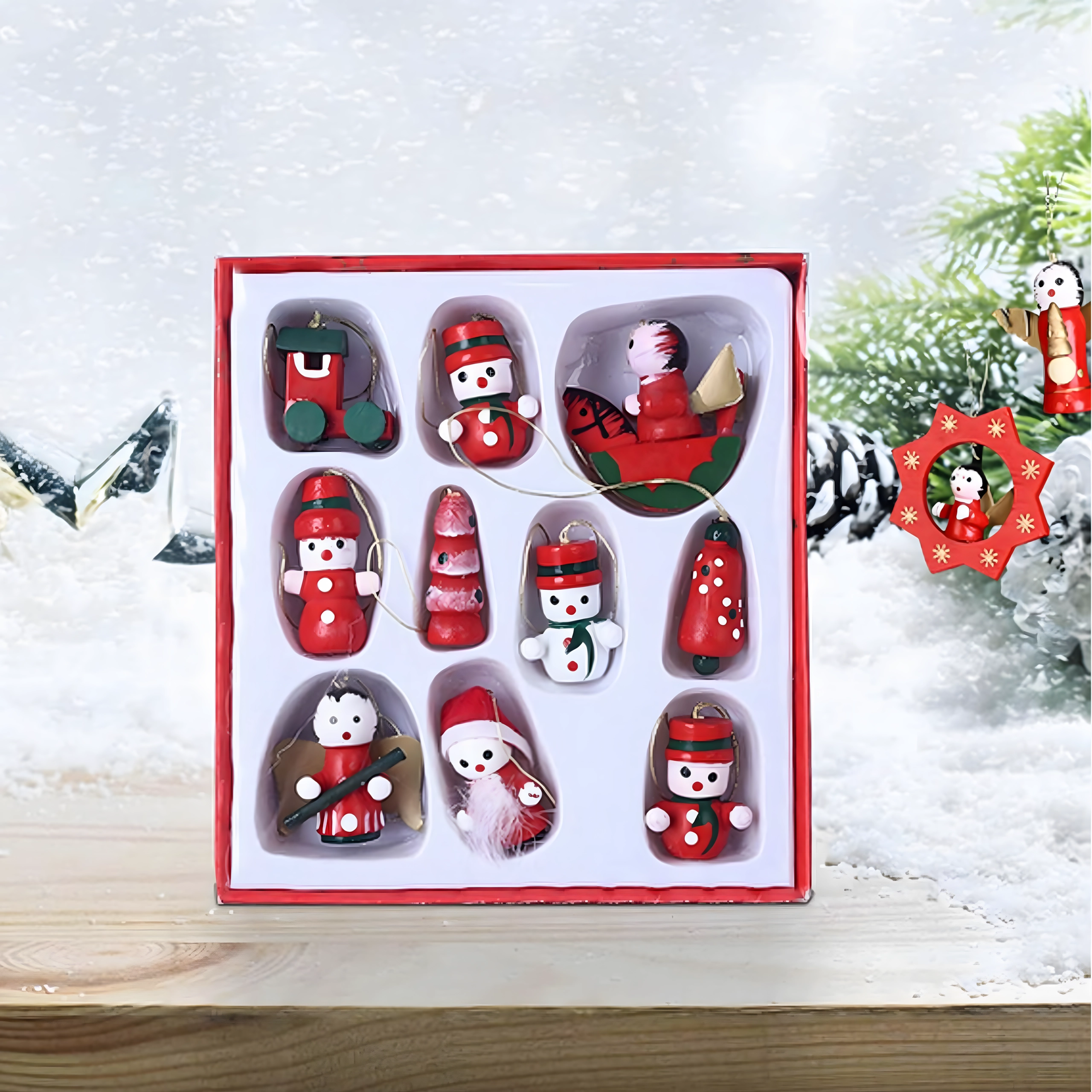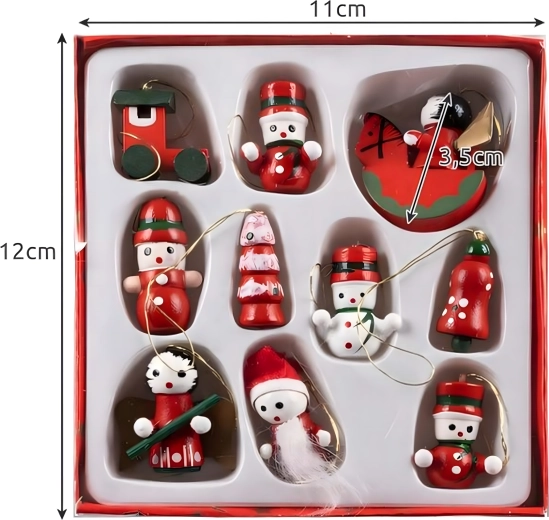 Set van 10 houten kersthangertjes is een tijdloze decoratie die sfeer geeft aan elke boom en feestelijke aankleding. Ze zijn gemaakt van licht, onbreekbaar hout en dus veilig voor kinderen en huisdieren. De diverse motieven – laars, Kerstman, boom, engel, bel en meer – zorgen thuis voor een warme, feestelijke sfeer.
