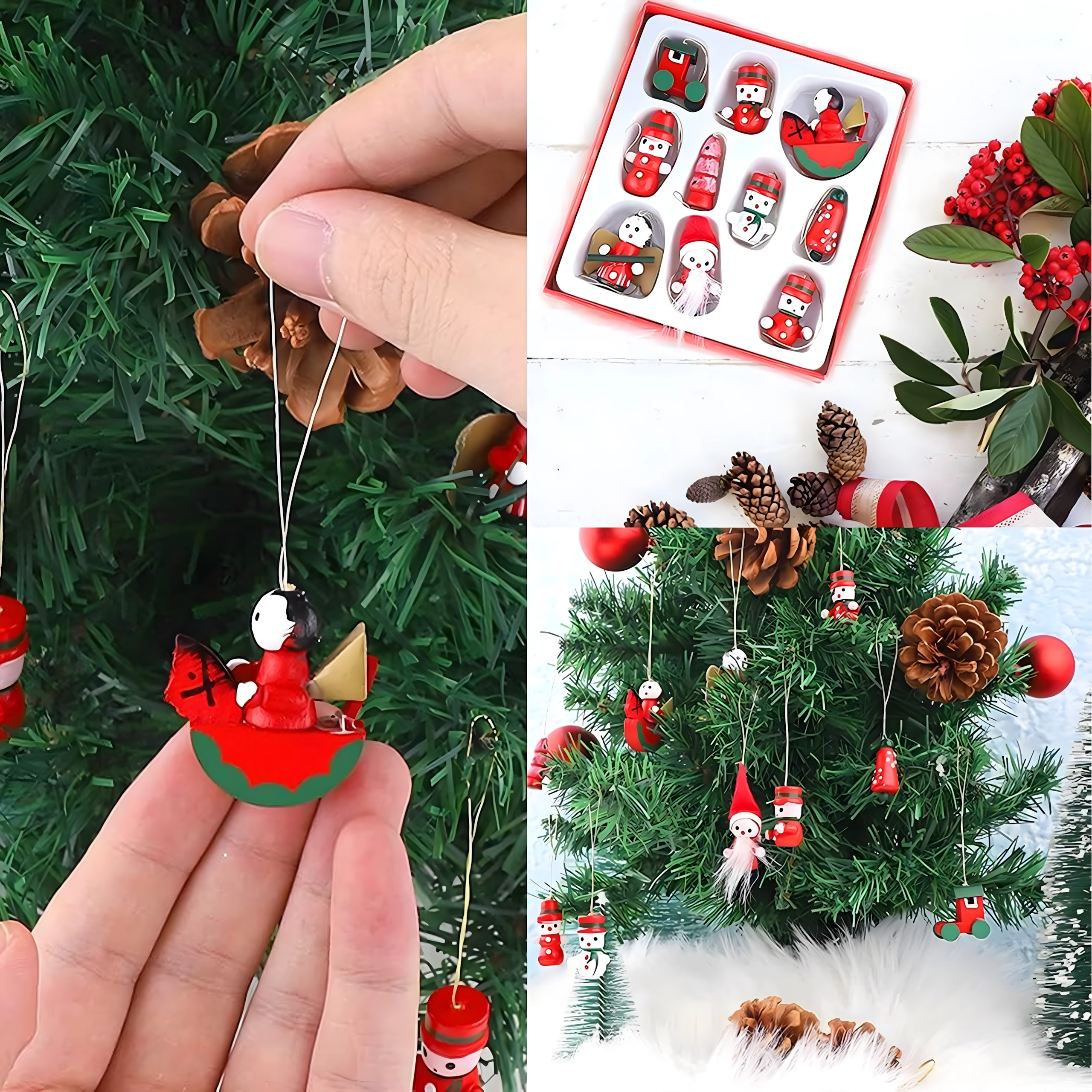 Breng je kerstdecor tot leven met een stijlvolle set houten hangornamenten. De natuurlijke uitstraling en het precieze vakwerk passen bij zowel traditionele als moderne arrangementen, en dankzij het lage gewicht hang je ze gemakkelijk aan elke tak.