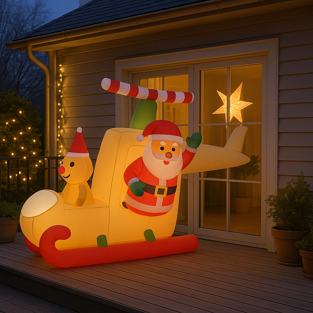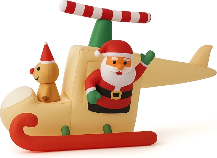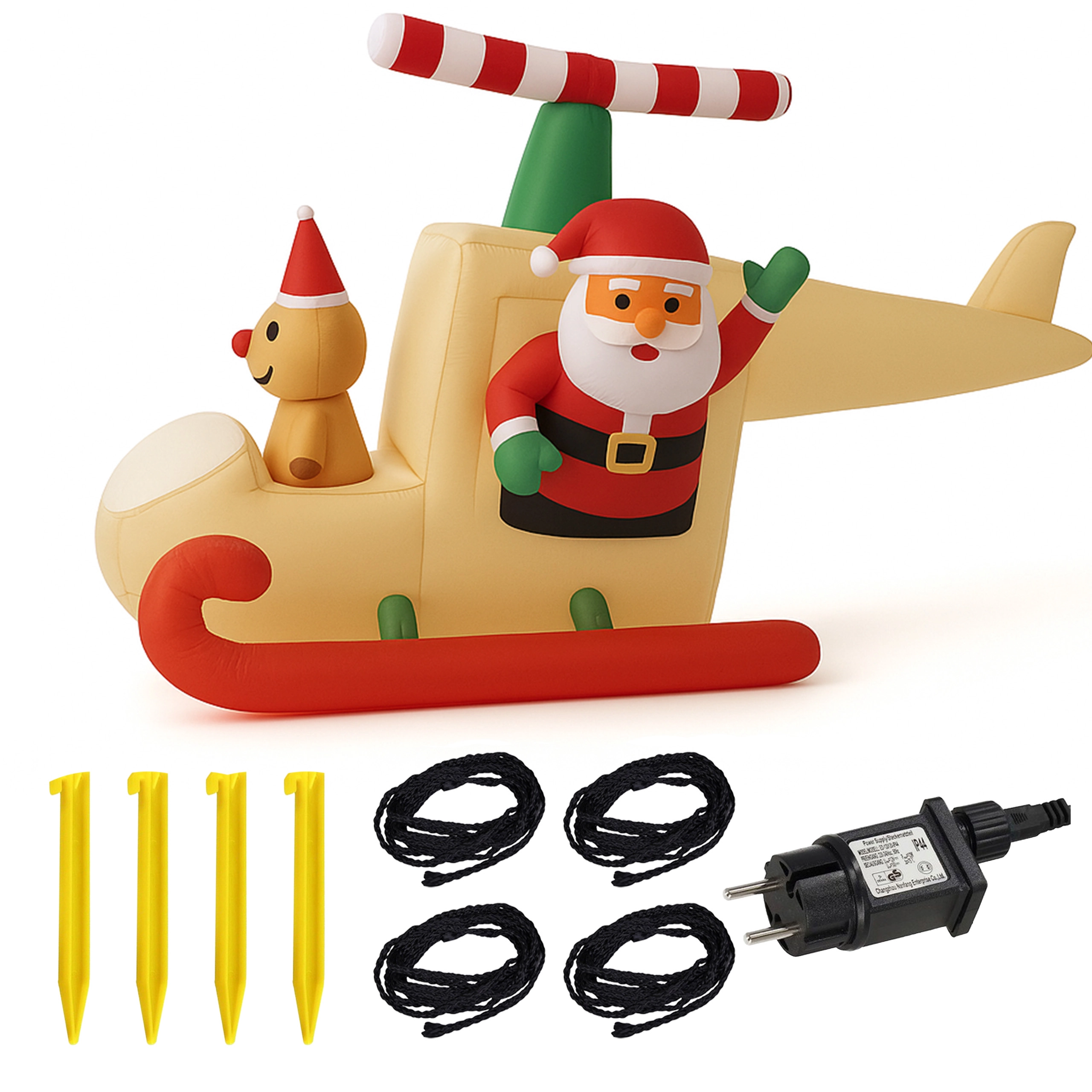 Opblaasbare Kerstman in slee, hoogte 160 cm brengt een magische kerstsfeer in je tuin. Dankzij de ingebouwde LED-lampjes straalt hij een aangenaam warm licht uit en de automatische opblazing zorgt voor een snelle en eenvoudige installatie. Het duurzame en waterdichte materiaal garandeert een lange levensduur en plezier voor vele seizoenen.
