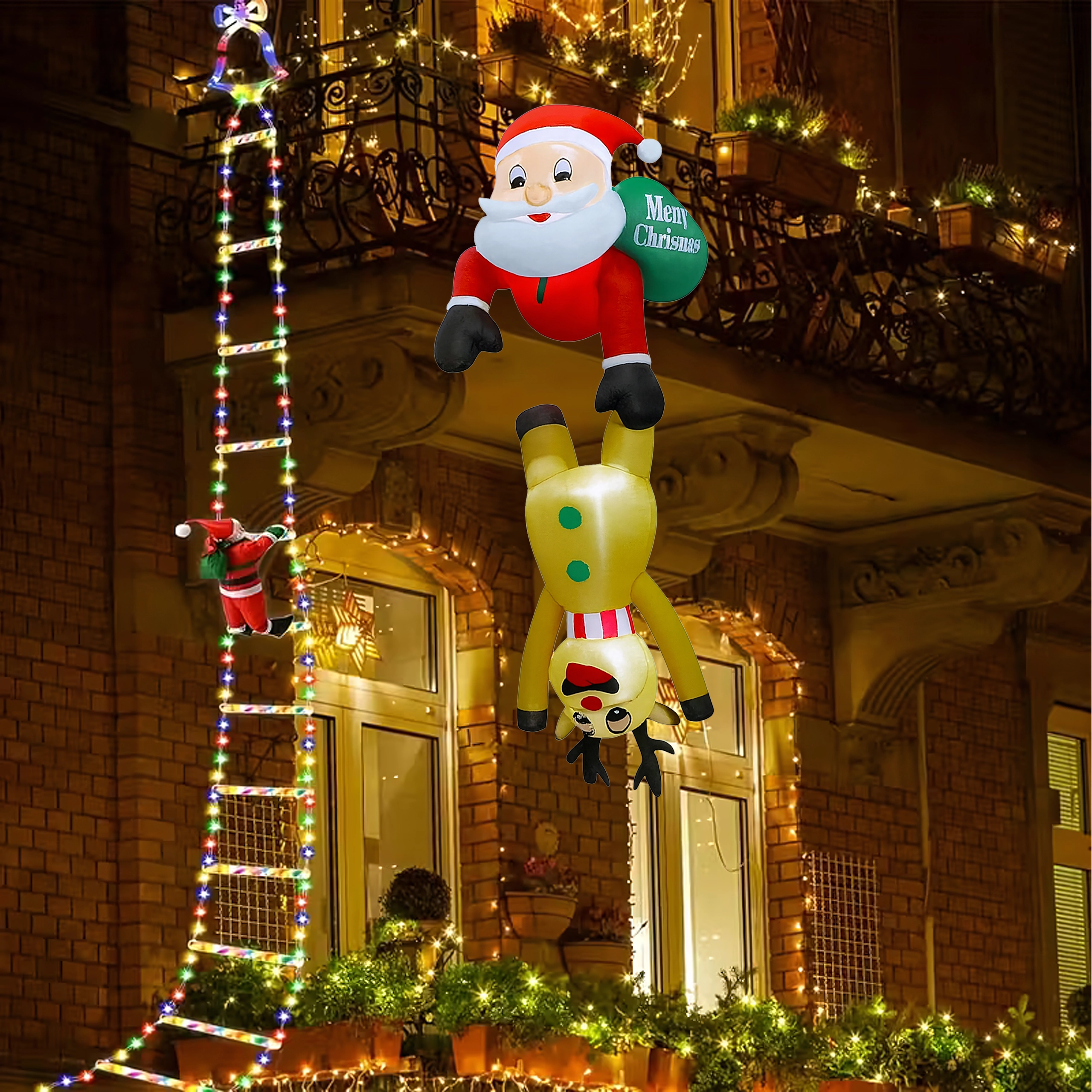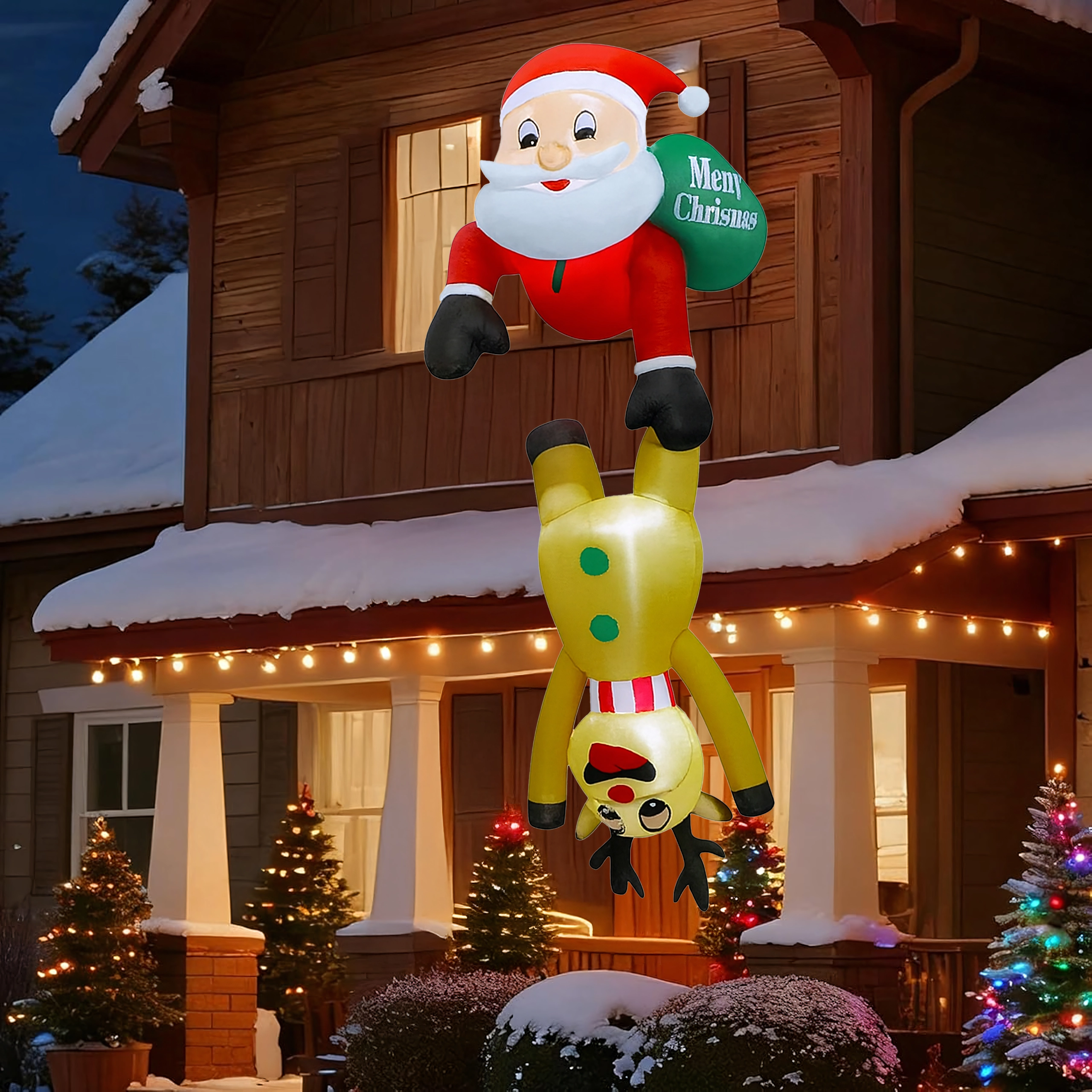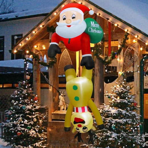 Deze originele kerstdecoratie trekt de aandacht met het speelse motief van Sint-Maarten die als het ware “hangt” aan het rendier en creëert een warme, feestelijke sfeer. De LED-verlichting zorgt voor een opvallend effect tijdens donkere winteravonden, terwijl de sterke polyester bestand is tegen wisselende weersomstandigheden.