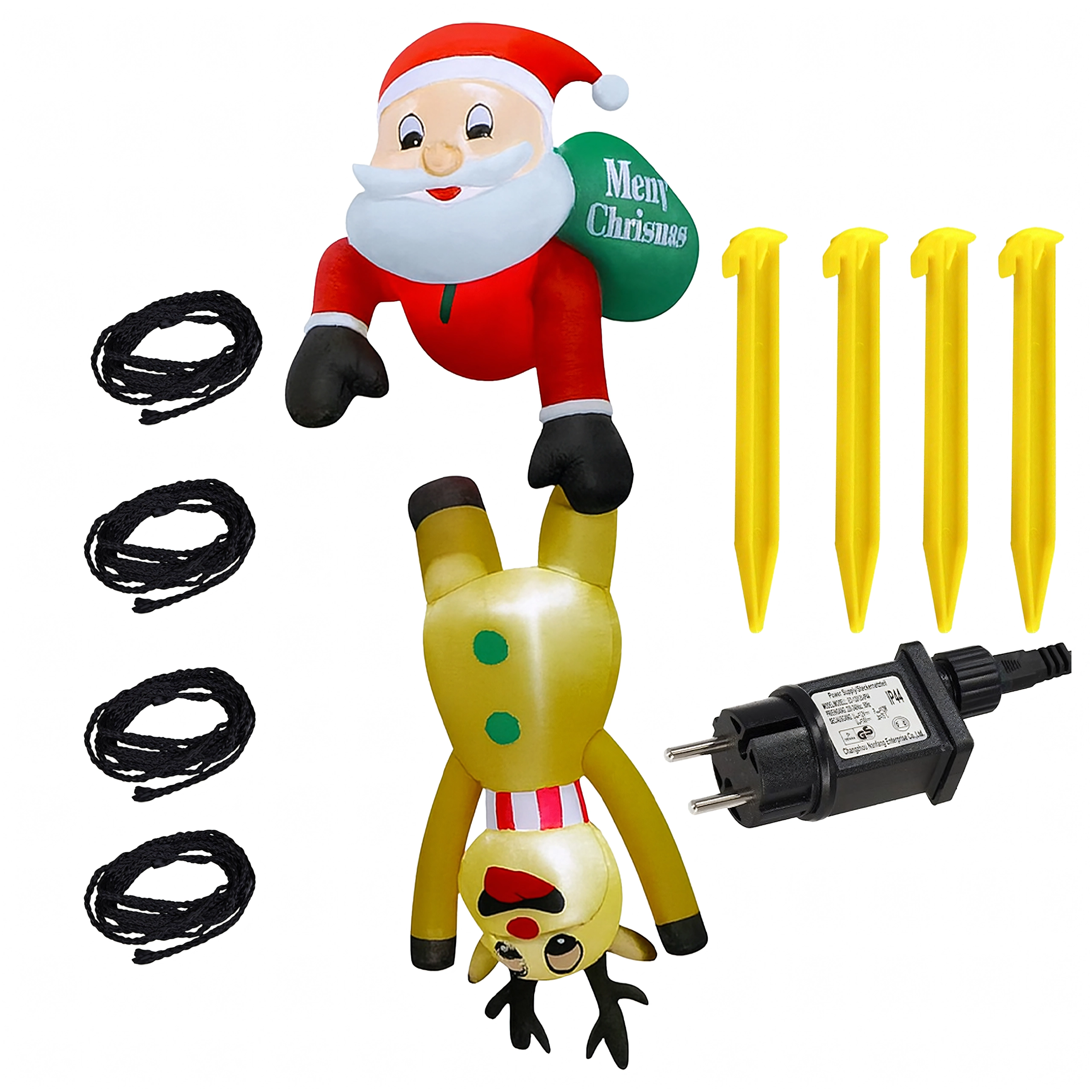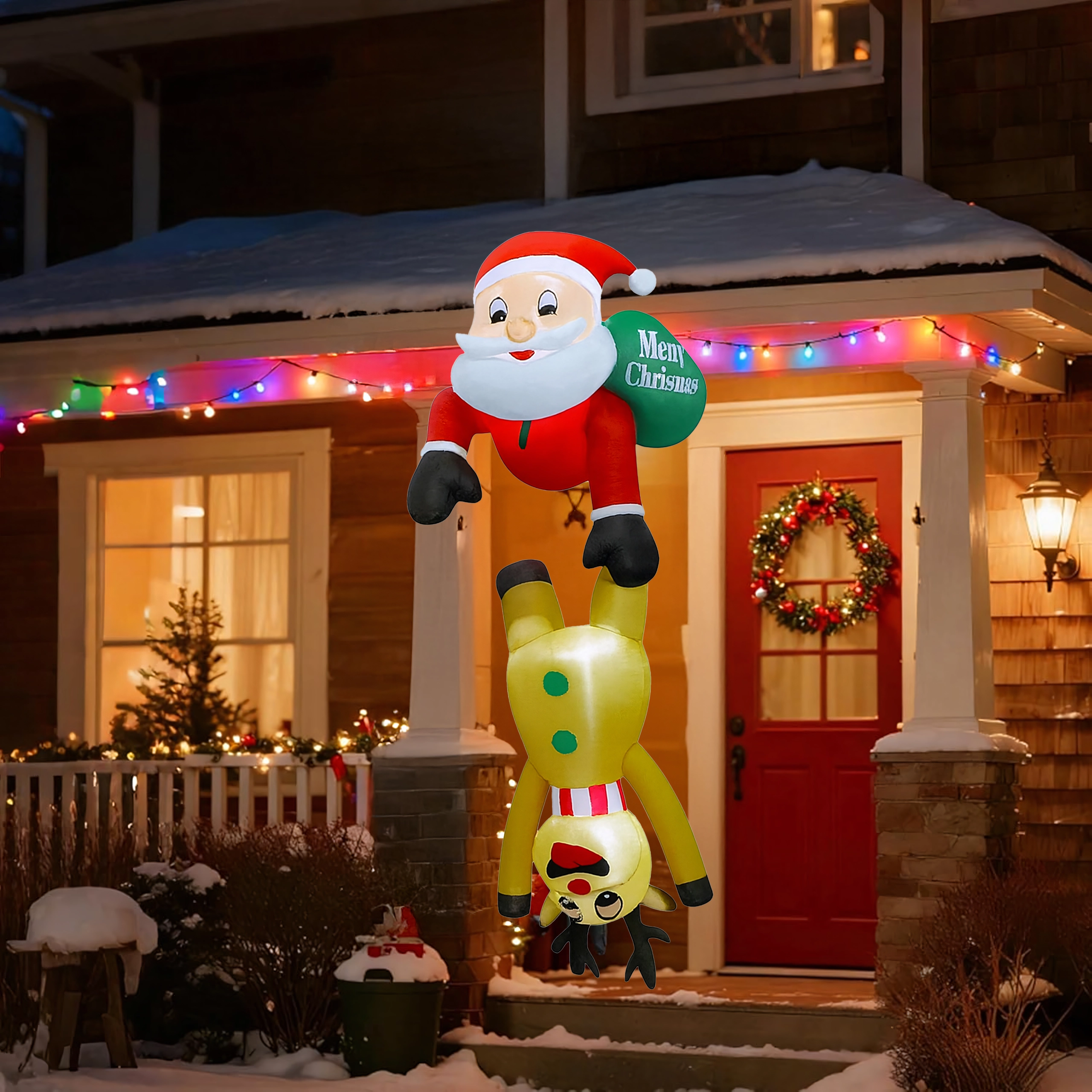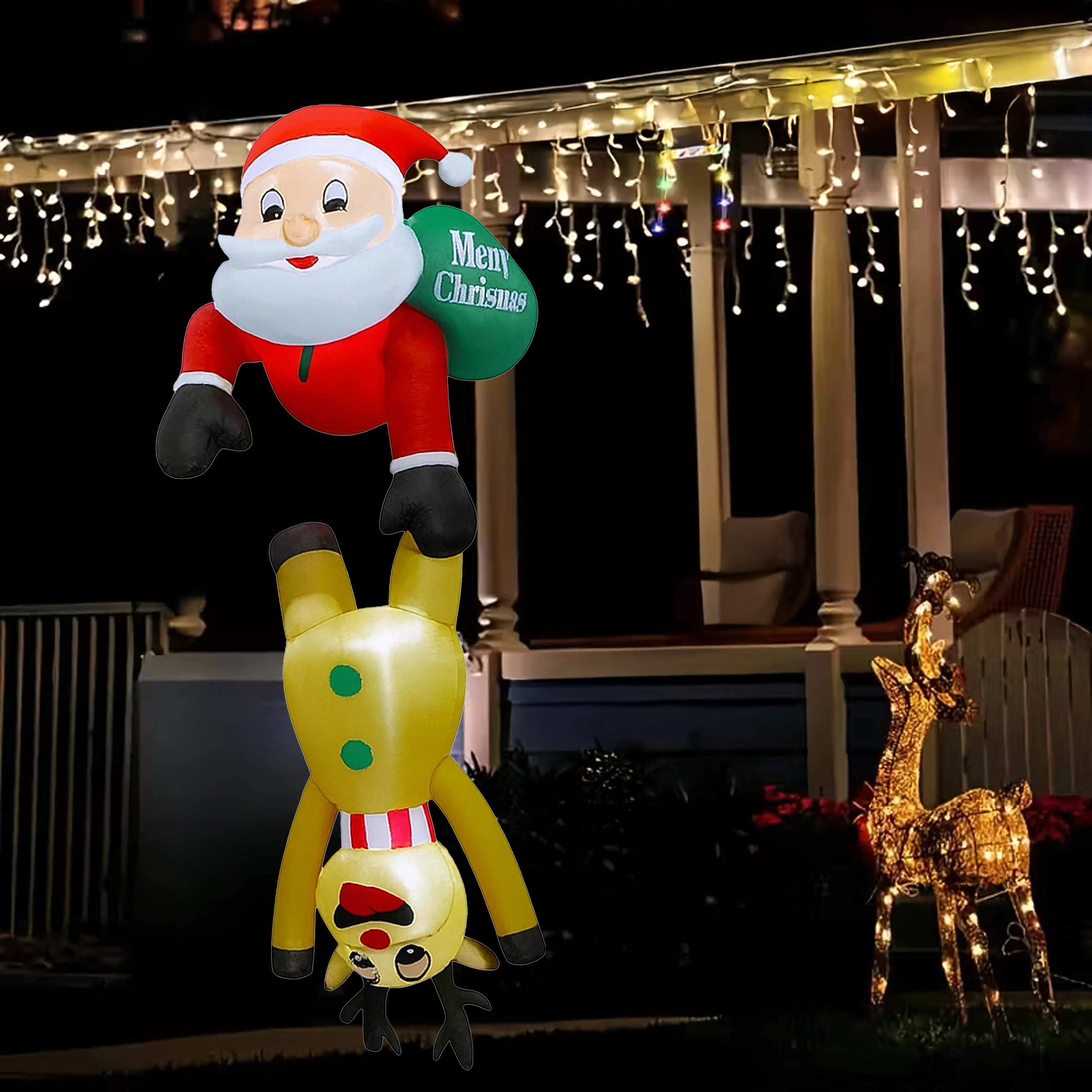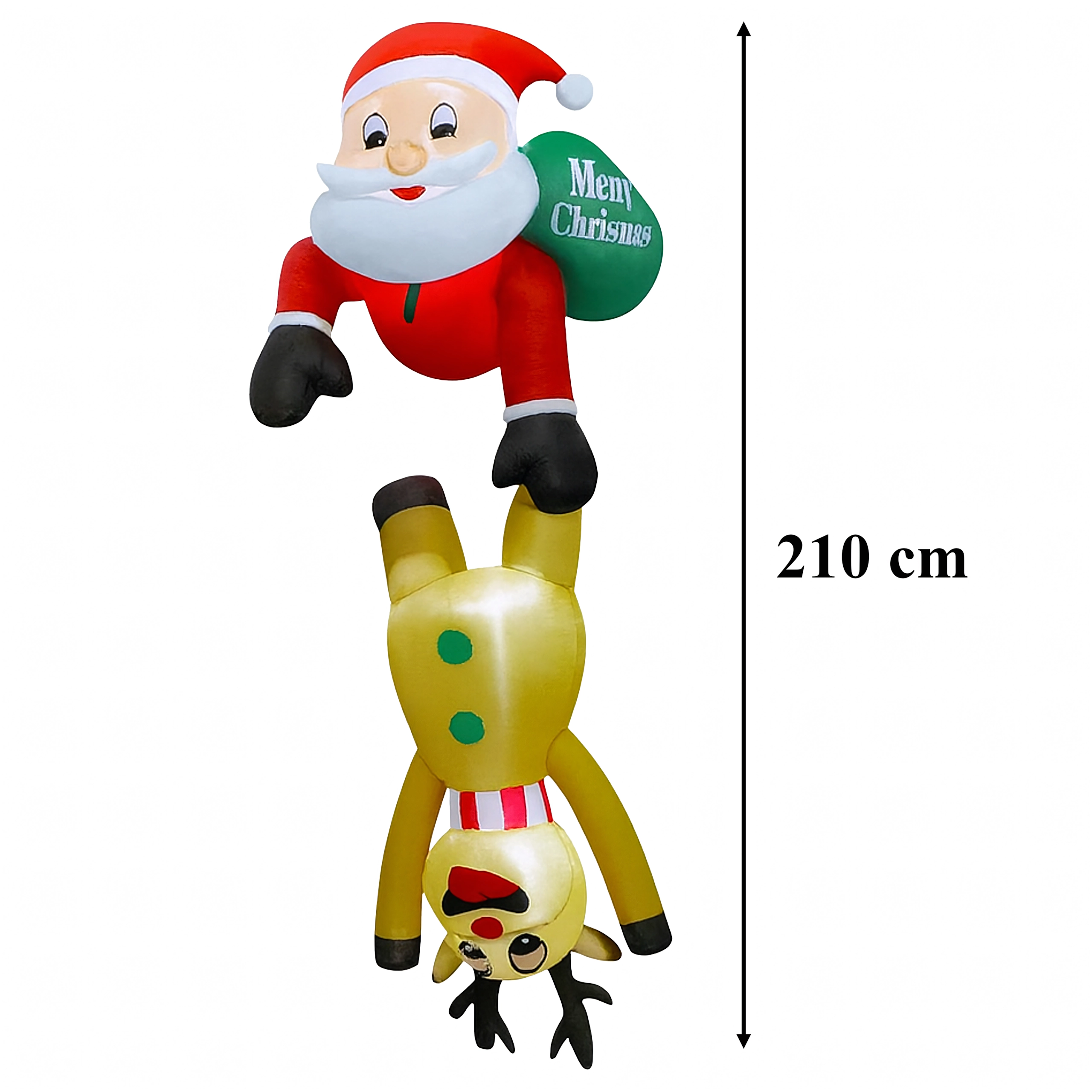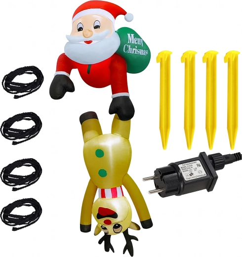 Vrolijke opblaasbare decoratie van Sint-Maarten met een rendier met een hoogte van 2,1 m die huis en tuin omtovert tot een betoverend wintertafereel. Dankzij de geïntegreerde LED-verlichting komt hij na zonsondergang prachtig tot zijn recht en tovert hij met zijn creatieve design een glimlach op het gezicht van zowel kinderen als volwassenen. Gemaakt van duurzame polyesterstof, geschikt voor binnen en buiten.