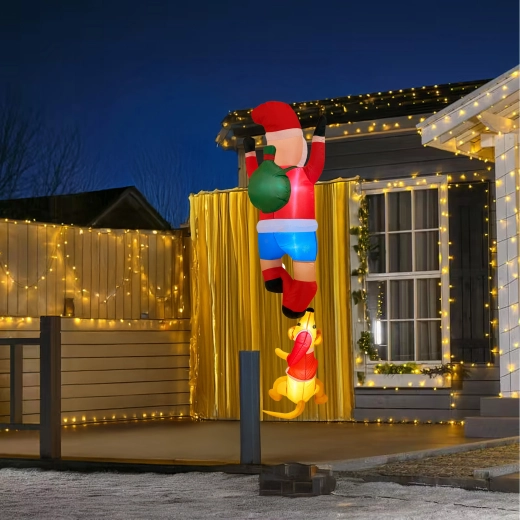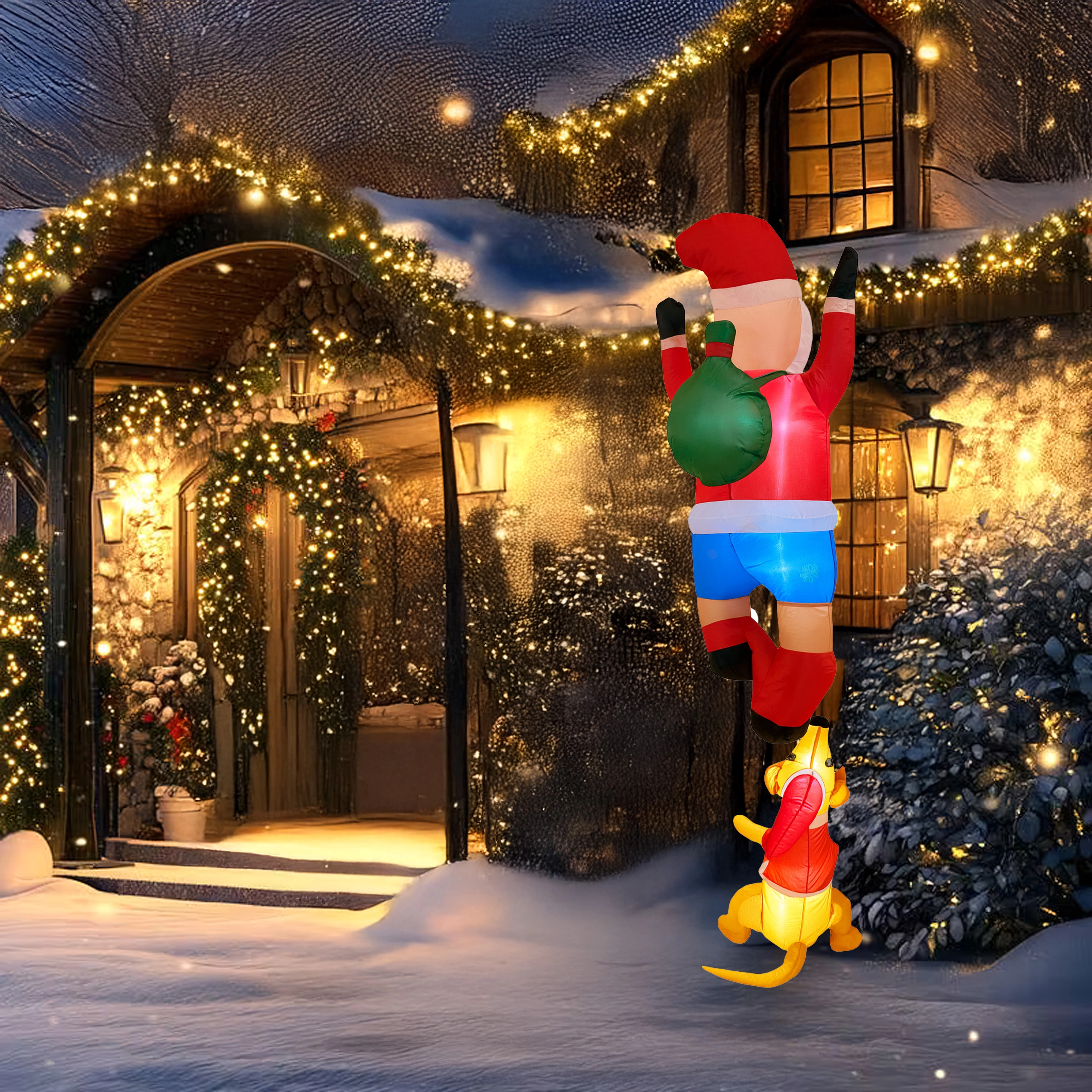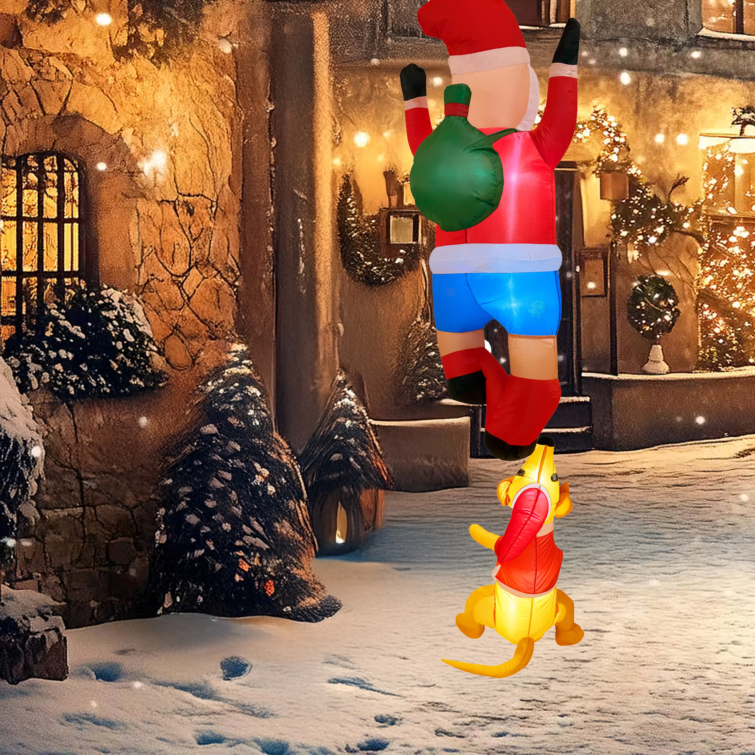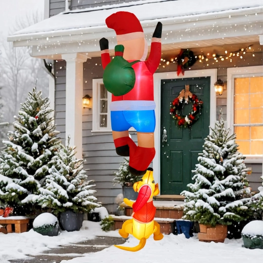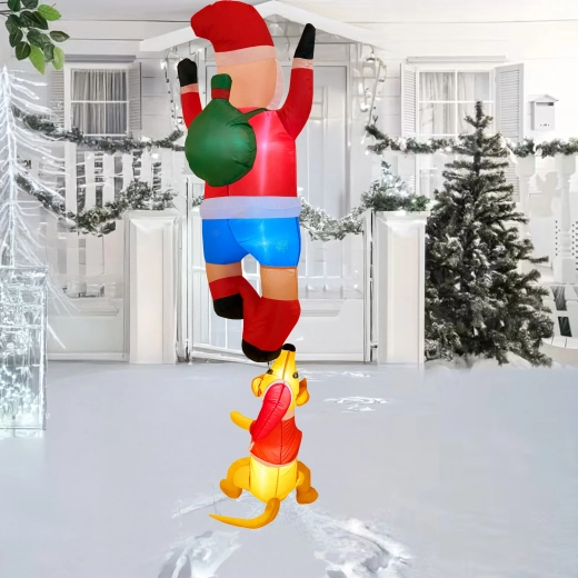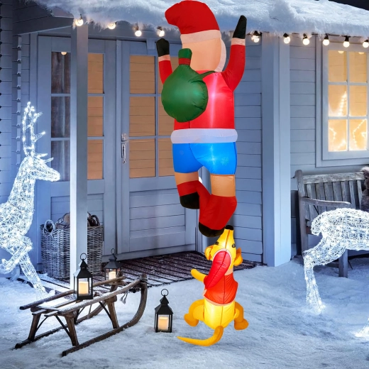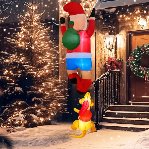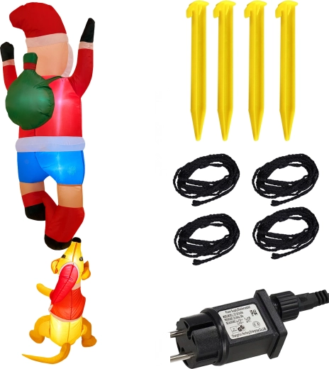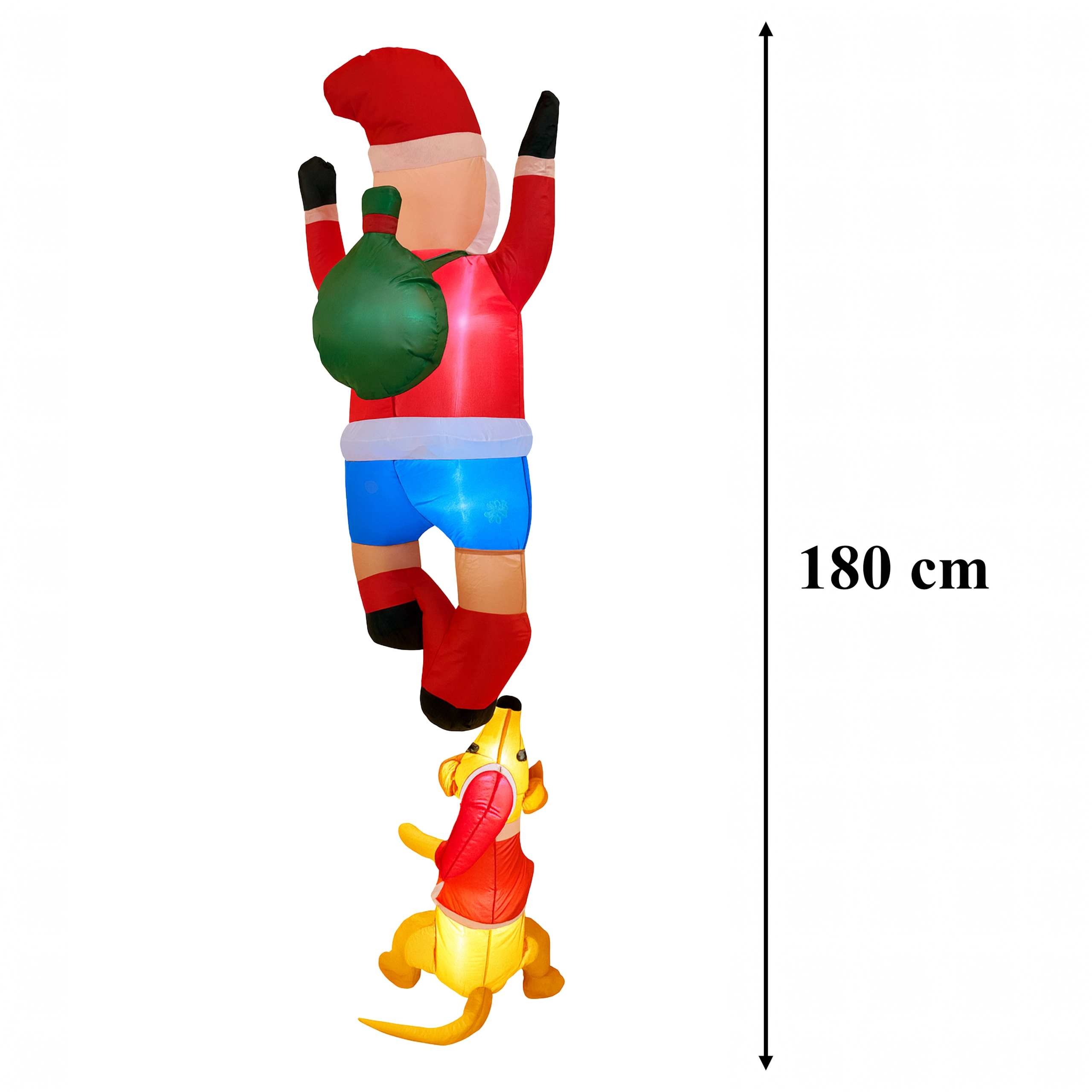 Breng je feestdecor tot leven met de opvallende figuur van de KERSTMAN met rendier van 1,8 m hoog. Snel op te blazen, heldere LED-verlichting en stevig materiaal zorgen voor zorgeloos gebruik tijdens de hele feestperiode. Perfect voor voor het huis, op het terras, in de tuin of in de entreehal.