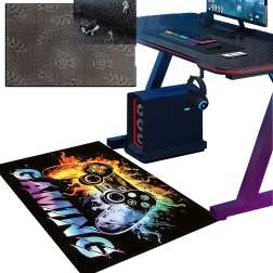 De compacte beschermende gaming vloermat voor onder de stoel 50 × 80 cm beschermt de vloer tegen krassen en geluid, terwijl hij stijl toevoegt aan je game- of kantoorset‑up. Dankzij de anti‑slip onderlaag blijft hij stevig op zijn plaats, het slijtvaste oppervlak zorgt voor soepele beweging van een bureaustoel met wielen en de versterkte randen verlengen de levensduur. Geschikt voor harde vloeren zoals vinyl, steen, tegels, hout, laminaat en beton.