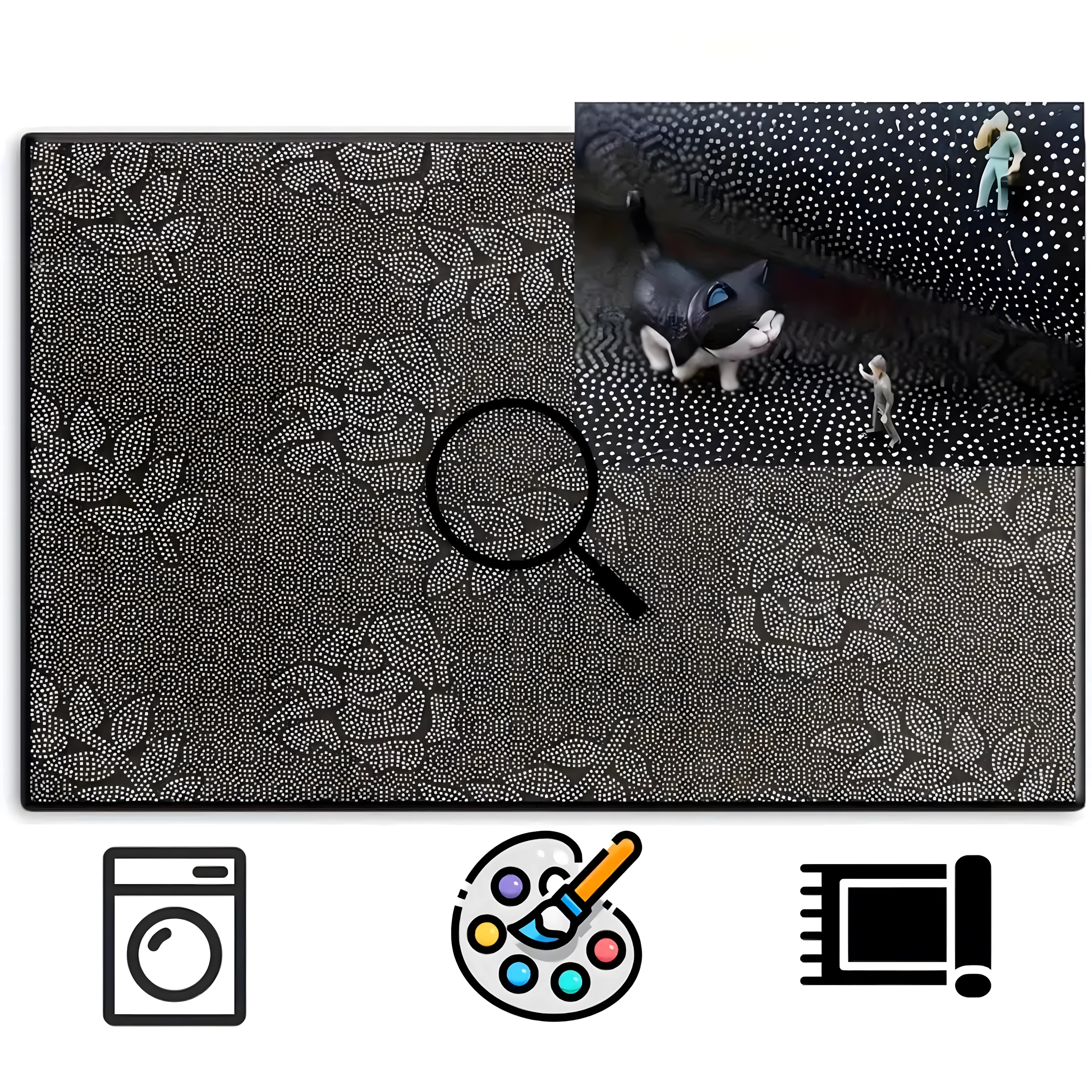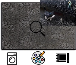 De bovenzijde is van een duurzaam, zacht materiaal voor stille en soepele stoelbeweging. De onderzijde met anti‑slip rubber voorkomt verschuiven, ook bij dynamisch zitten. Verstevigde naden rondom houden de vorm en voorkomen rafelen. De mat is geschikt voor harde vloeren – vinyl, steen, tegels, hout, laminaat en beton.