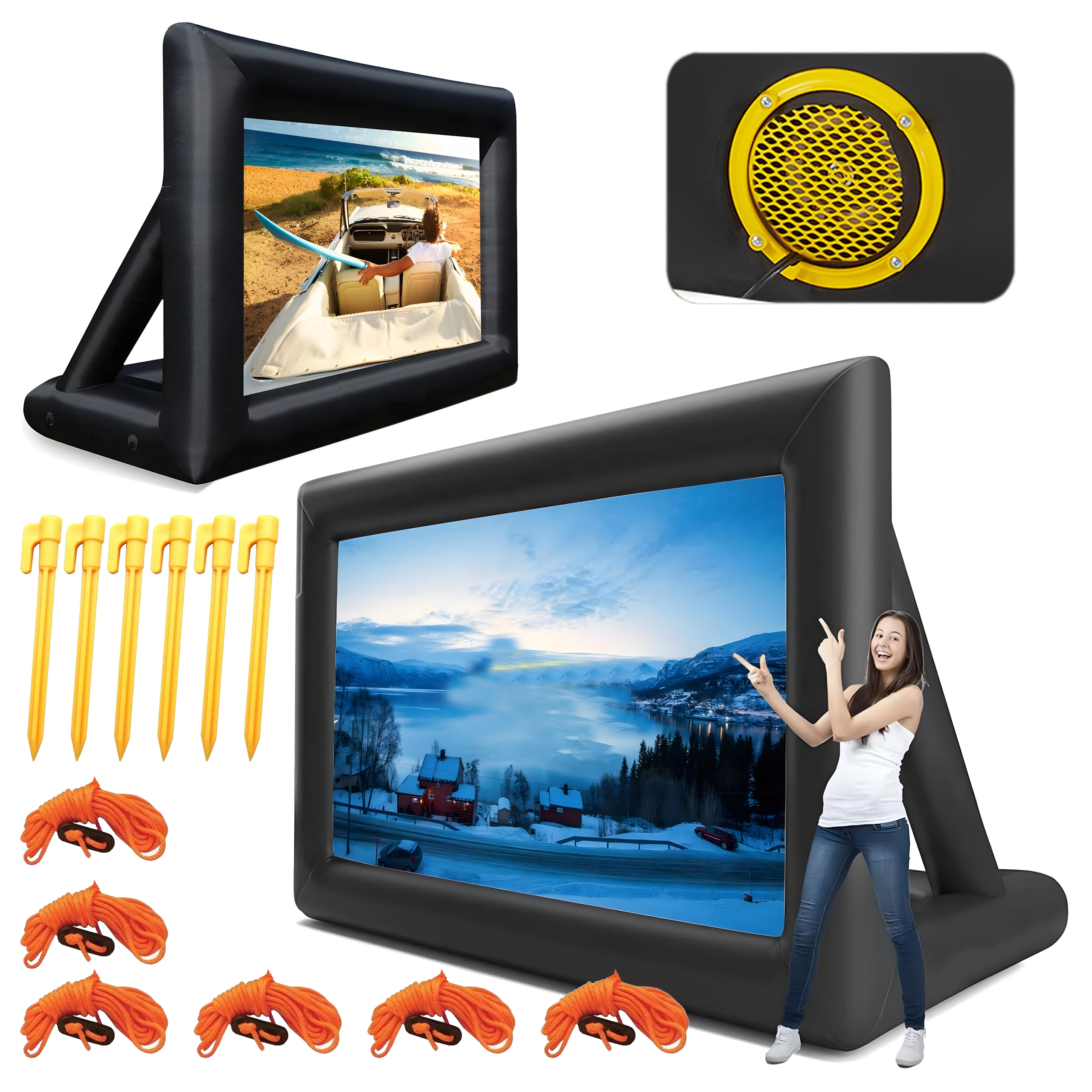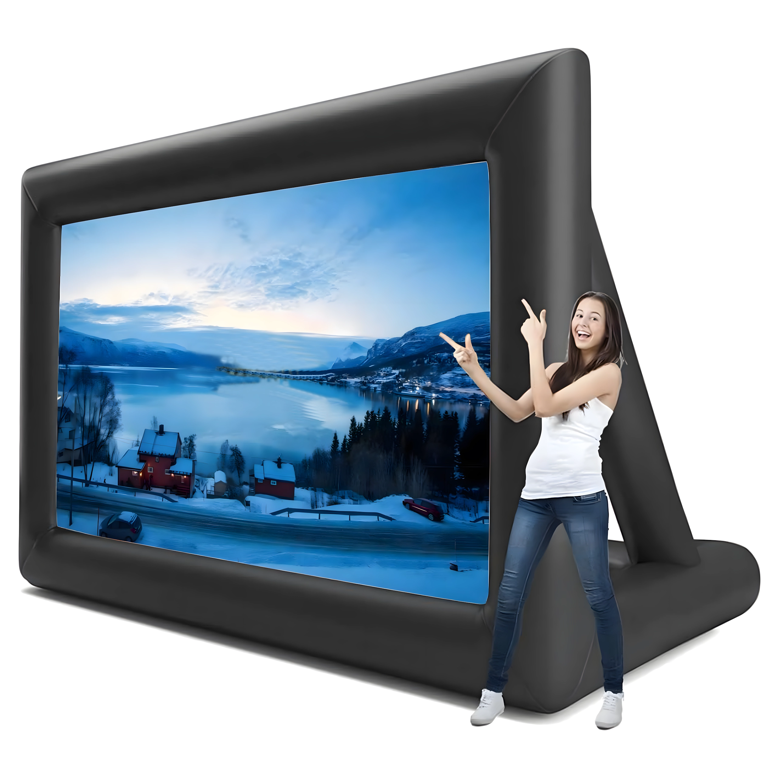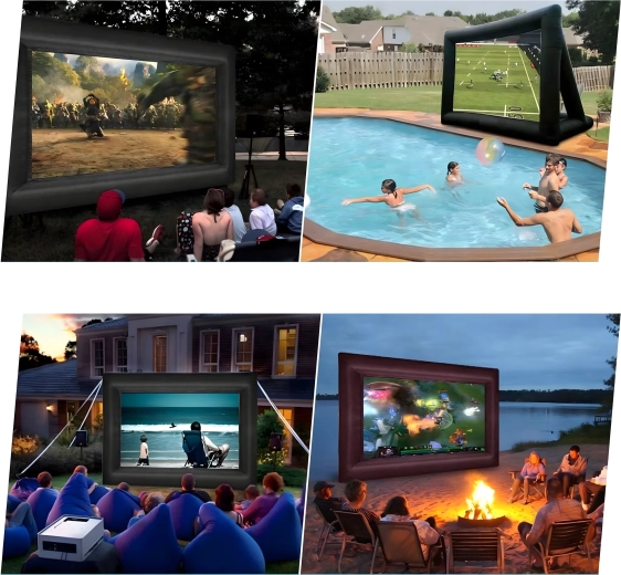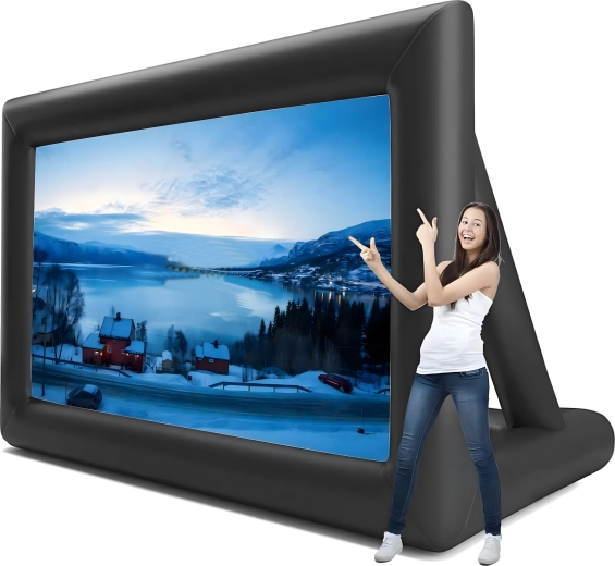 Geniet van filmavonden onder de open hemel met dit grote opblaasbare projectiescherm. Ideaal voor buitenbioscopen, feesten, presentaties en openbare evenementen. Biedt voor- en achterprojectie, snelle en eenvoudige installatie en is gemaakt van duurzame materialen voor een lange levensduur en gemakkelijk transport.