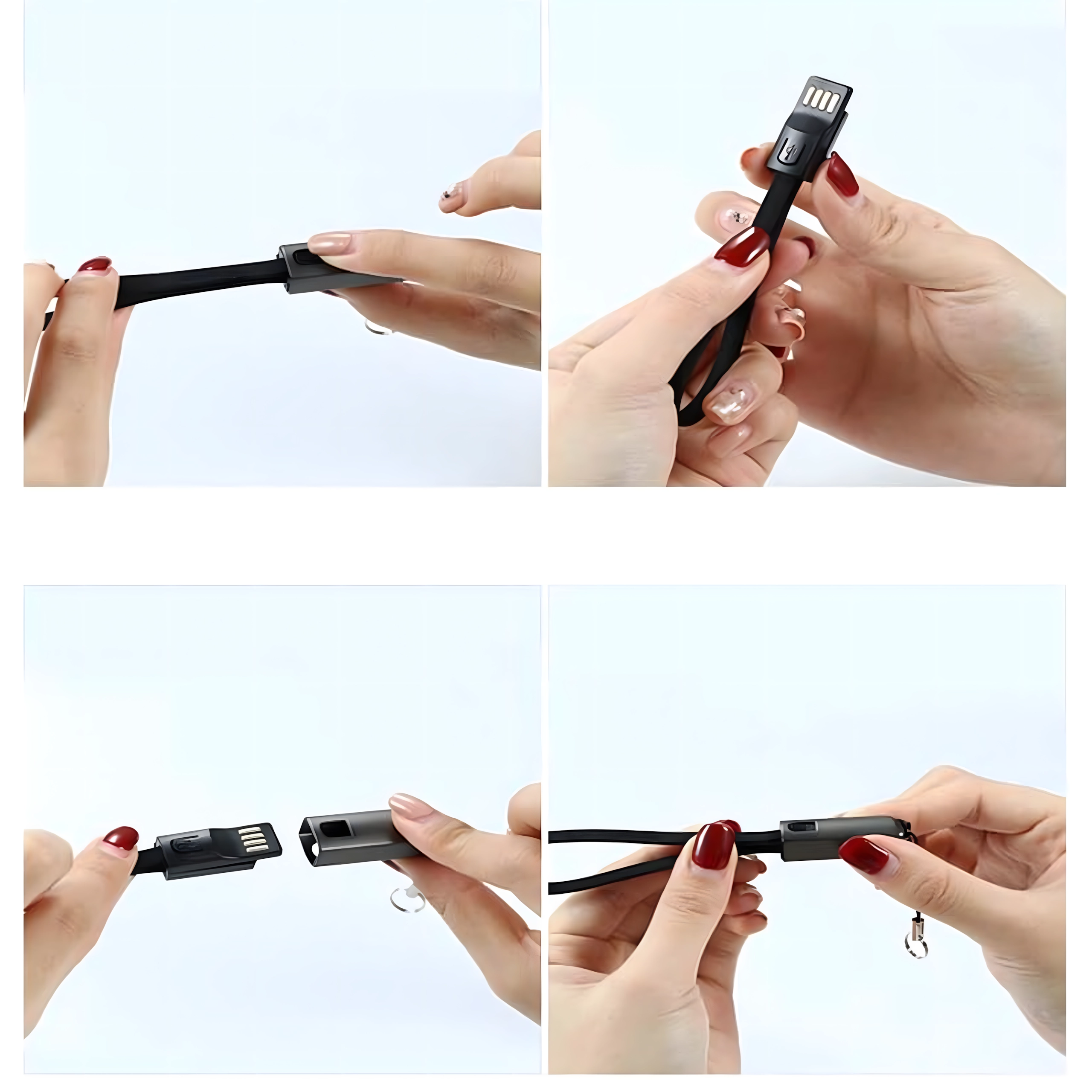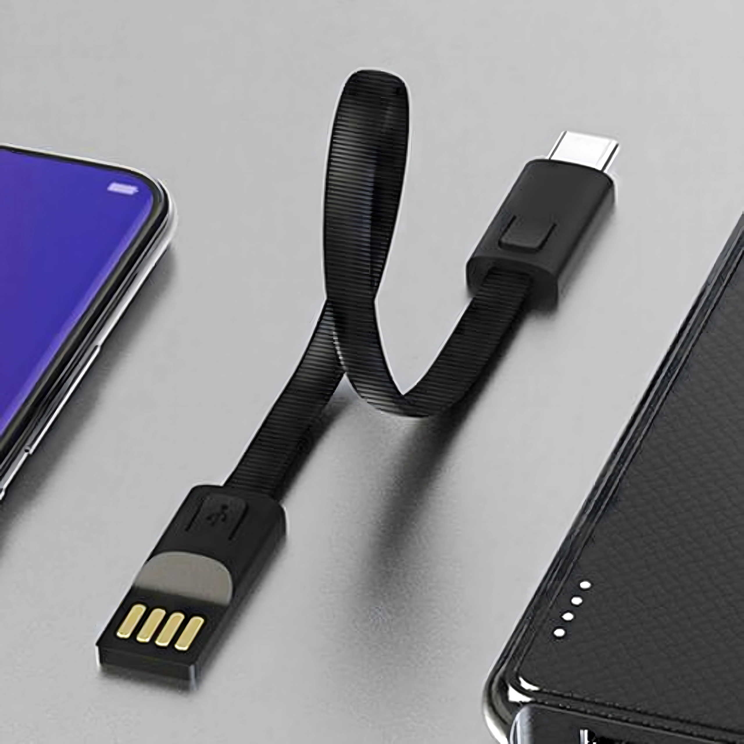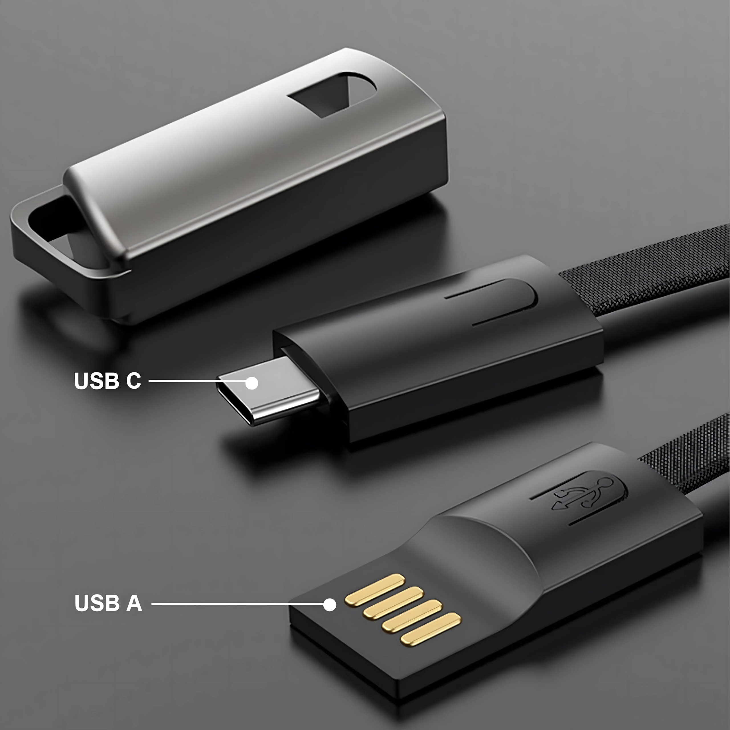Praktische kabel in de vorm van een hanger die mobiliteit, functionaliteit en modern design combineert. Hiermee sluit je een apparaat met USB‑C aan op een USB‑A‑poort en zorg je voor snel bijladen en stabiele synchronisatie van bestanden. Dankzij de lanyard-uitvoering is hij geschikt voor sleutels, tas of rugzak – je hebt hem altijd bij de hand.
