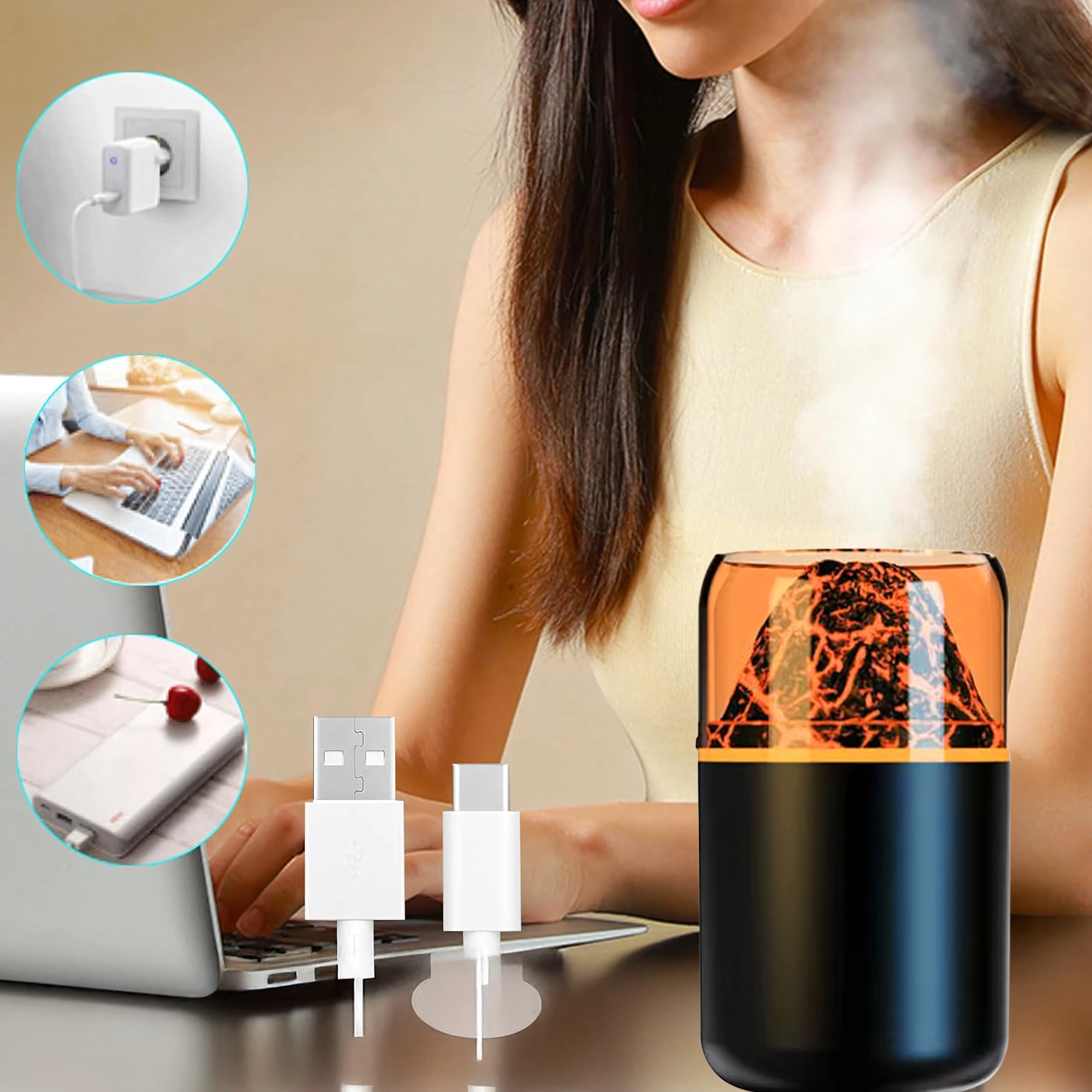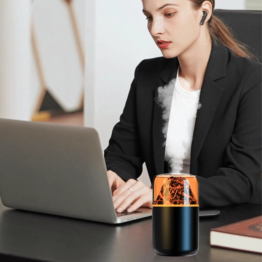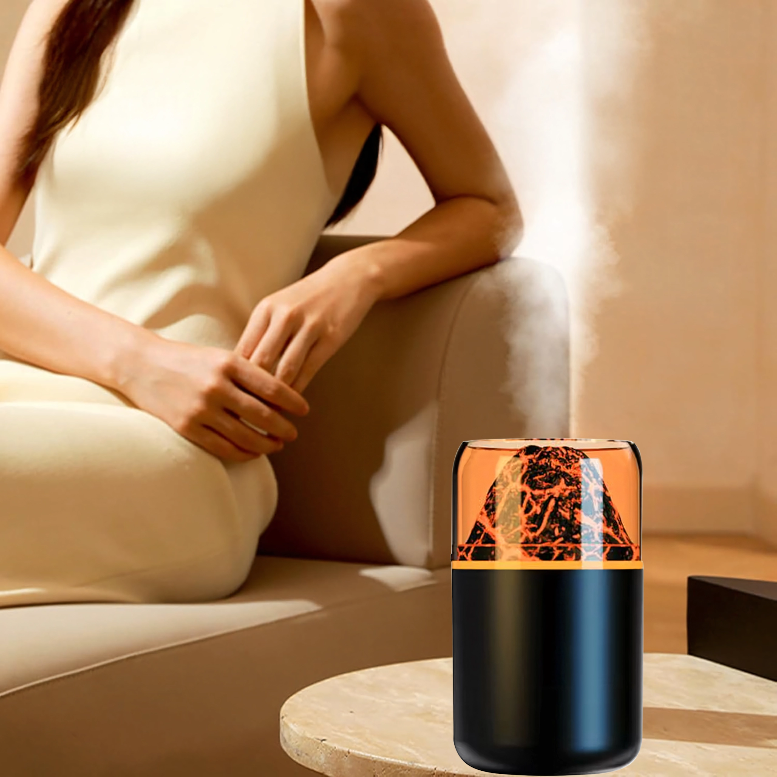 - Luchtbevochtiger en aromadiffuser met LED-vulkaaneffect
