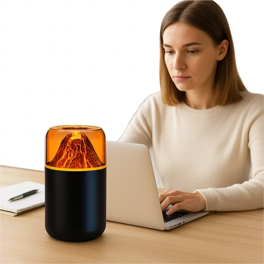 Zoek je een apparaat dat niet alleen effectief de lucht bevochtigt, maar ook je ruimte verfraait? Deze moderne luchtbevochtiger met vulkaaneffect creëert realistische nevel-‘lava’ met LED-licht en verandert de sfeer in elke kamer. Door een paar druppels etherische olie toe te voegen werkt hij ook als aromadiffuser.