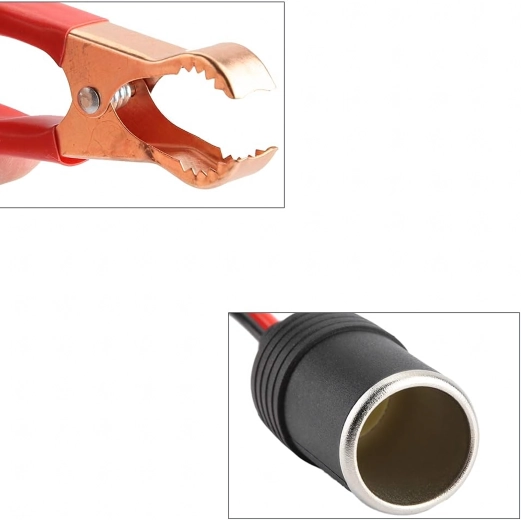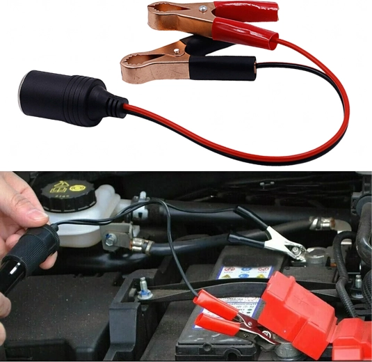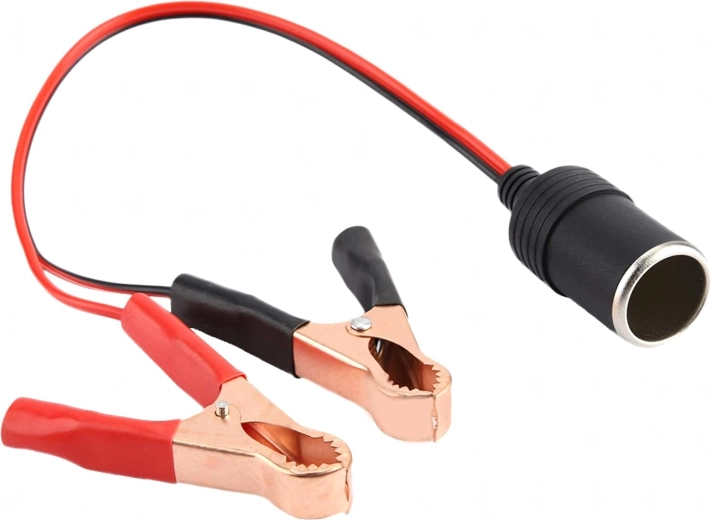 Praktische adapter voor de 12/24 V autoaansteker met krokodillenklemmen voor snel en veilig voeden van apparaten in auto, caravan of vrachtwagen. Ideaal voor pompen, koelkasten, laders en ander accessoires. Compacte en universele oplossing voor onderweg en in het veld, altijd bij de hand en klaar voor gebruik.