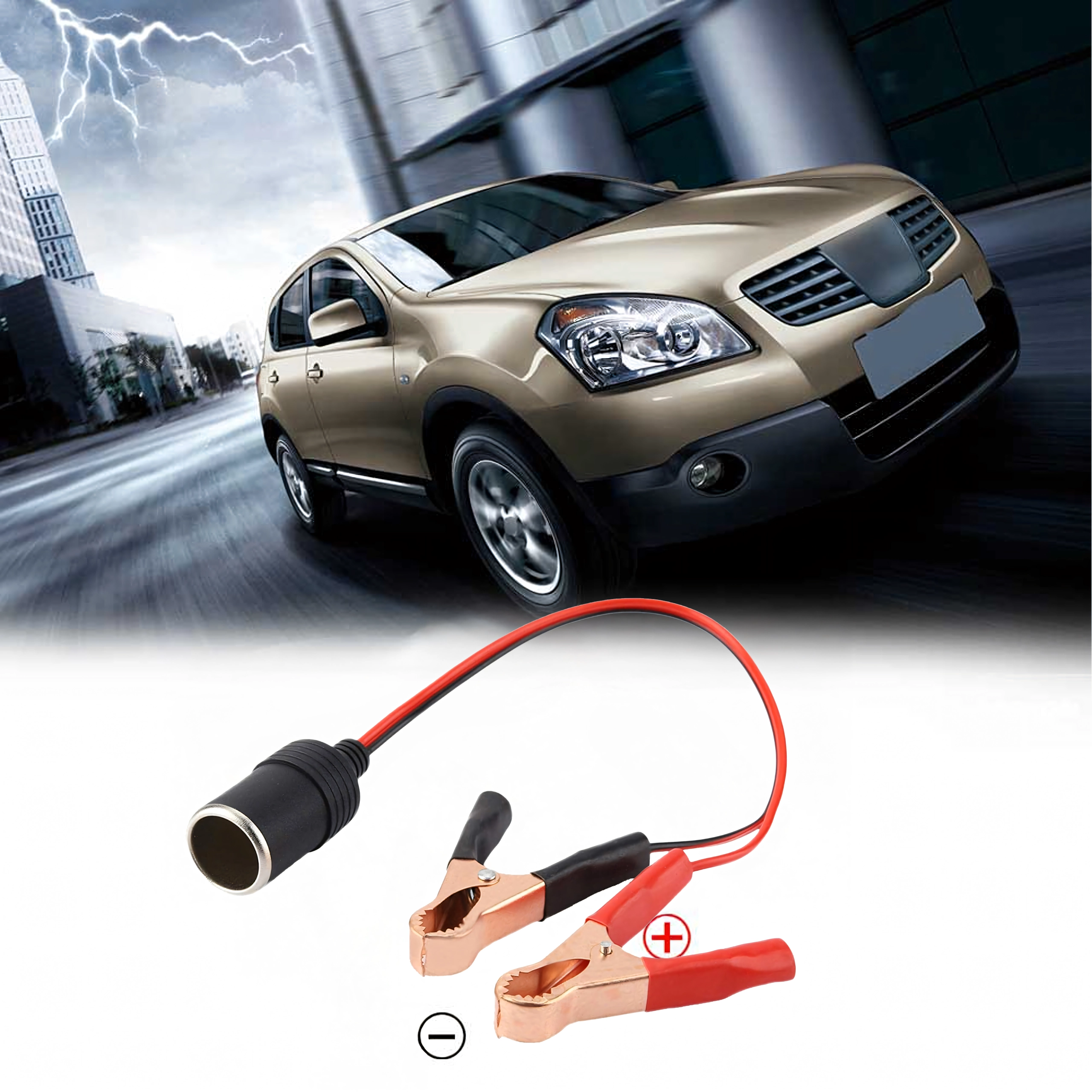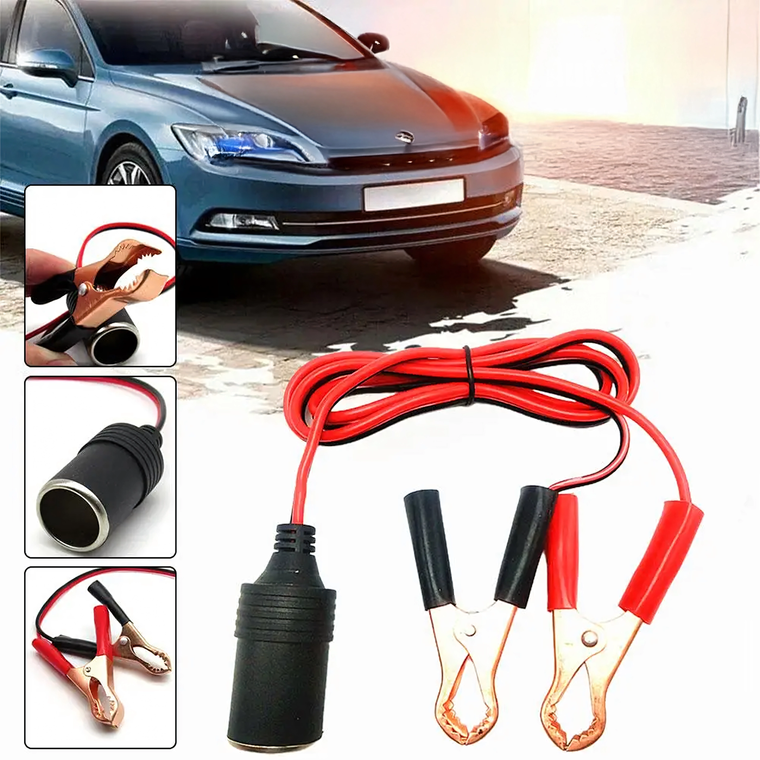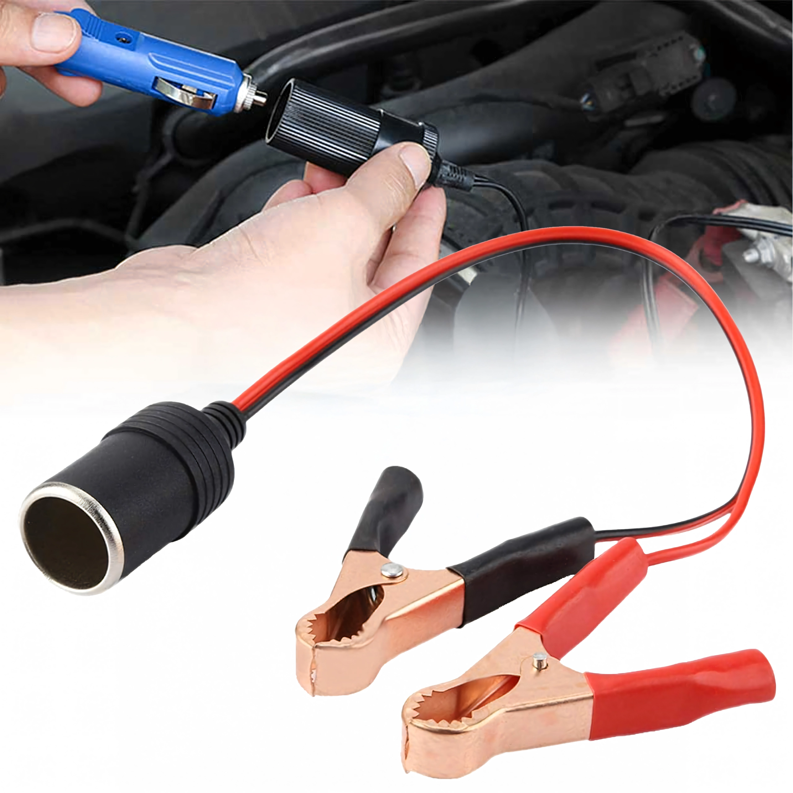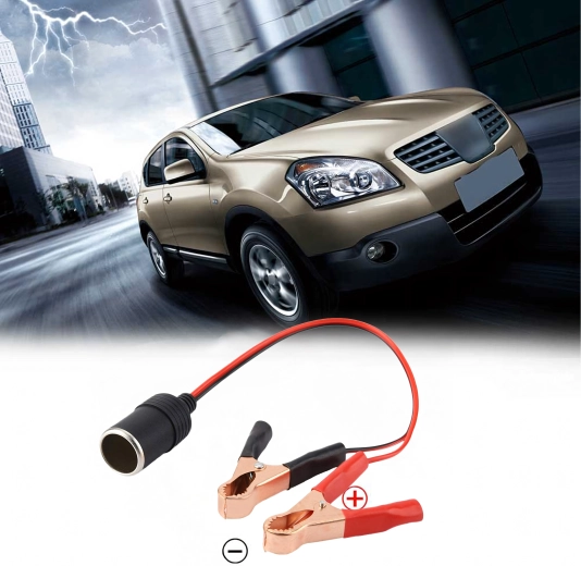 De adapter voor de sigarettenaansteker met krokodillenklemmen overbrugt de stroomvoorziening direct vanuit het 12/24V-voertuigsysteem. Dankzij de stevige klemmen zorgt hij voor snelle aansluiting op de accu of op apparaten met blote polen en voor een betrouwbare energietransmissie zonder ingewikkelde installatie.