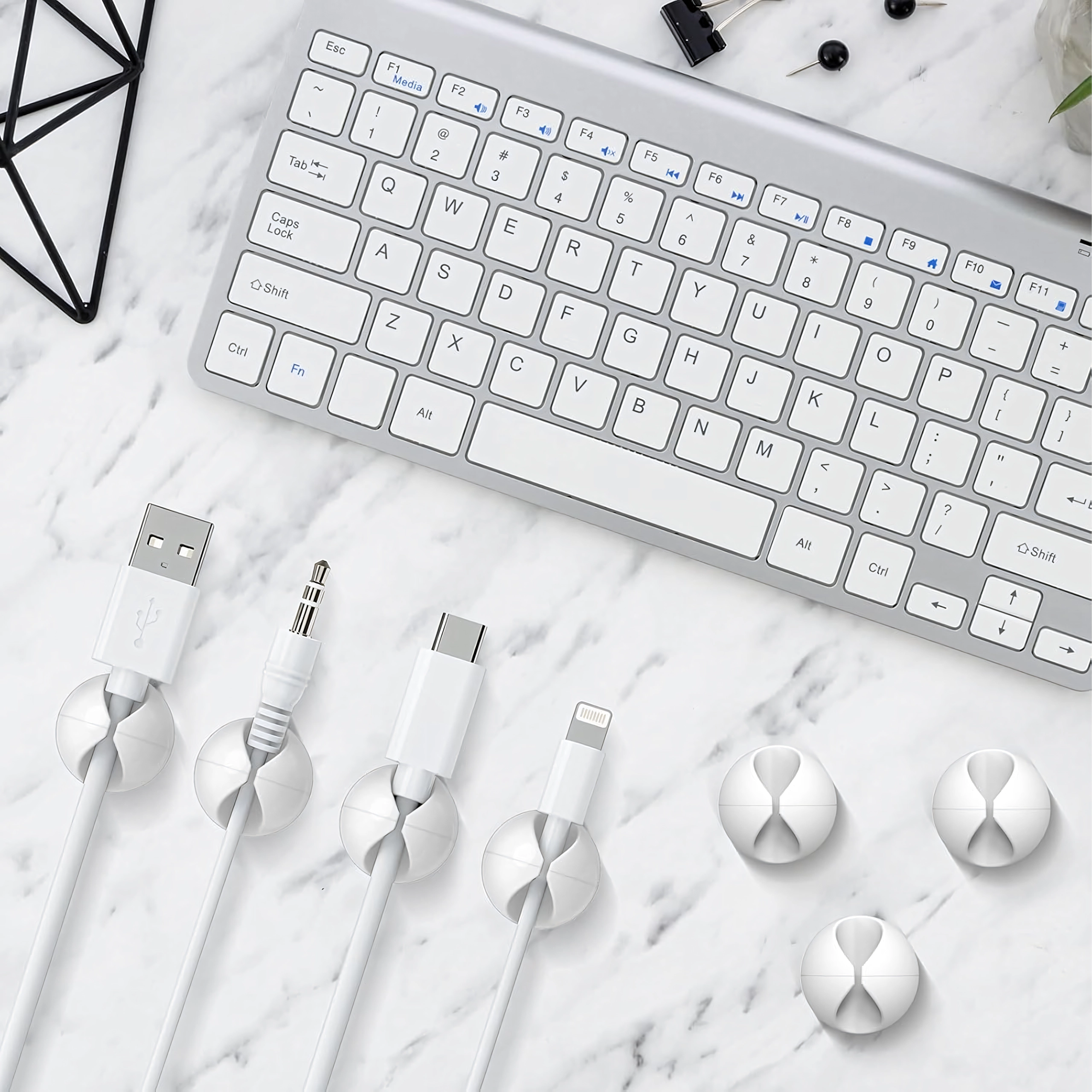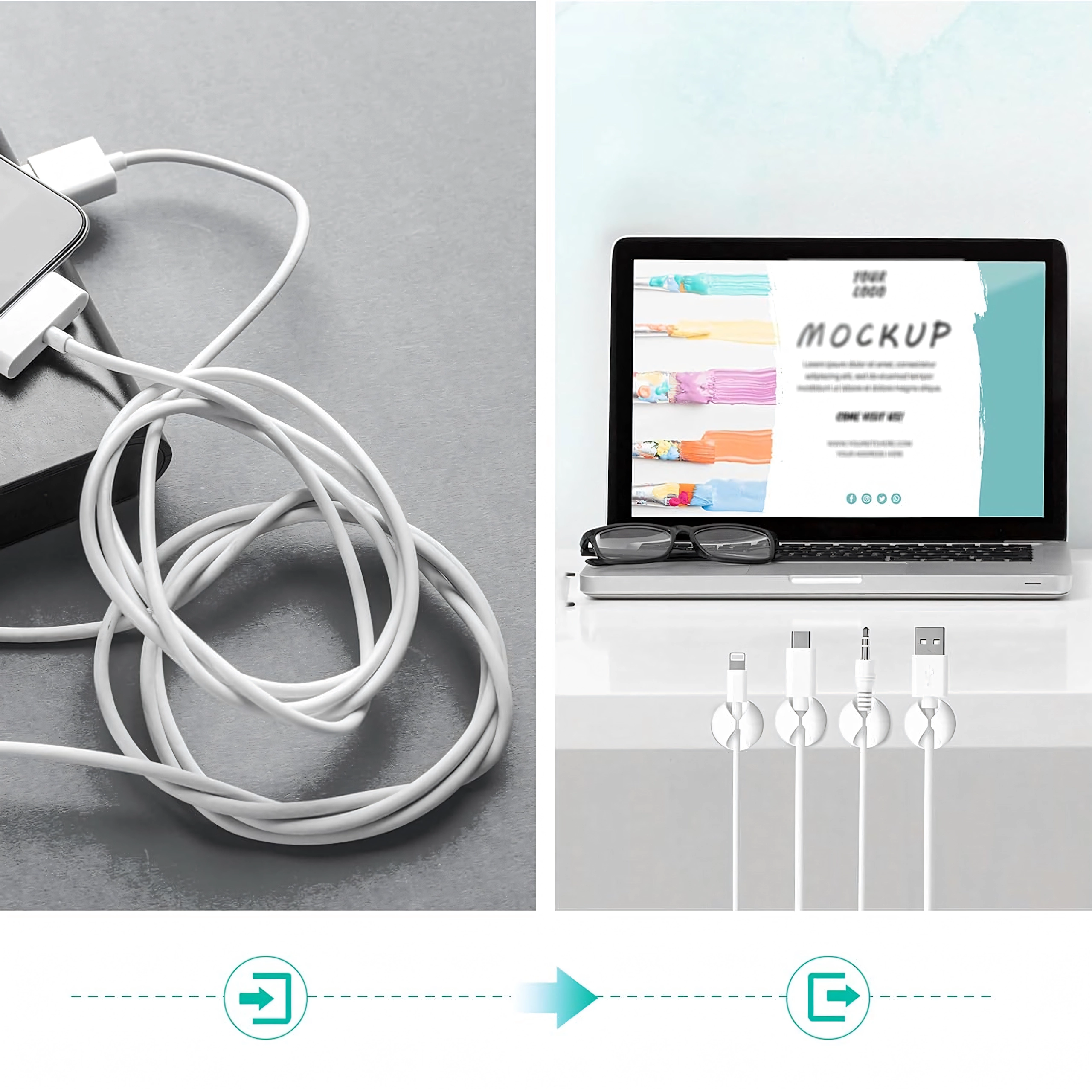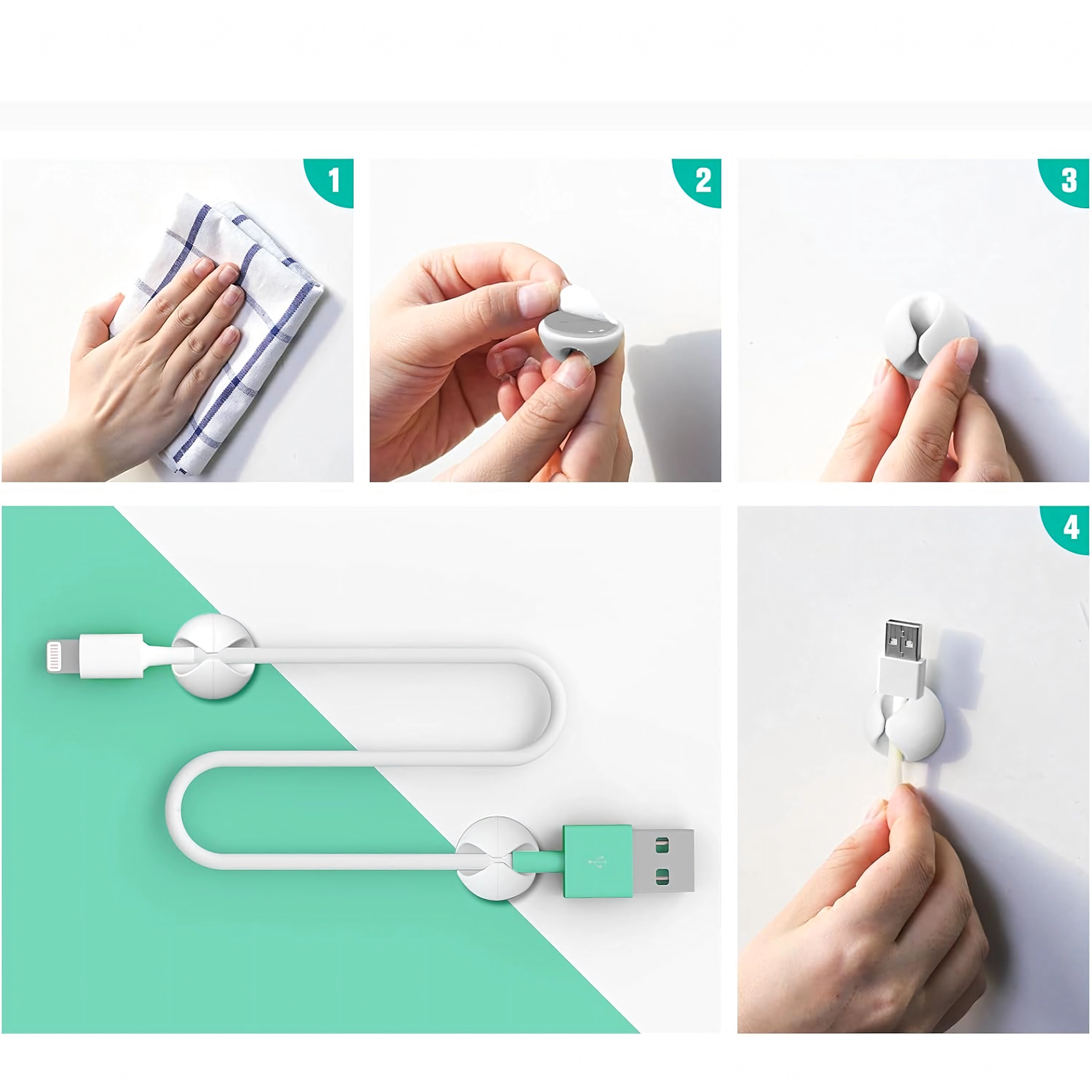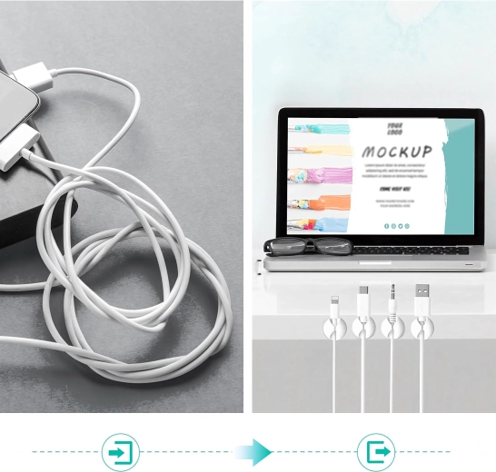 Gebruik ze voor laad- en datakabels, oordopjes, maar ook voor kleine voorwerpen zoals pennen of decoraties. Eenvoudige installatie zonder gereedschap bespaart tijd en zorgt voor een schone en overzichtelijke ruimte.