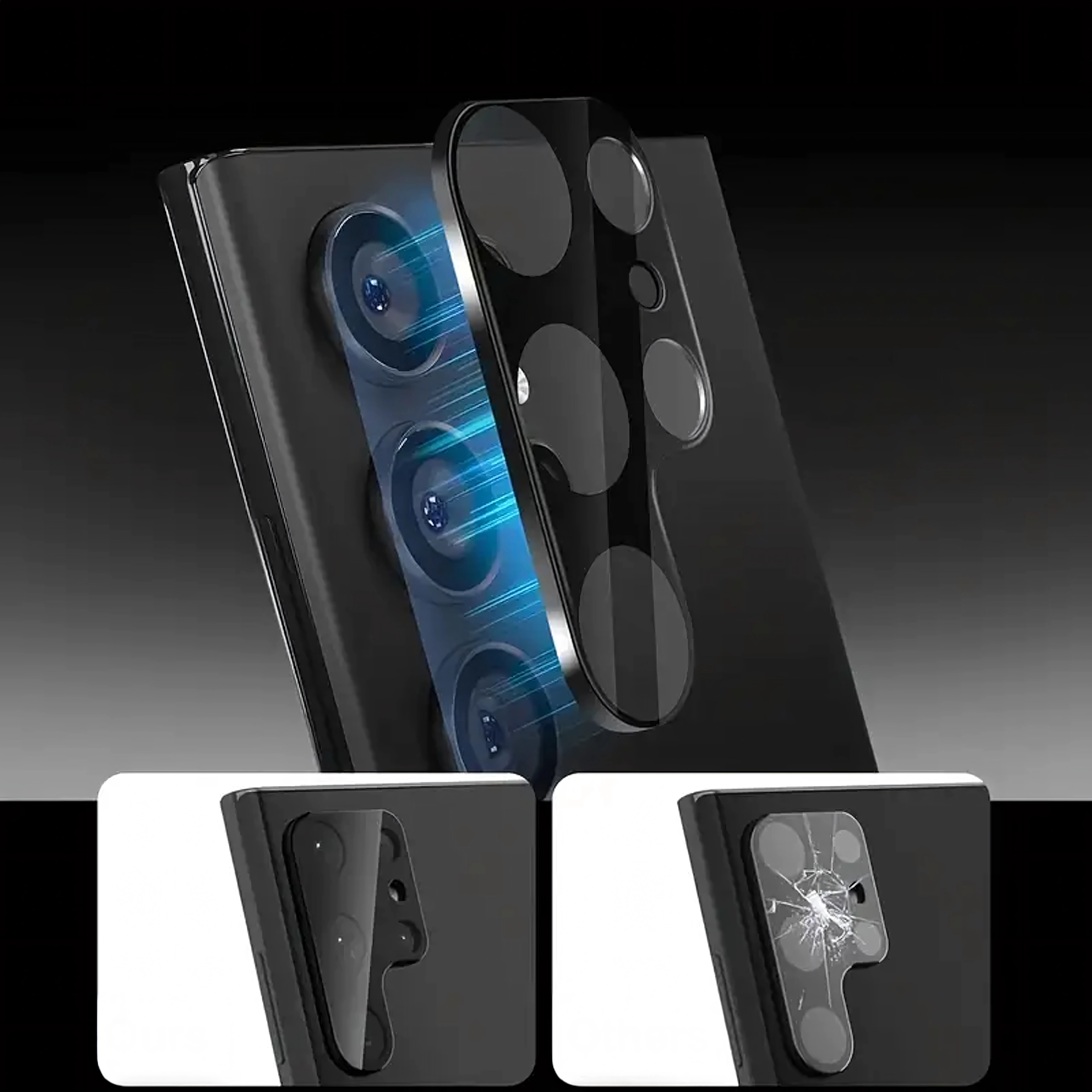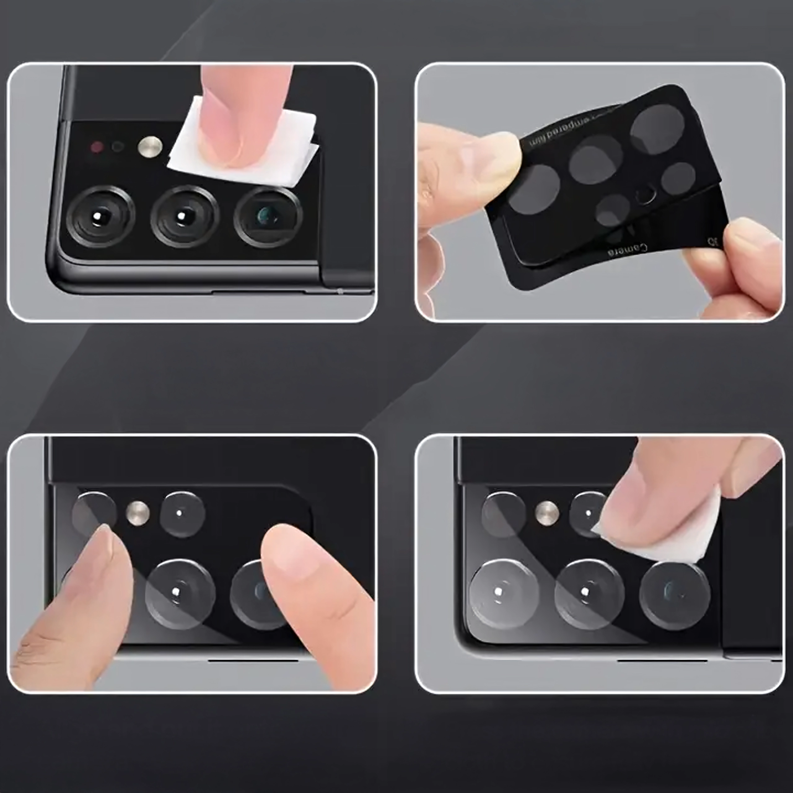 Gun de camera van je SAMSUNG Galaxy S24 Ultra eersteklas bescherming. Het geharde glas met 9H hardheid bedekt het volledige lenseiland, hecht perfect aan het oppervlak en verstoort noch het design noch de functionaliteit. De kristalheldere transparantie zorgt voor een vlekkeloze kwaliteit van foto’s en opnames zonder vervorming.