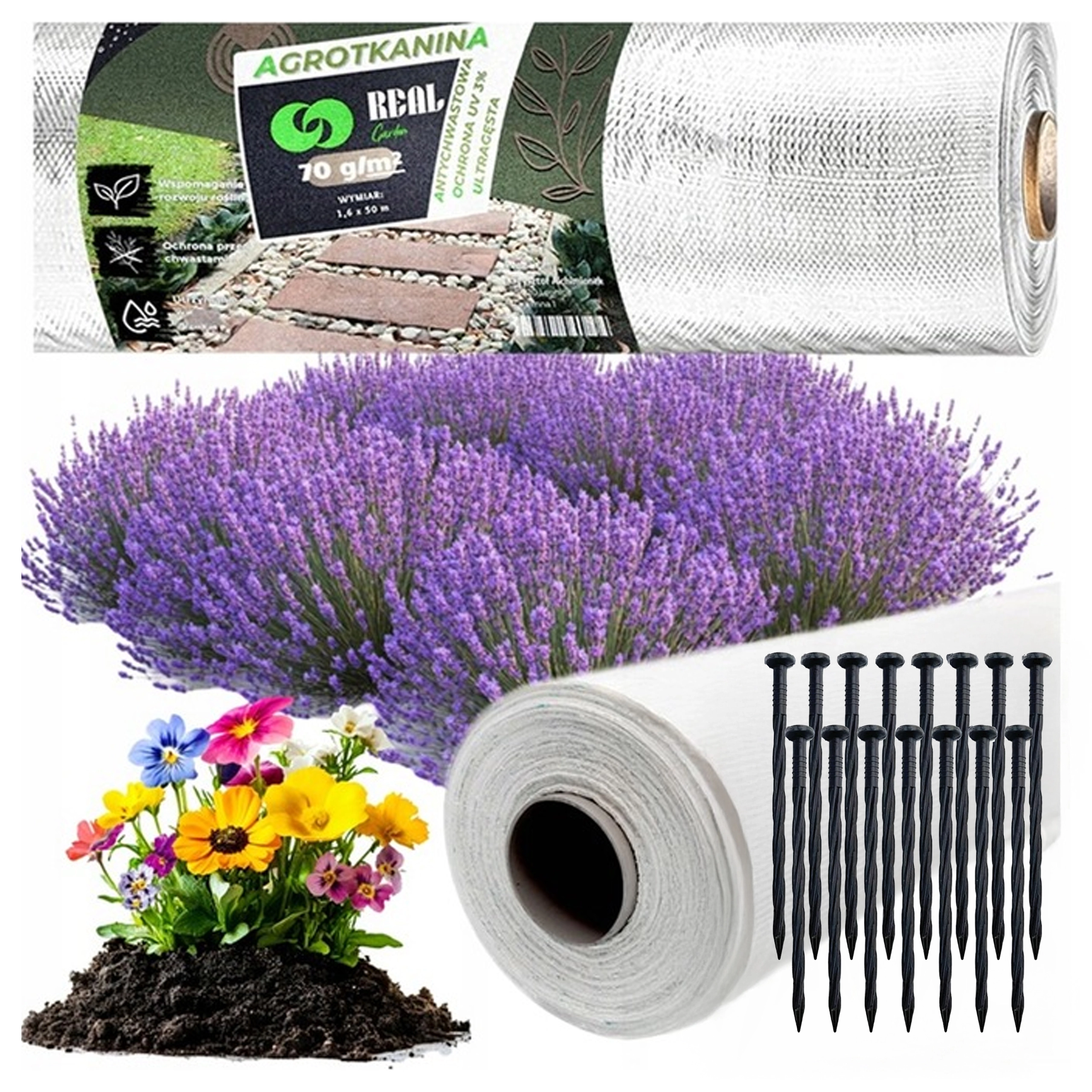 Universeel wit agrotextiel met een gewicht van 70 g/m² en afmeting 1,6 × 100 m onderdrukt onkruid betrouwbaar en beschermt beplanting. Dankzij de UV-stabilisatie is het bestand tegen zonlicht, laat het lucht en water door en maakt het mogelijk om schors of siersteen bovenop aan te brengen zonder intensief wieden. De verpakking bevat ankers voor eenvoudige bevestiging.