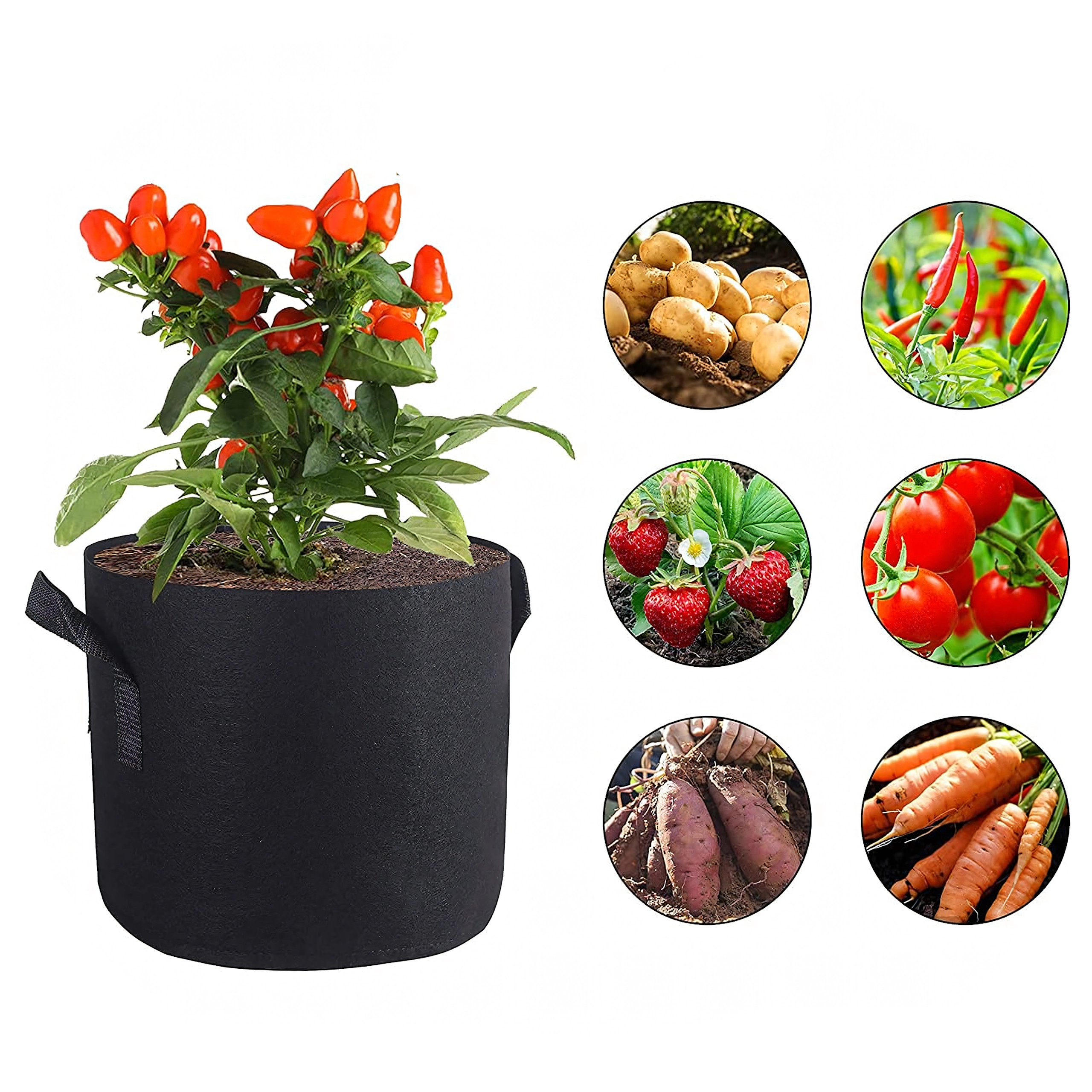 Dankzij de twee stevige handgrepen kun je de zak eenvoudig hanteren en planten verplaatsen naargelang het weer of de lichtomstandigheden. De zak is geschikt voor het kweken van aardappelen, groenten, kruiden en sierplanten op het terras, balkon, patio of in kleine tuinen. Het herbruikbare materiaal garandeert een lange levensduur en comfort.