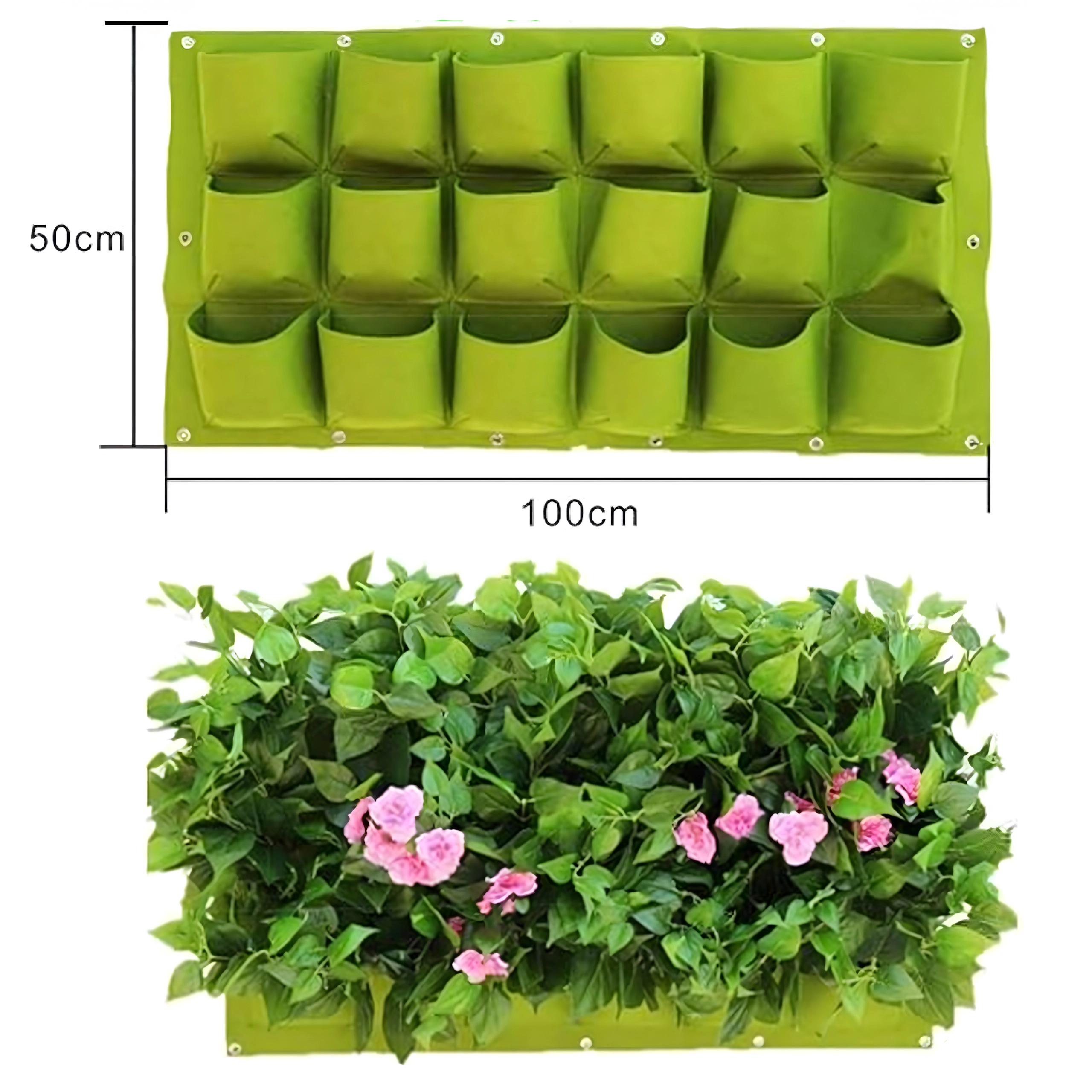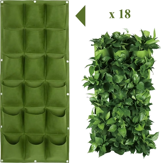Creëer overal je eigen verticale tuinhoek – thuis, op het balkon of in de tuin. Deze hangende plantenhouder met afmetingen 100 × 50 cm heeft 18 ruime vakken waarin je gemakkelijk kruiden, slasoorten en favoriete bloemen plant. De trapsgewijze/cascade-constructie bespaart ruimte en zorgt tegelijk voor betere licht- en watertoegang voor elke plant.