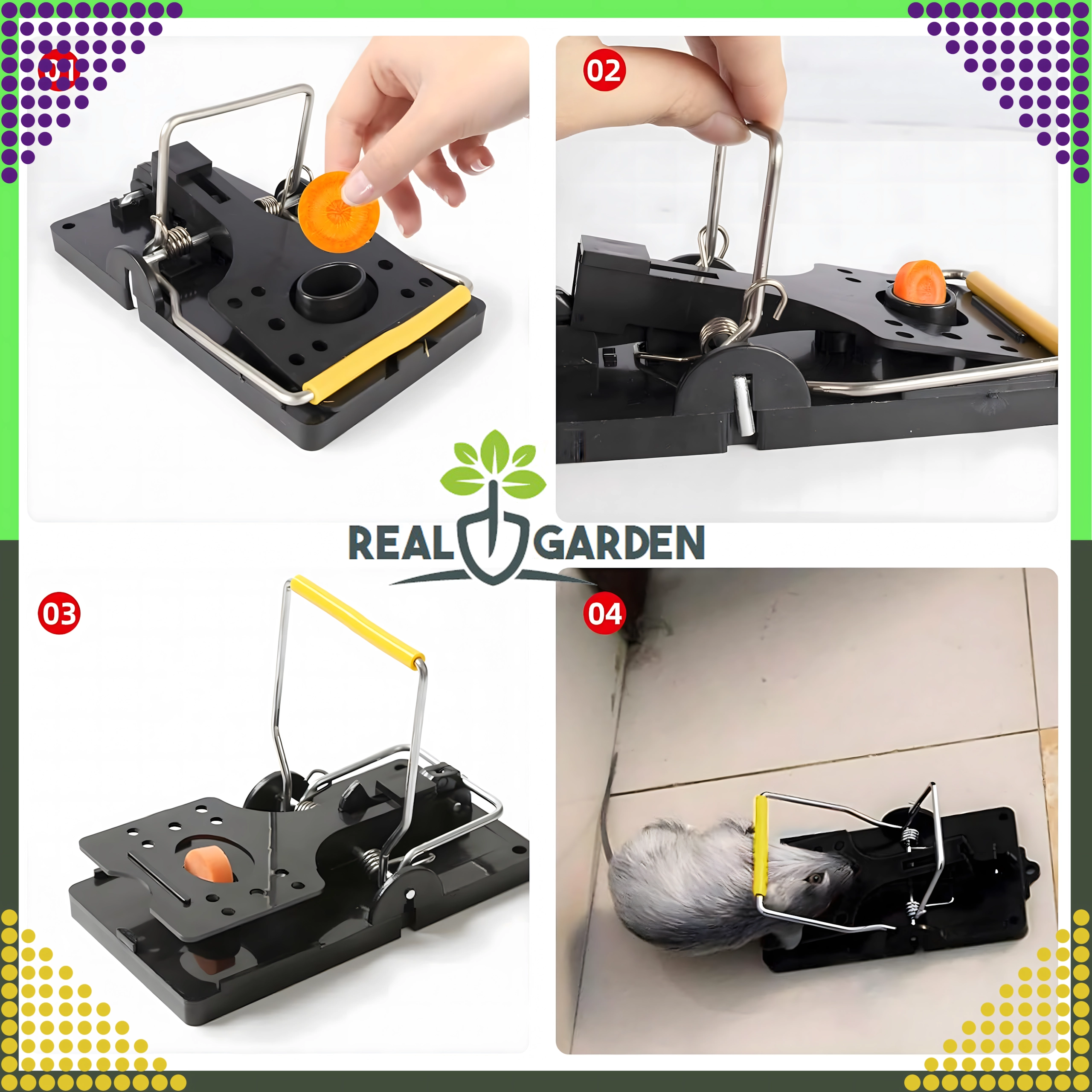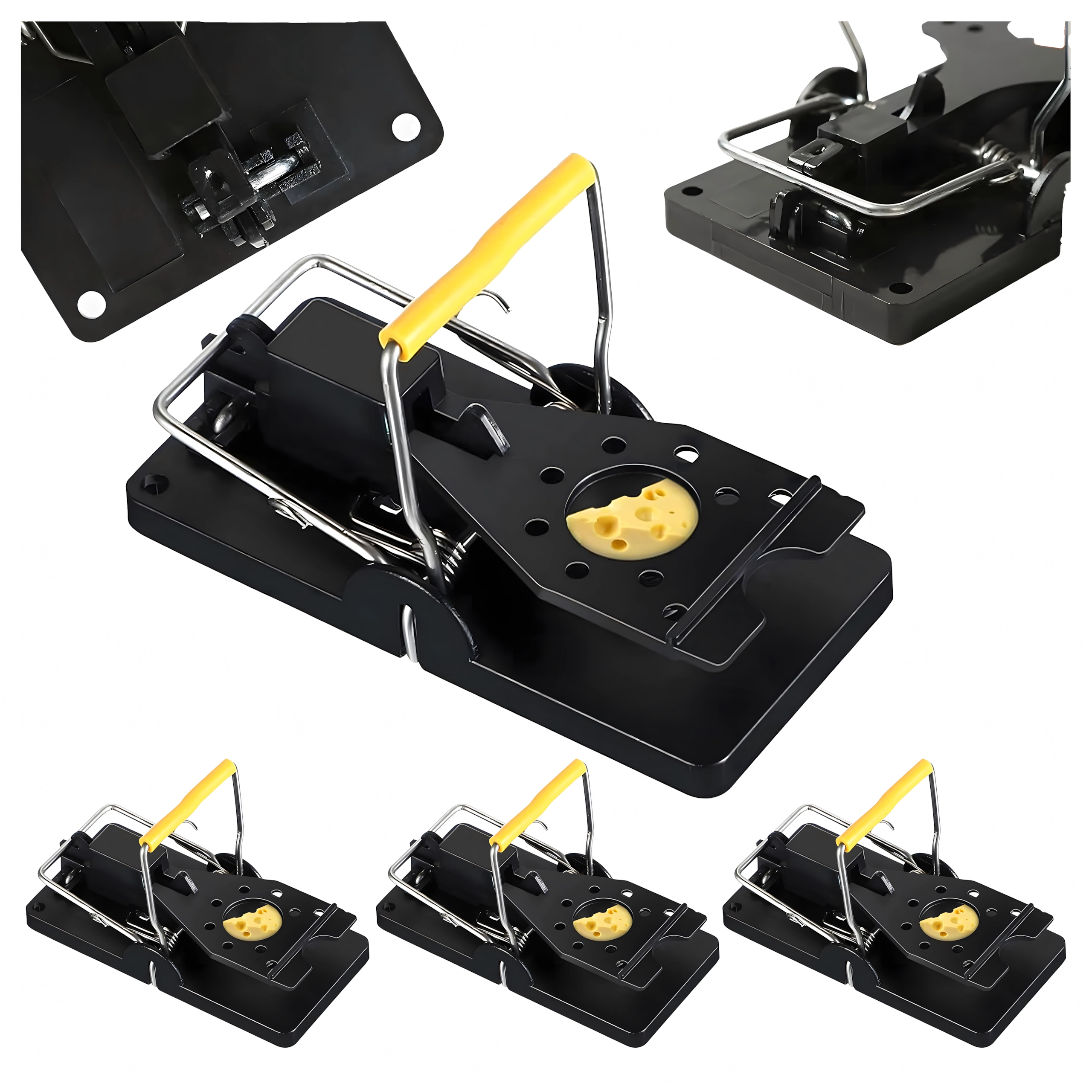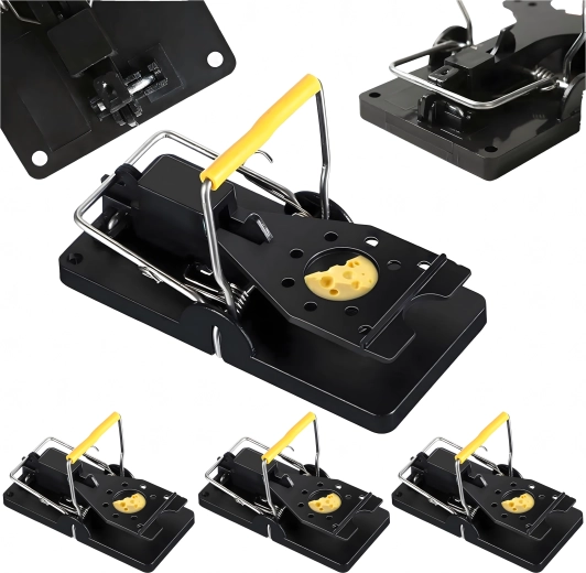Praktische set van 4 kunststof muizen- en rattenvallen voor snelle, hygiënische en effectieve bestrijding van knaagdieren in huis. De val heeft compacte afmetingen, is eenvoudig in te stellen met de hendel en dankzij de lokaashouder is het gebruik veilig en comfortabel. Geschikt voor keukens, voorraadkamers, garages, kelders en andere plekken waar snel ingrijpen nodig is.