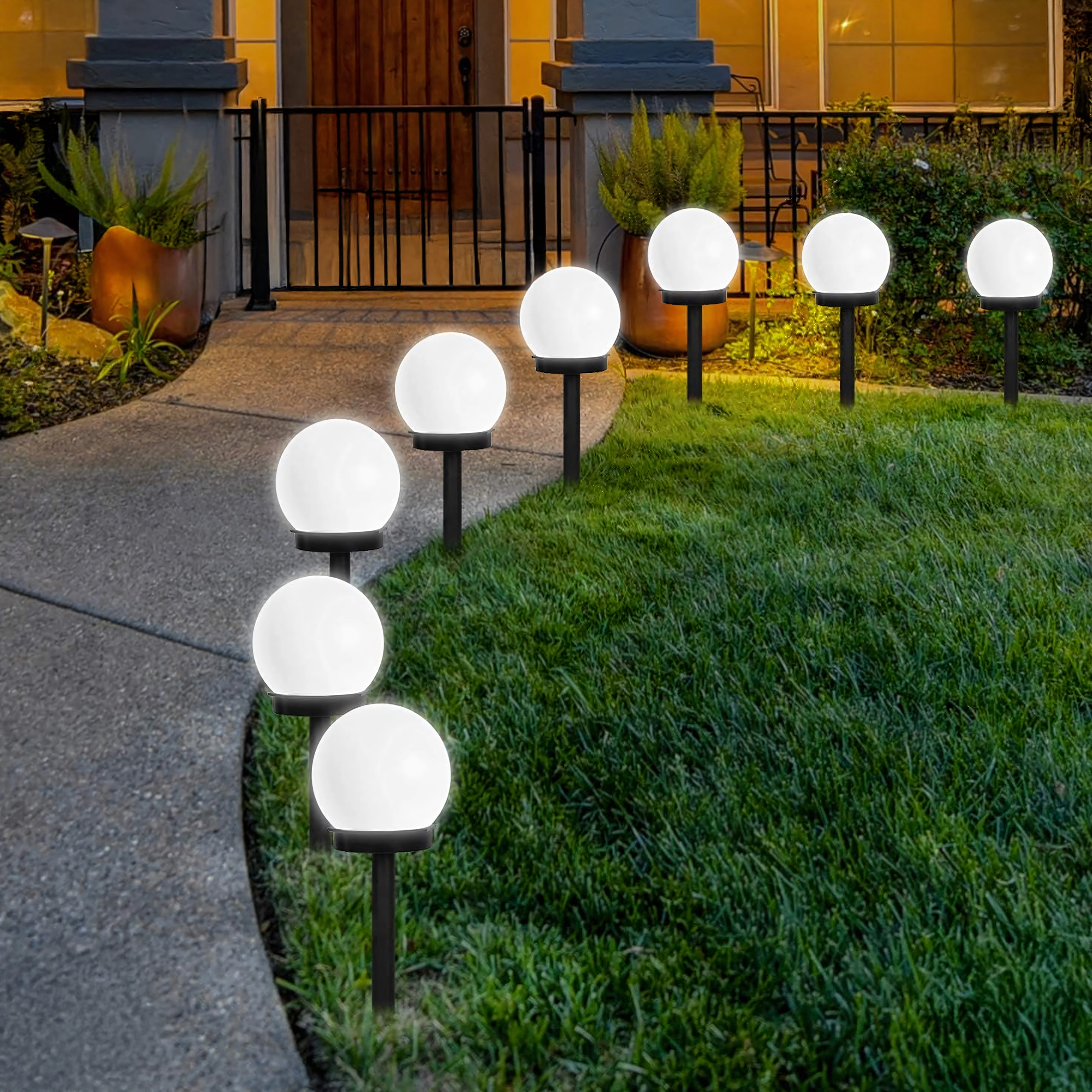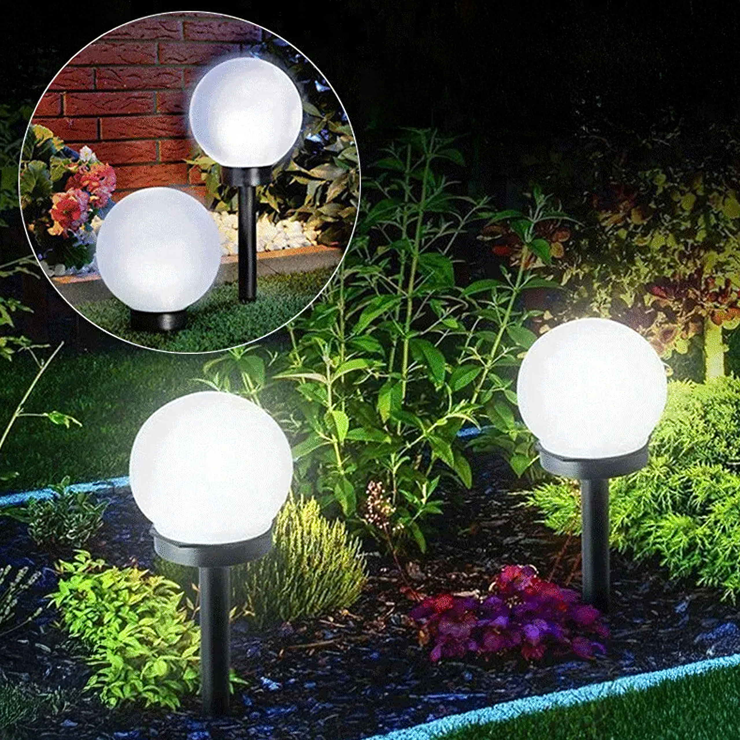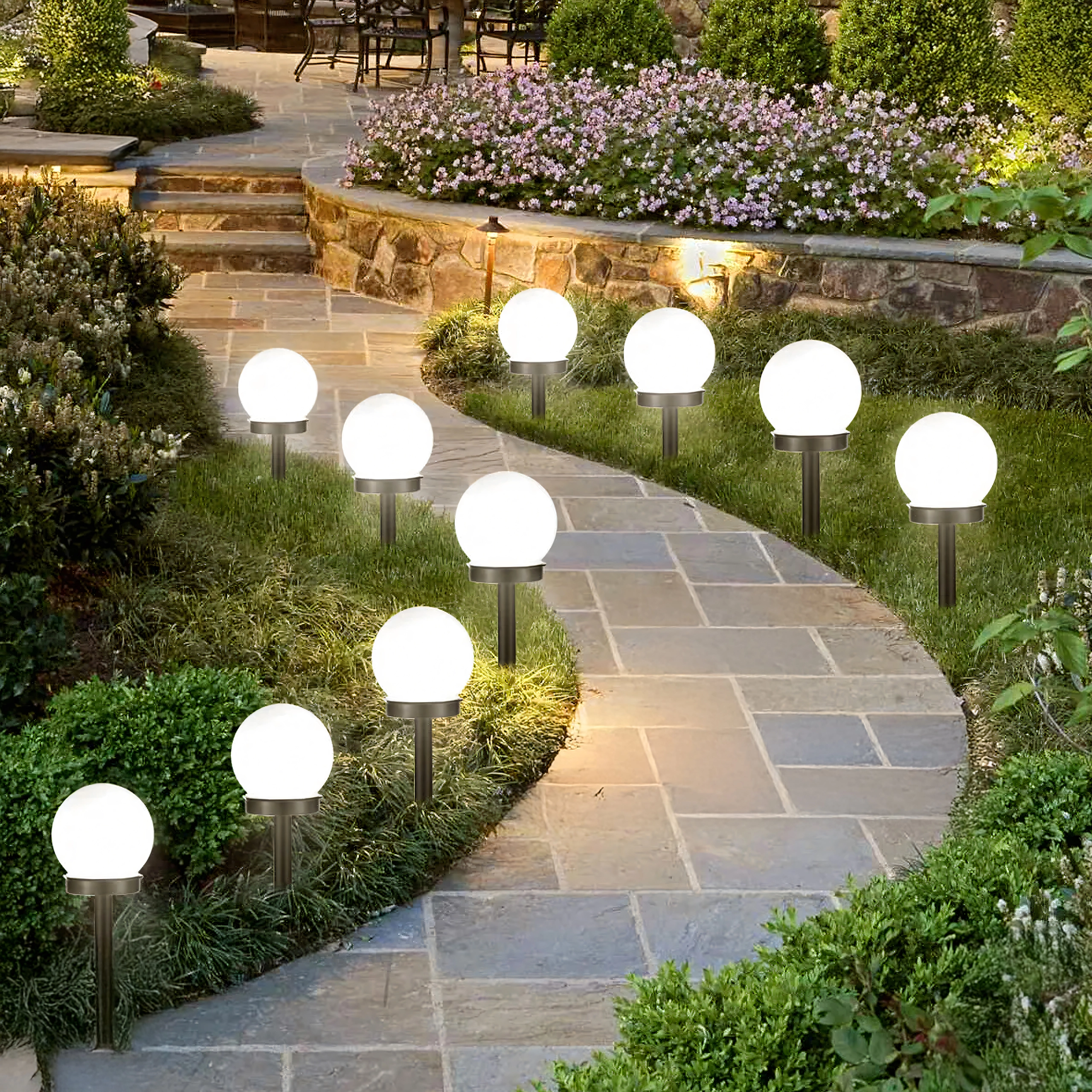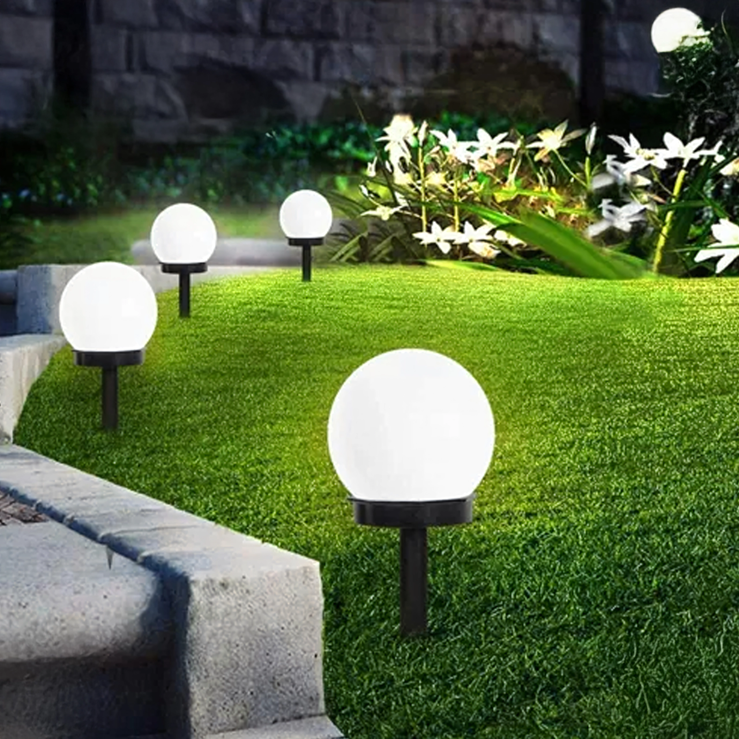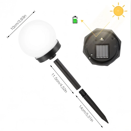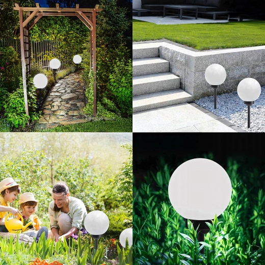 De installatie is in een oogwenk gedaan: steek ze eenvoudig in de grond of in bloempotten en zet de ON/OFF-schakelaar om. De bolvormige diffuser zorgt voor een gelijkmatige 360° verlichting van paden, borders en zitplekken.