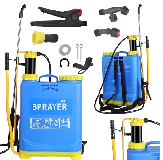 Krachtige rugspuit met een inhoud van 16 liter voor comfortabel en efficiënt onderhoud van tuin, boomgaard of akker. Dankzij de handmatige drukpomp en ergonomische draagriemen is hij gemakkelijk te bedienen, biedt een egale verneveling en is ideaal voor bemesting, gewasbescherming en desinfectie. In de verpakking zitten verschillende sproeikoppen en een trechter voor eenvoudig vullen.