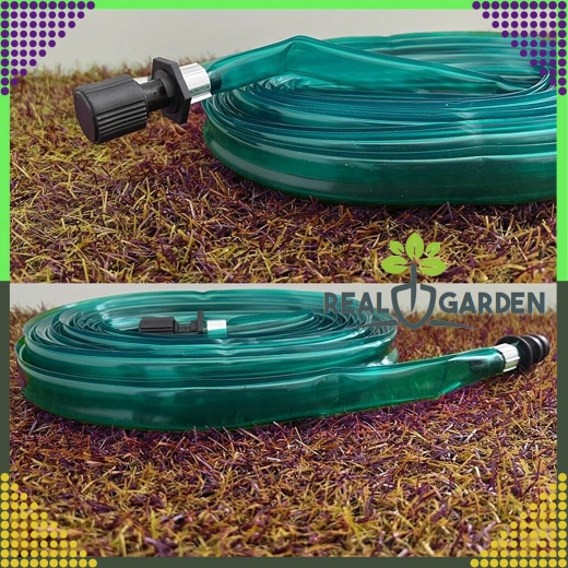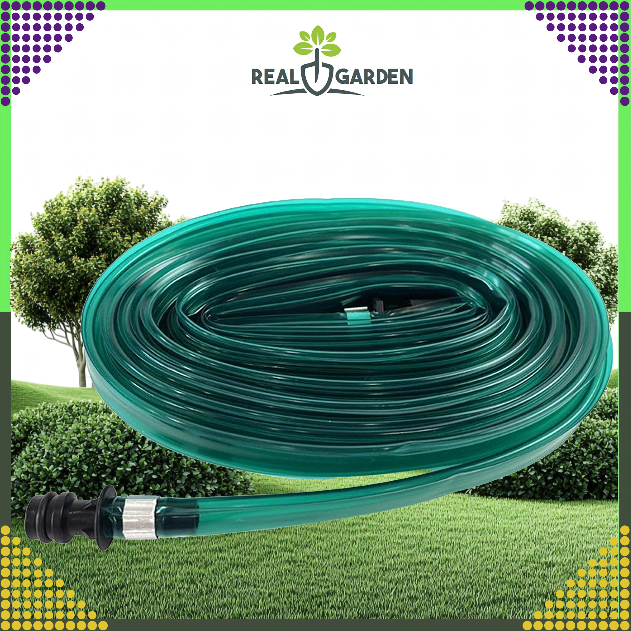 De slang is flexibel, eenvoudig langs planten of onder mulch te leggen en wordt via snelkoppelingen aangesloten op gangbare tuinssystemen. Ideaal voor tuinen, kassen en bedden waar gelijkmatige druppelirrigatie nodig is.