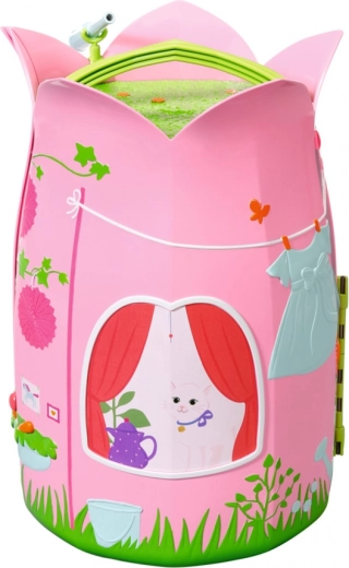 Dankzij het praktische handvat is het huisje eenvoudig mee te nemen en biedt het schaduw voor het feeënhuisje.