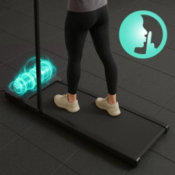 Het lage profiel en de mogelijkheid om de loopband onder het bed of de bank op te bergen, besparen ruimte. De geïntegreerde houder aan de handgreep biedt plaats aan een telefoon of tablet.