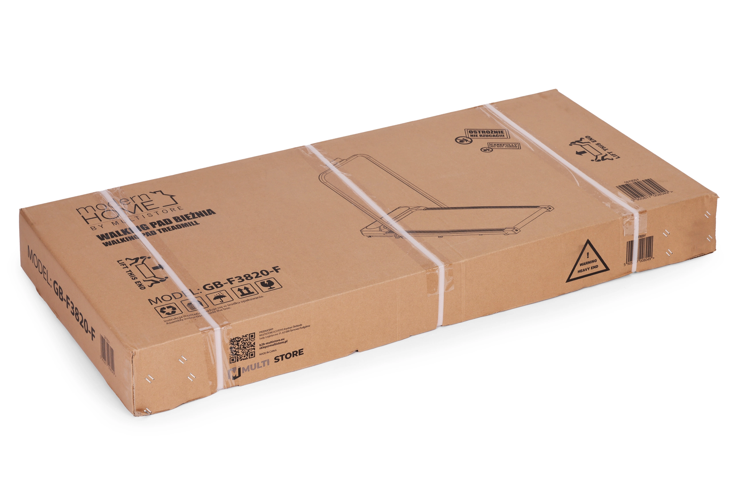 De duurzame doos met verstevigde banden beschermt de loopband tijdens transport en opslag.
