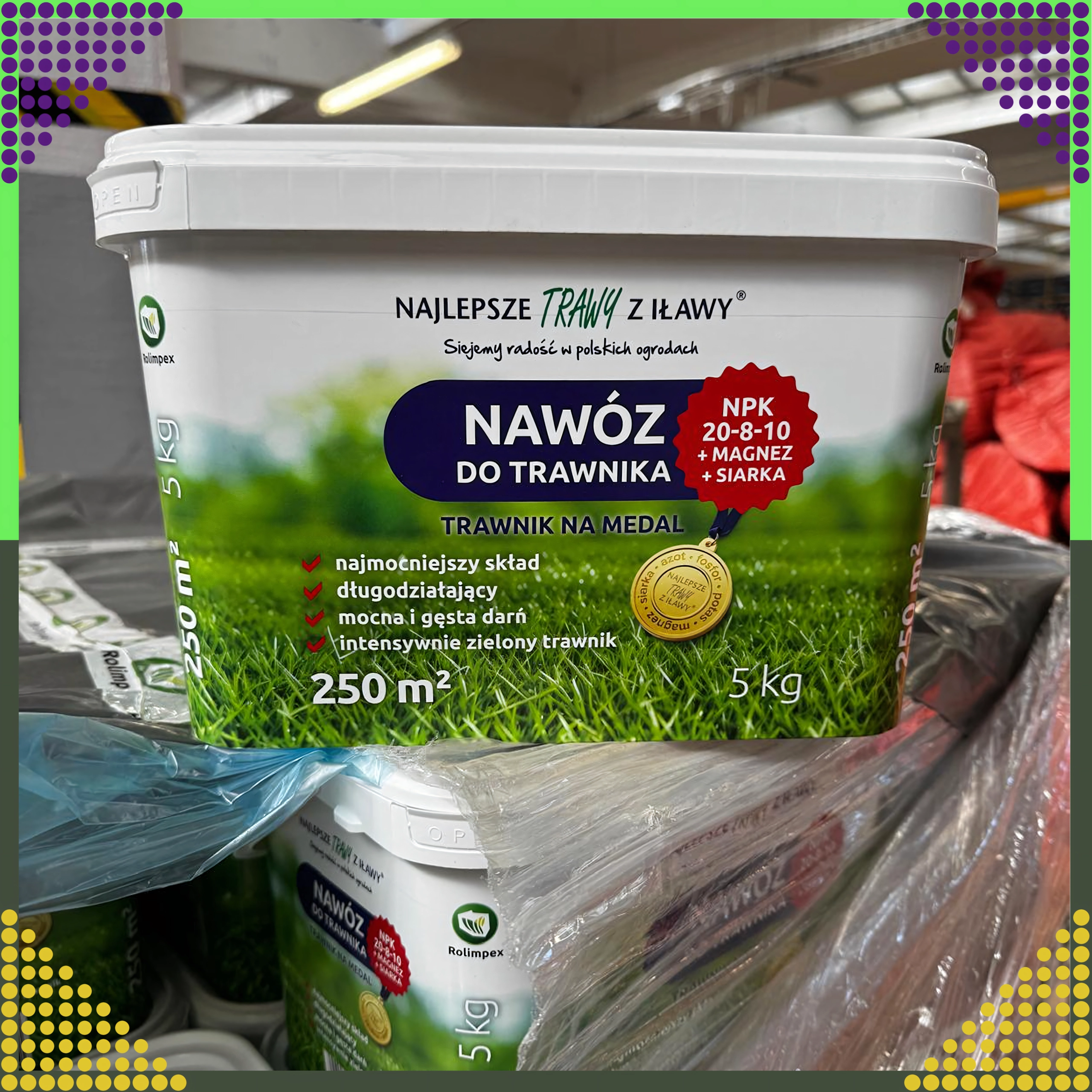 - Aanbevolen dosering afhankelijk van de staat van het gazon; een verpakking van 5 kg bedekt tot circa 250 m²