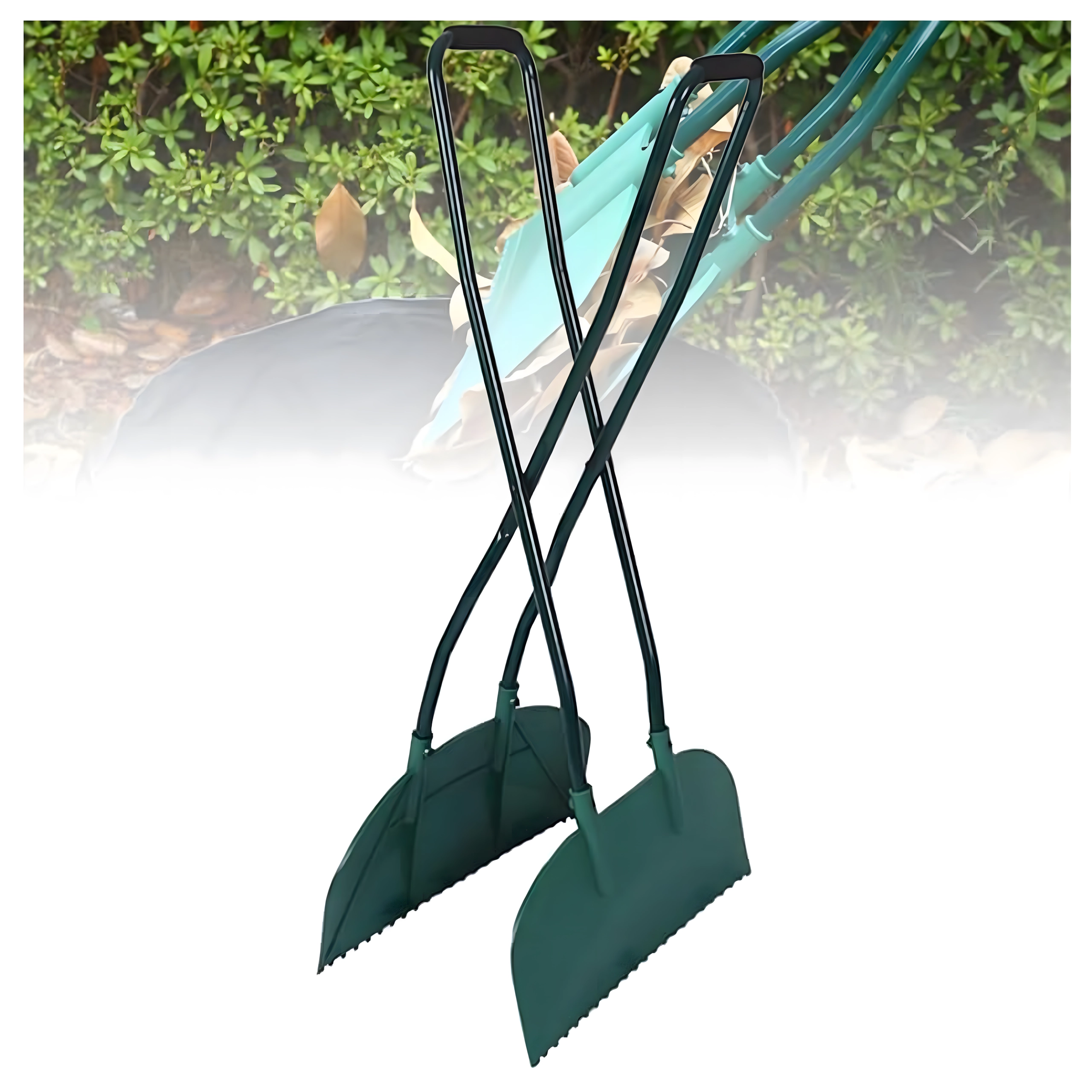 Gekartelde randen en brede scheppen pakken moeiteloos droge en licht vochtige bladeren, gras of naalden op en versnellen het hele opruimwerk.