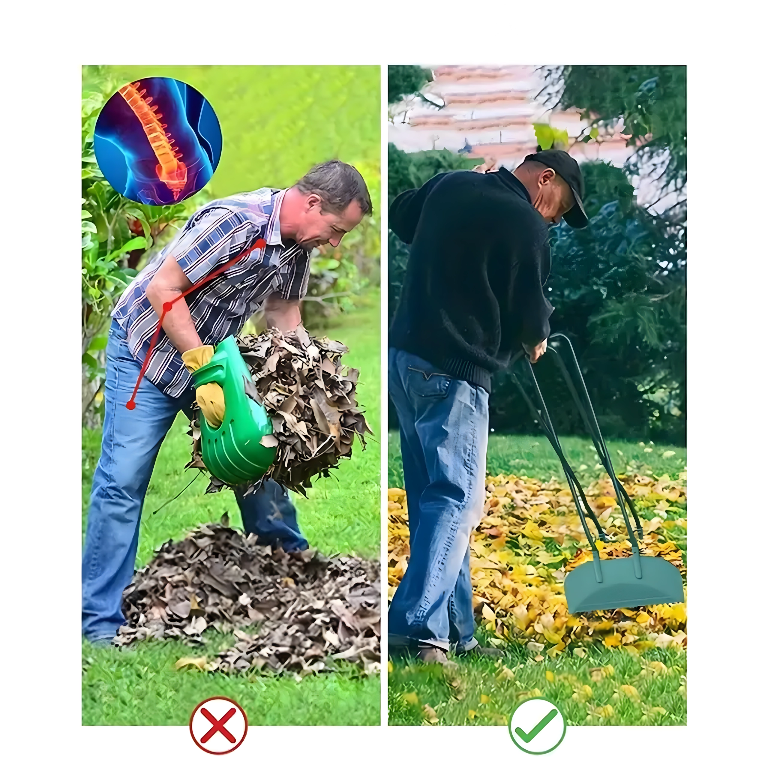 Lange handgrepen maken het mogelijk bladeren en vuil comfortabel te verzamelen zonder te hoeven bukken. Ideaal voor langer werk op het gazon en de oprit.