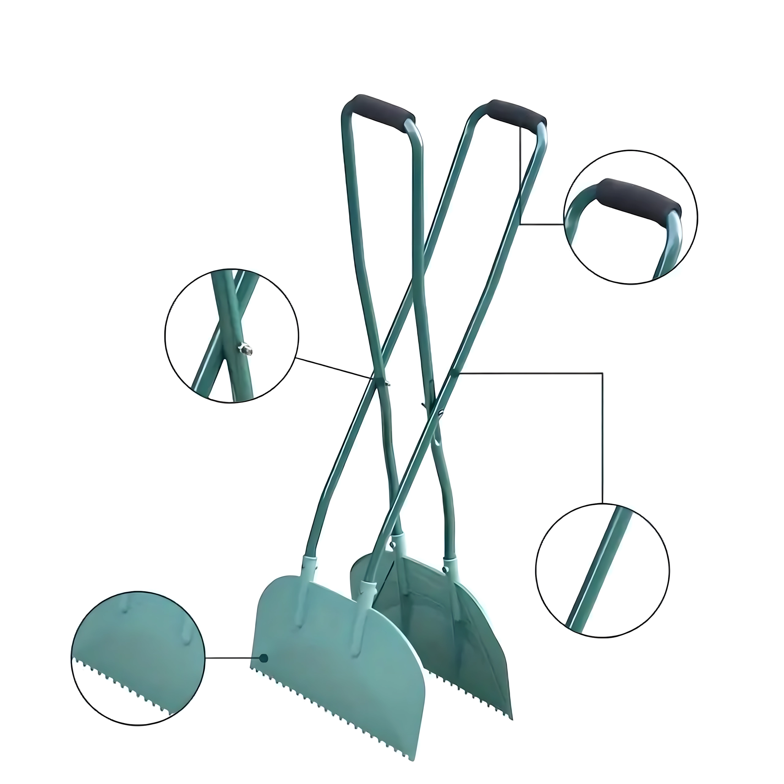 Dankzij de brede kaken en stevige metalen stelen maak je erf en gazon sneller schoon. Zachte foamhandgrepen bieden een zekere en comfortabele greep, ook bij langer werken. Ideale hulp voor seizoensopruiming, composteren en tussentijds opruimen na het maaien.