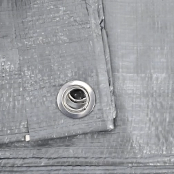 Het zilveren beschermzeil 4 × 5 m met een gewicht van 80 g/m² is een uitstekende keuze voor het hele jaar door beschermen van materialen en uitrusting. Het schermt af tegen regen, sneeuw, UV-straling en vuil en dankzij de ogen rondom kun je het veilig vastzetten aan frames, haringen of touw.