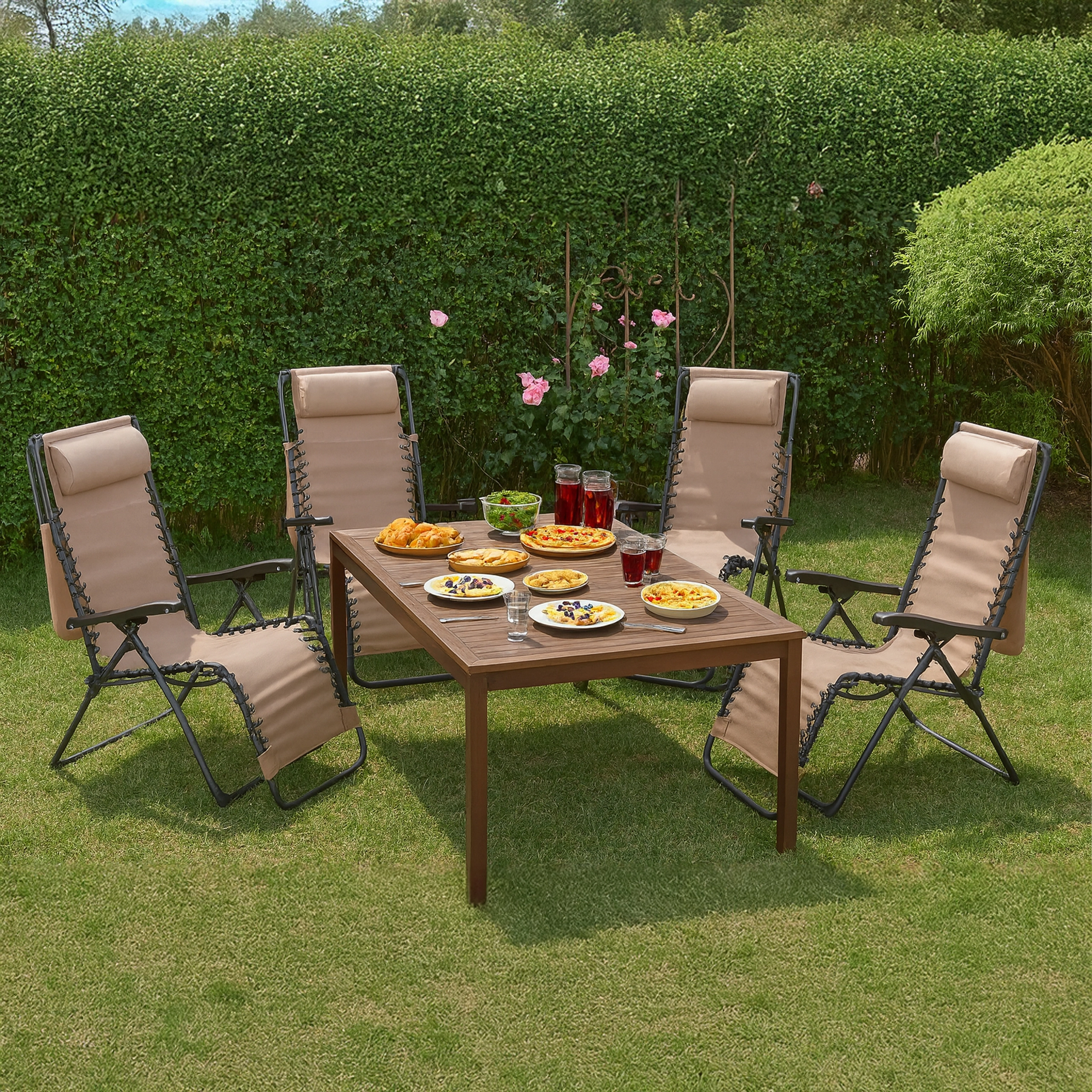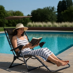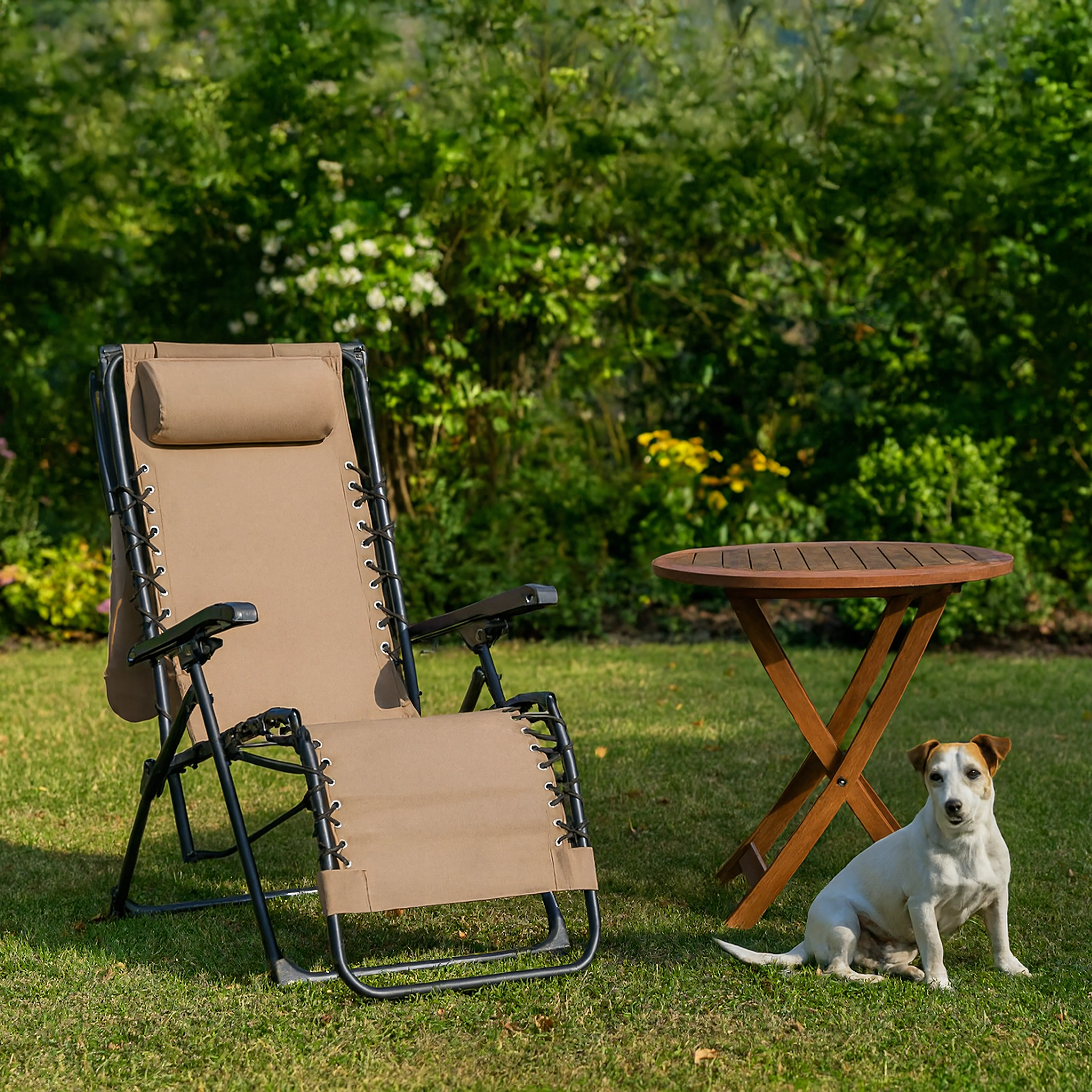 Geniet van zorgeloze ontspanning met de zero gravity ligstoel, die het lichaamsgewicht gelijkmatig verdeelt en rug en gewrichten ontlast. Duurzame textilene is aangenaam ademend, droogt snel en is gemakkelijk te onderhouden, terwijl het robuuste stalen frame stabiel staat op gras, terras en bij het zwembad.