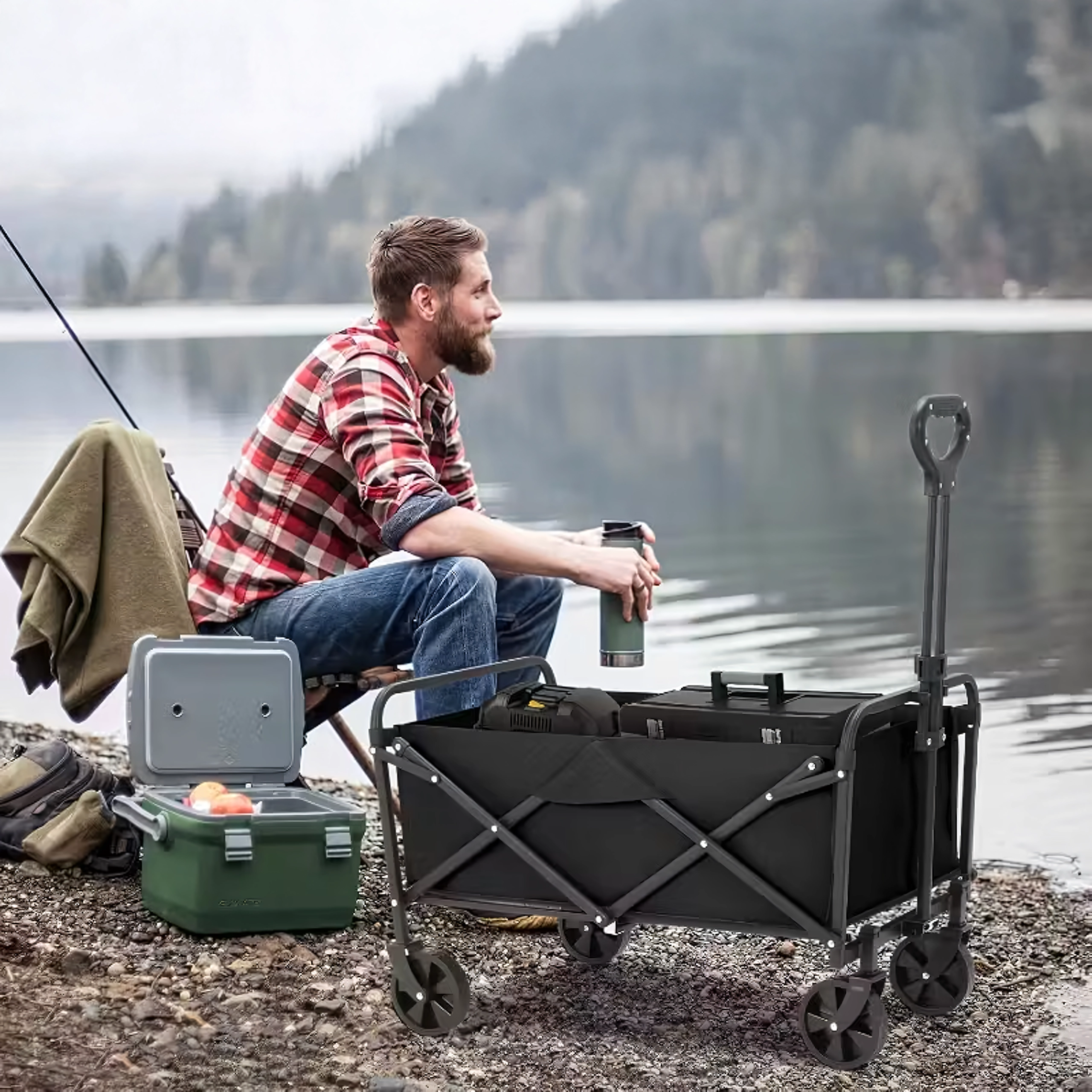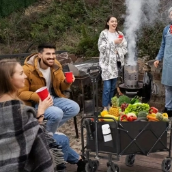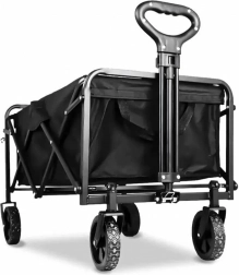 De universele opvouwbare wagen maakt dagelijkse en vrijetijdsactiviteiten makkelijker. Dankzij het duurzame stalen frame en de stevige textielstof kan hij zwaardere ladingen vervoeren over verschillende ondergronden – van tuin via park tot strand. Grote zwenkwielen zorgen voor soepele beweging en eenvoudig manoeuvreren, ook in terrein.